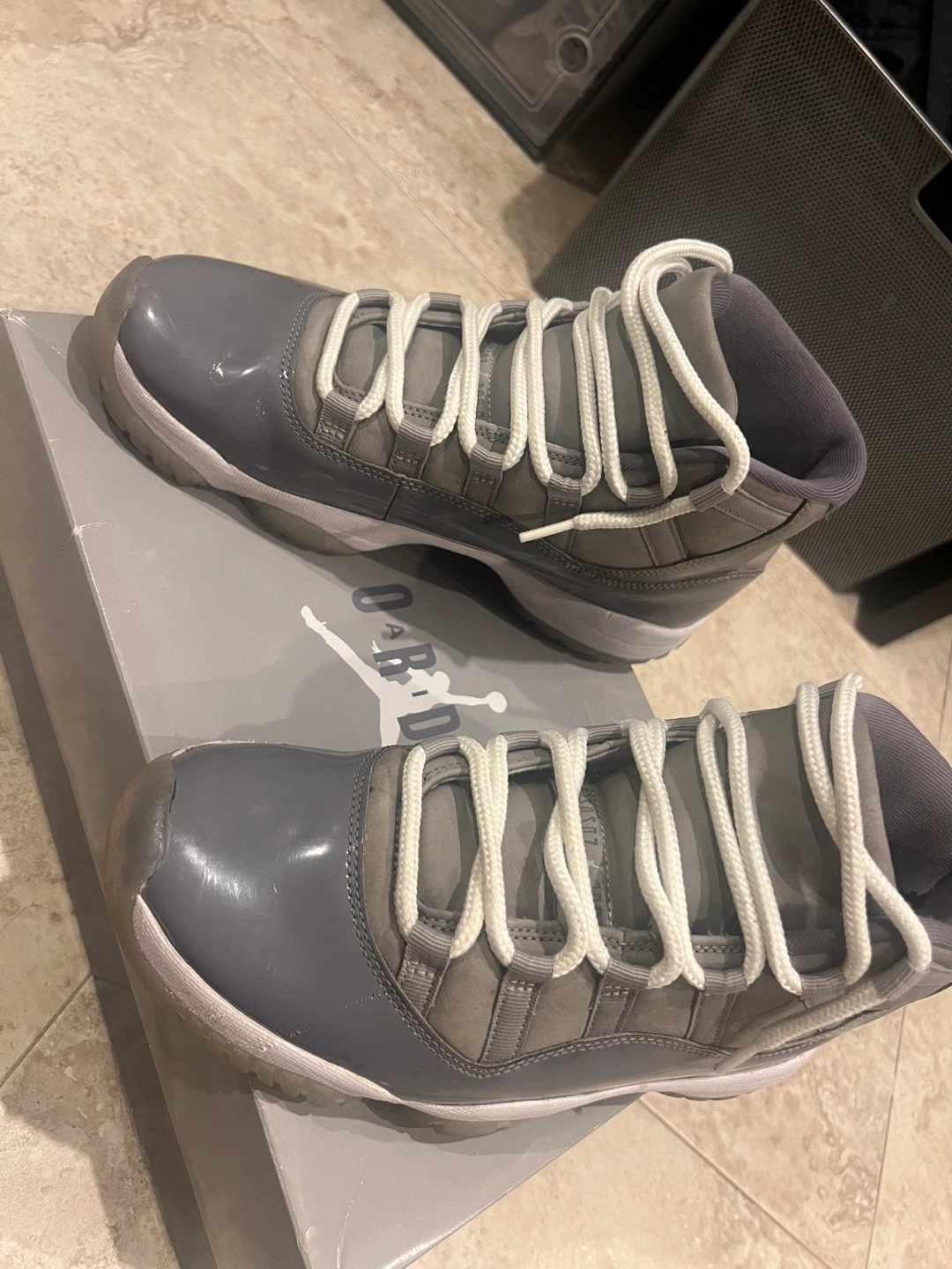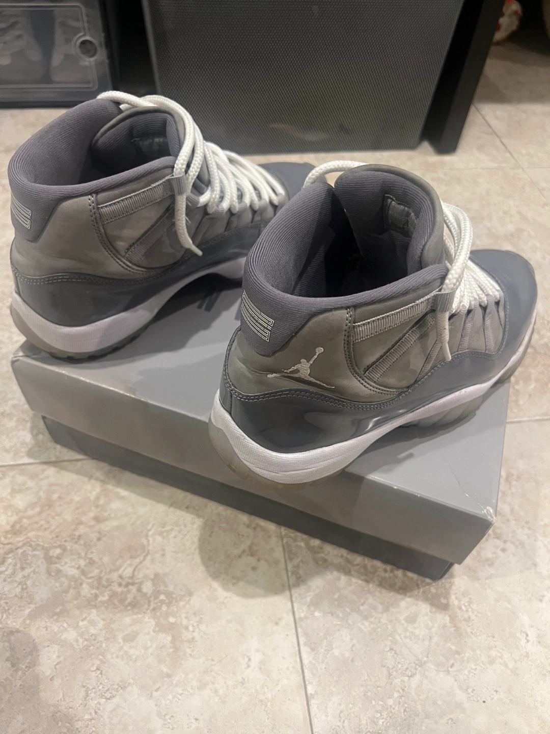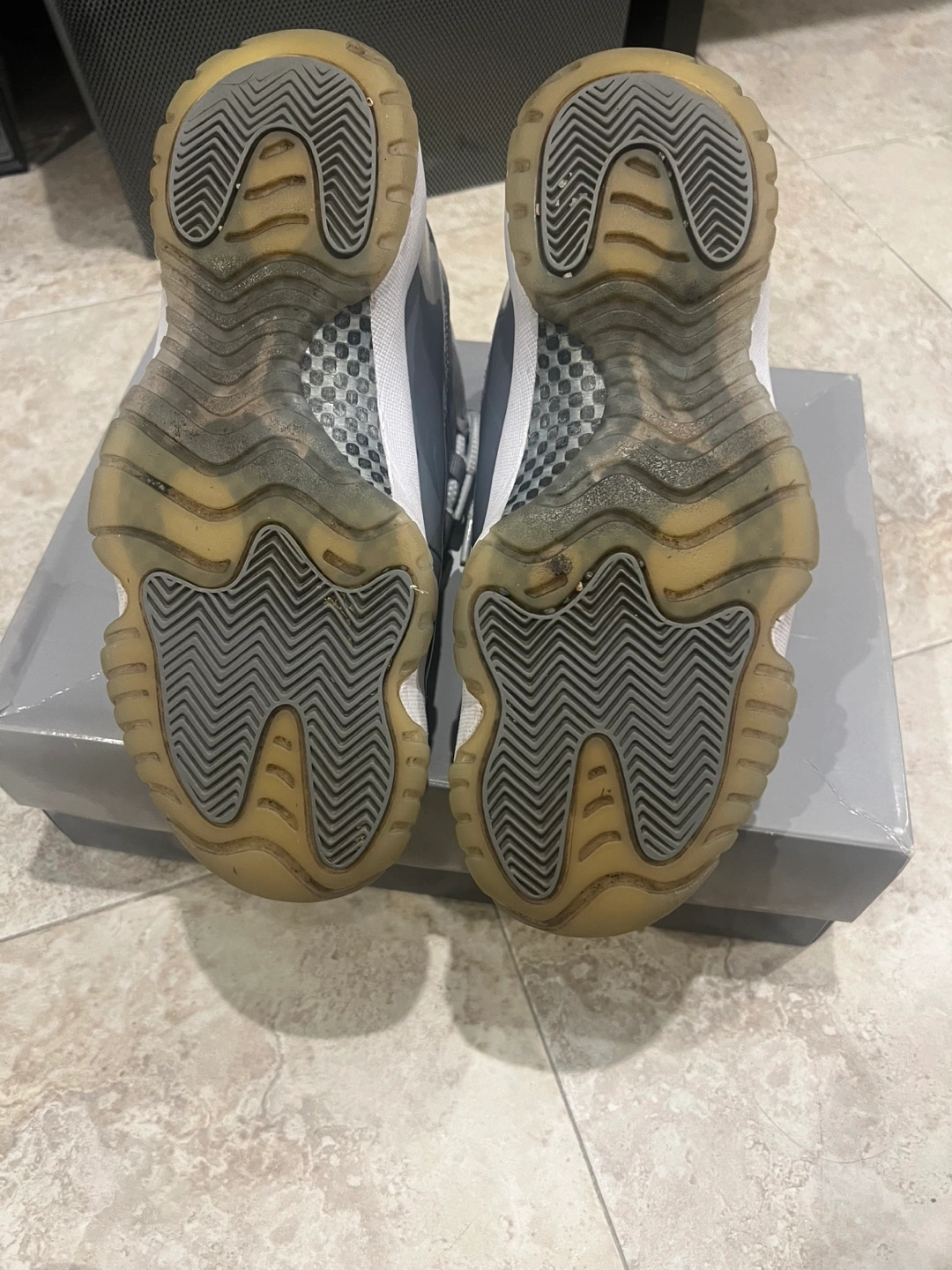 Selling a pair of Jordan 11 Retro in the Cool Grey colorway. They show signs of wear, especially on the soles and inside the heel area. The original box is included.