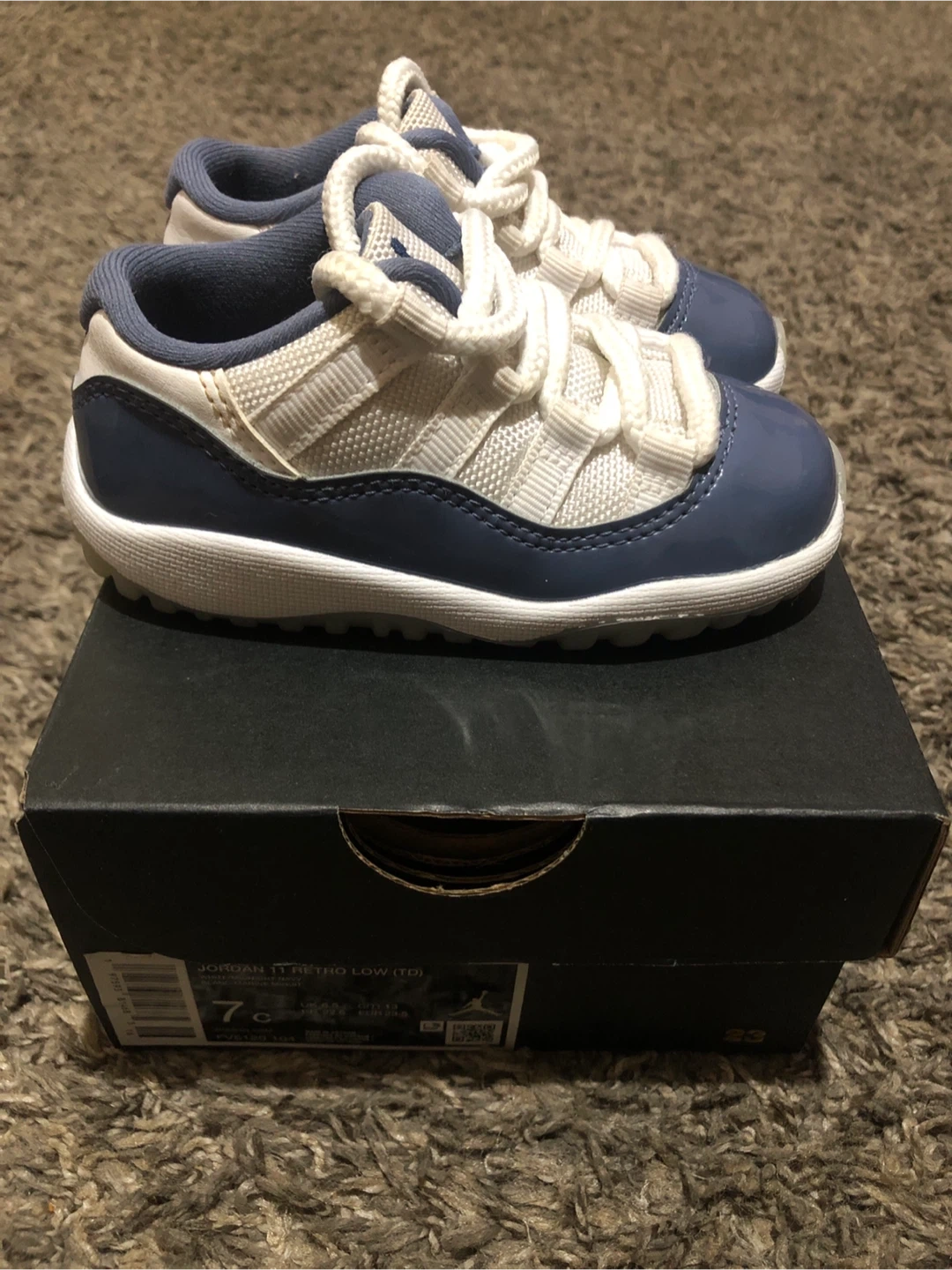Here are some Jordan 11 Retro Low (TD) toddler shoes in a size 7C! They come with the box