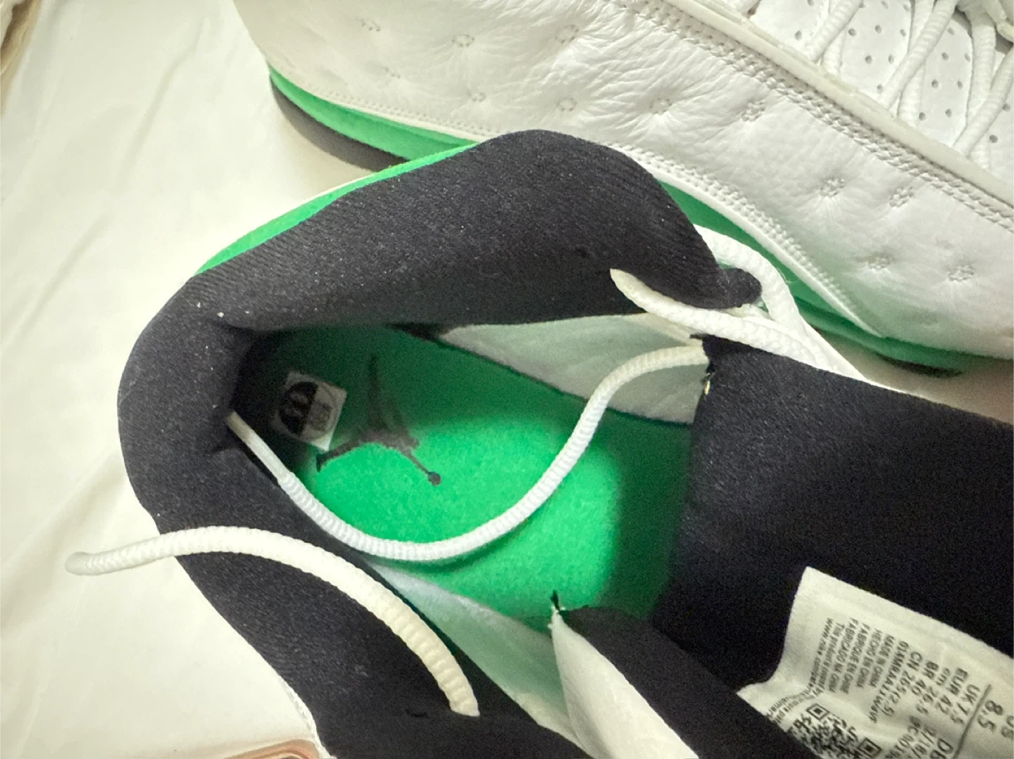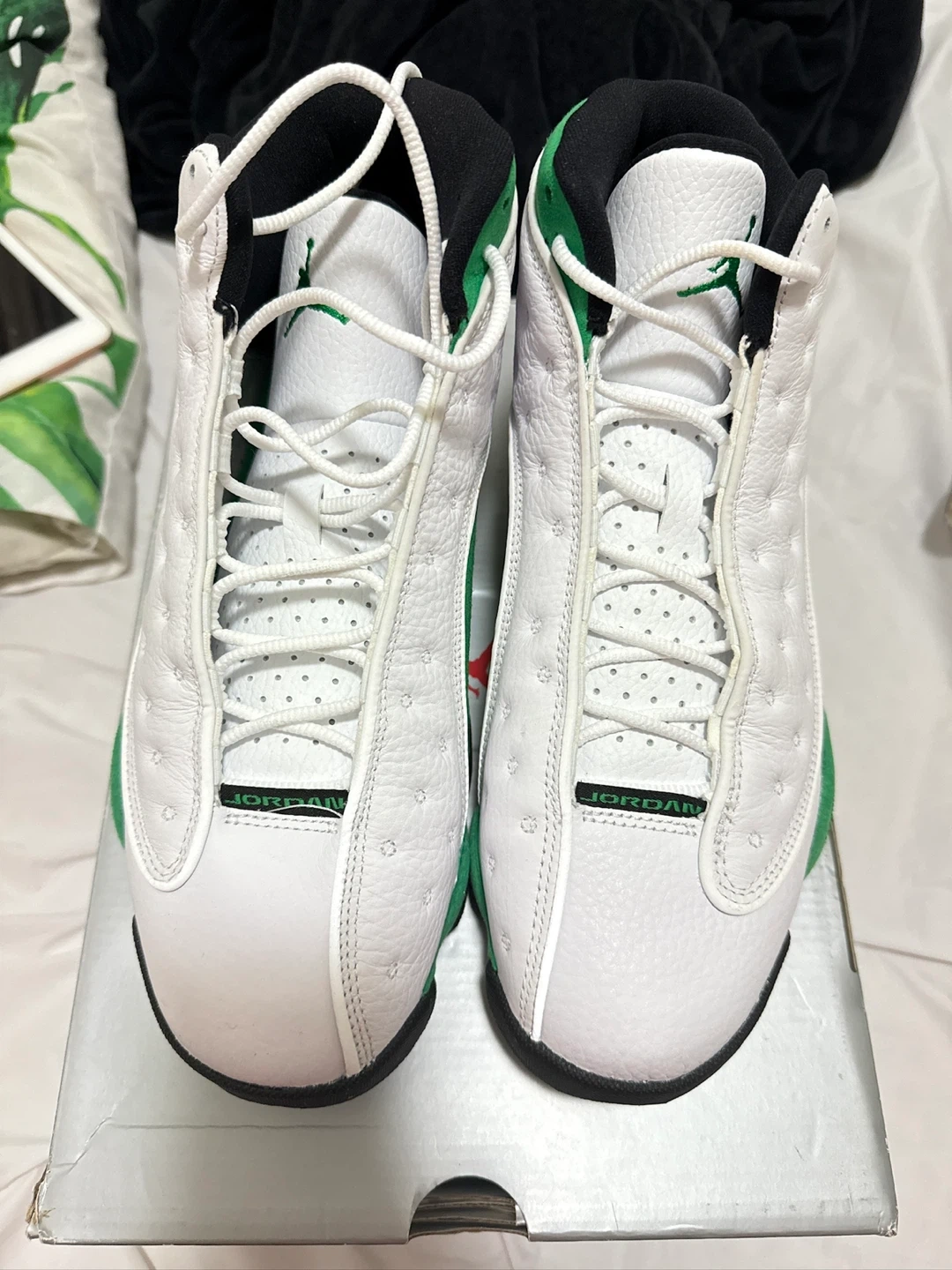 70Selling a pair of Jordan 13s in the Lucky Green colorway, size 8.5. They are in great condition and ready for a new home! The manufacturing date on the label is 2019 December 18.