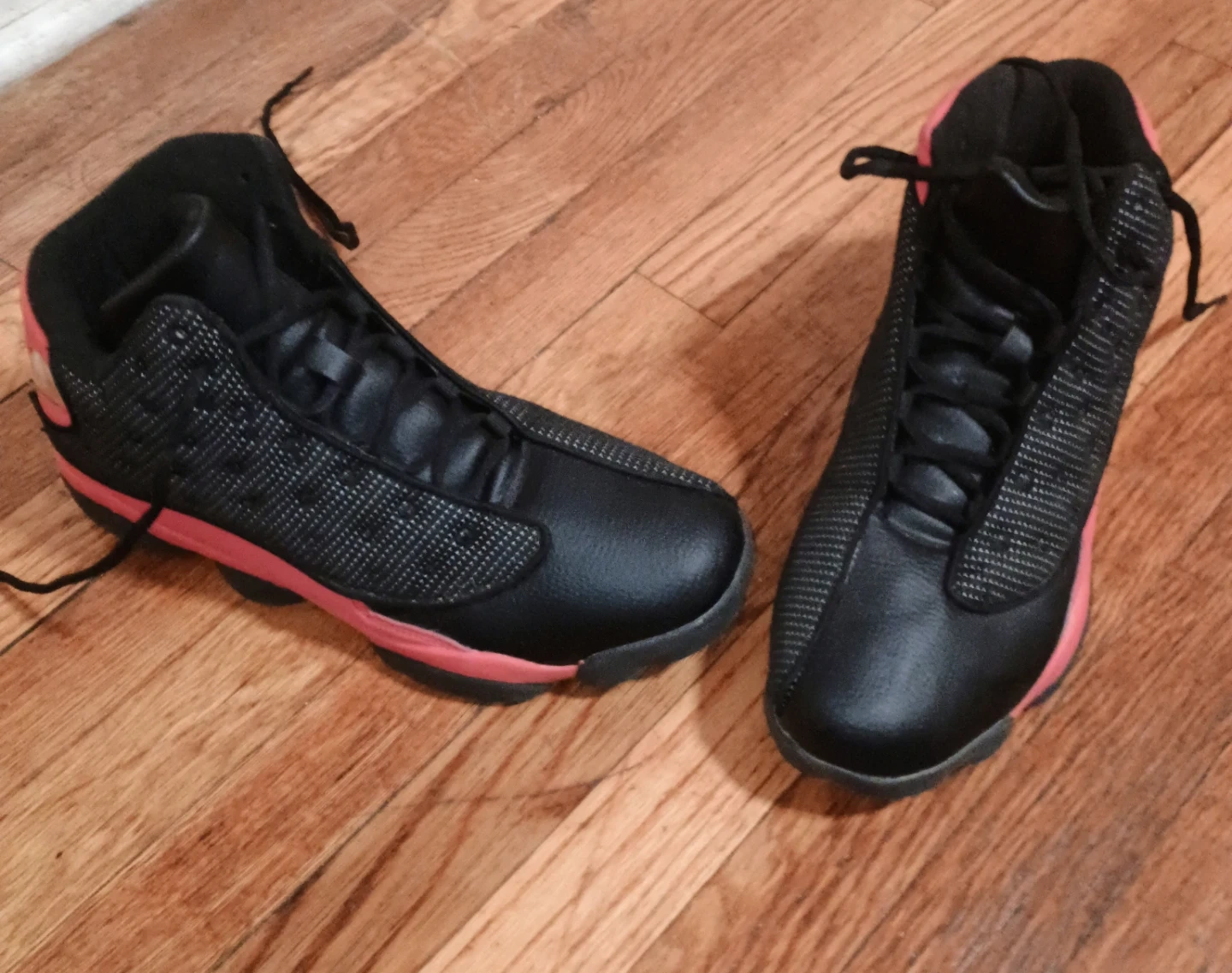 5Selling a pair of Jordan 13 Retro sneakers in black with pink accents. They are in used condition, as shown in the pictures. Perfect for basketball or casual wear!