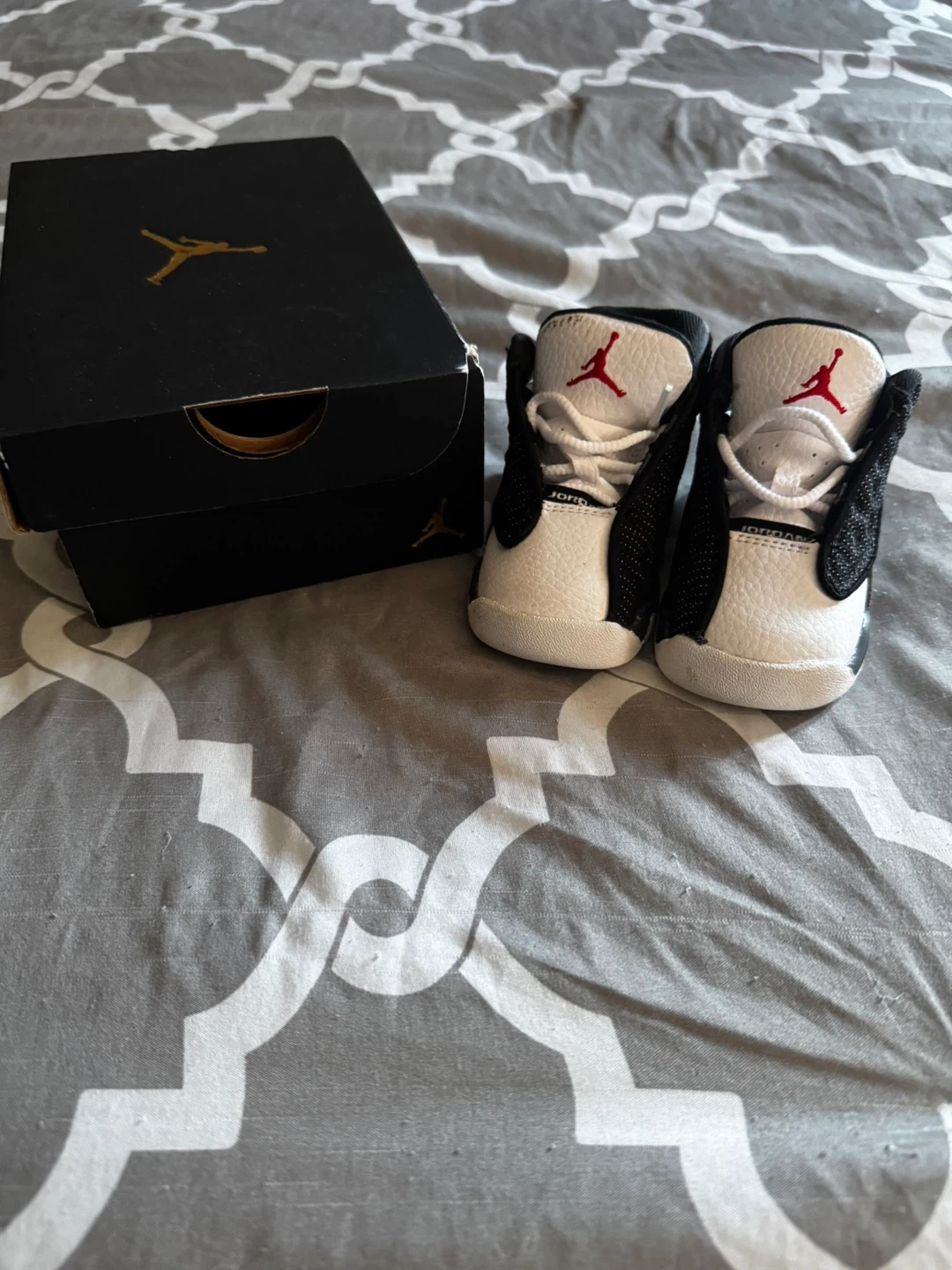Jordan 13 Retro Crib Booties for infants, size 5C. They come with the original box. These are perfect for your little one!