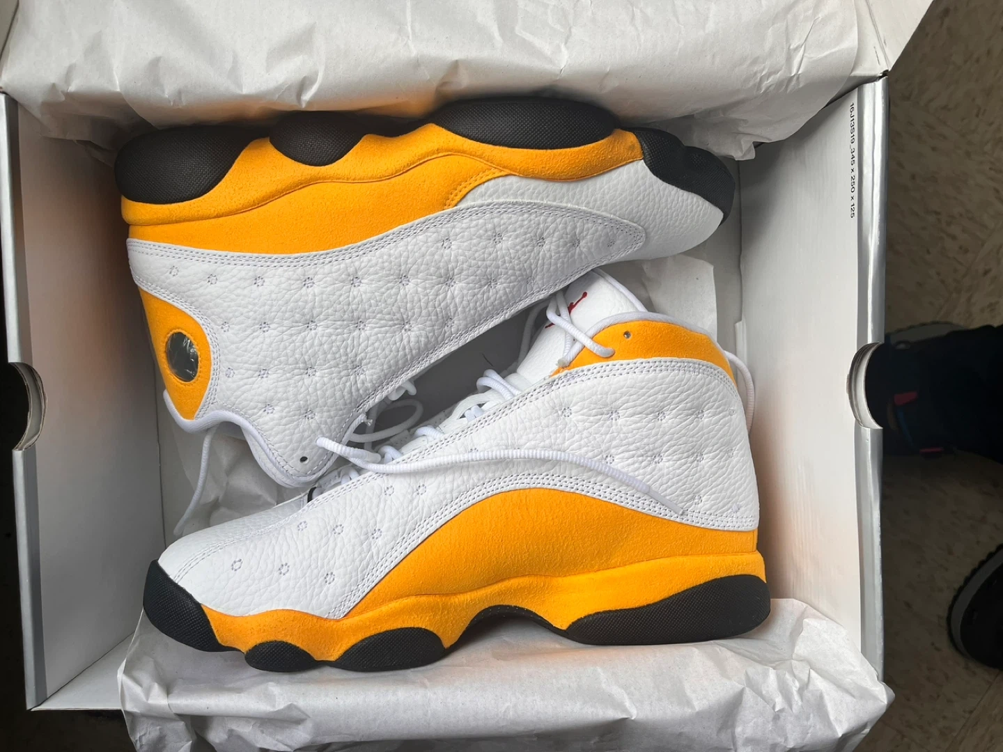 10Selling a pair of Jordan 13 Retro sneakers in the White/yellow colorway! These shoes are in great condition and ready for a new home. Perfect for adding a pop of color to your sneaker collection!