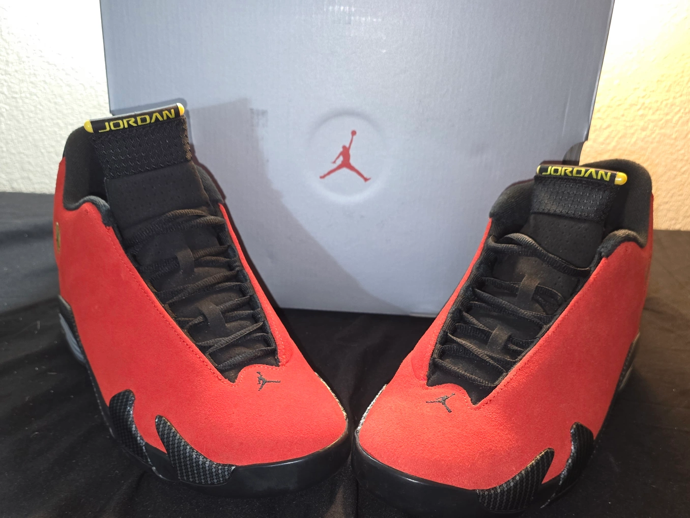 Selling a pair of Jordan 14 Retro Ferrari sneakers in size US 11! They are in great condition and come with the original box