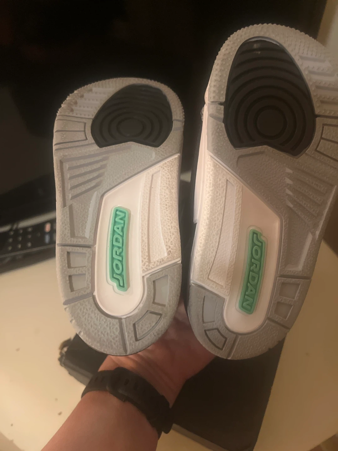 62Selling a pair of Jordan 3 Retro (TD) in size 8C. The color is Black/Green Glow-Wolf Grey. Comes with the original box!
