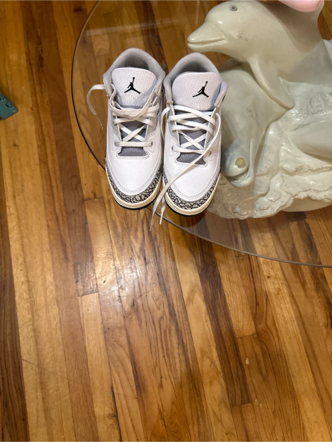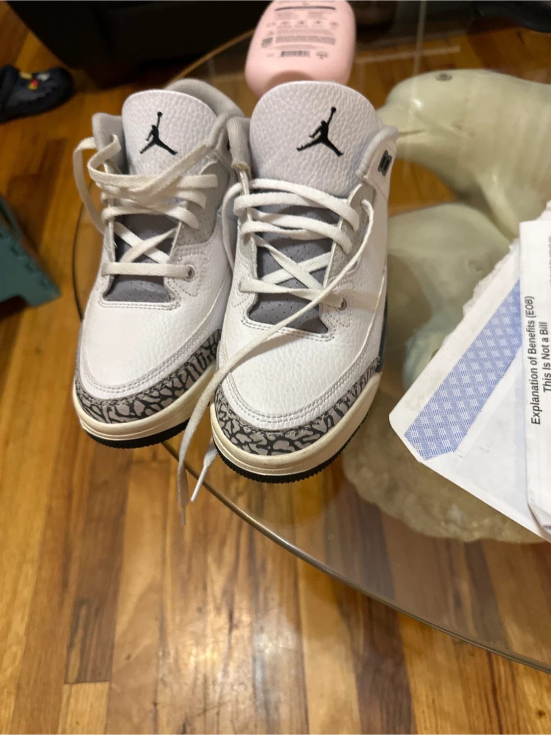 Selling a pair of Jordan 3 Retro White Cement sneakers in toddler size 7! These stylish shoes are in great condition and ready for a new home. They feature the iconic elephant print and classic Jordan design. Perfect for your little one!