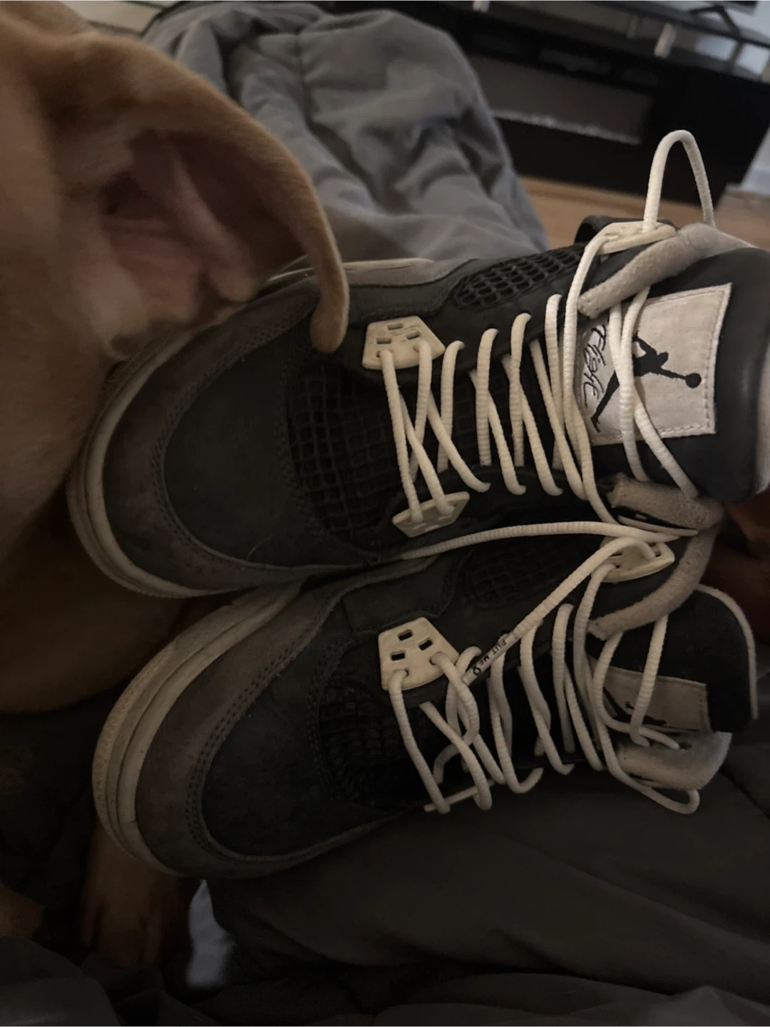 10Selling a pair of Jordan 4 Retro (GS) sneakers in size 5.5Y. They show some signs of wear, as seen in the photos. some scratches on it seen on the photos and i replaced the shoe laces