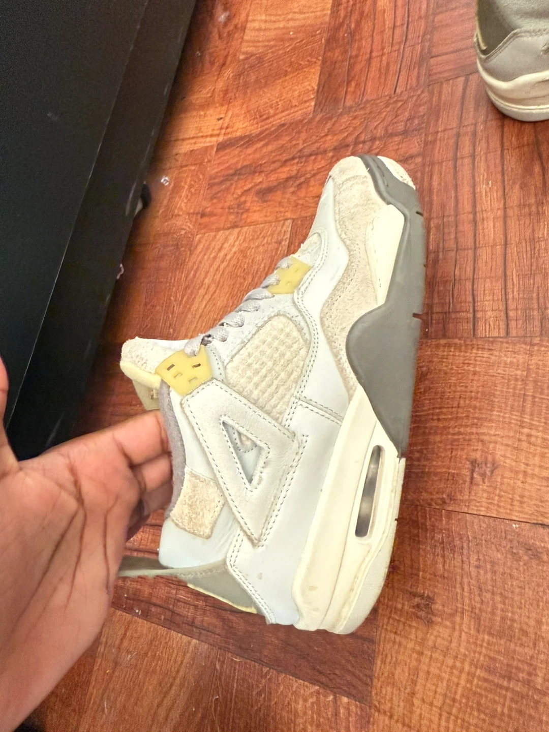 5Selling a pair of Jordan 4 Retro SE Craft Photon Dust sneakers. They show signs of wear but are still in good condition. These sneakers feature a stylish design and comfortable fit, perfect for everyday wear.