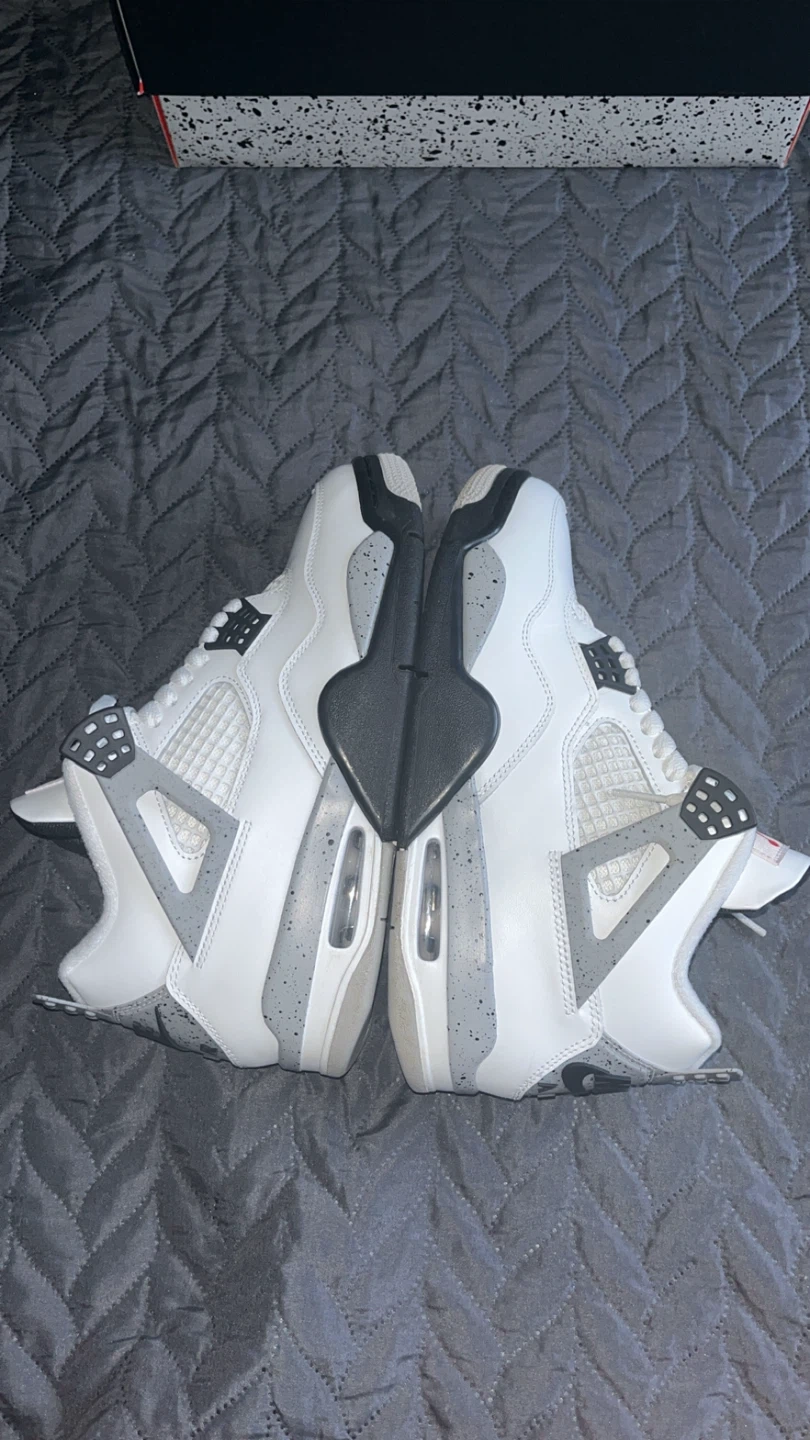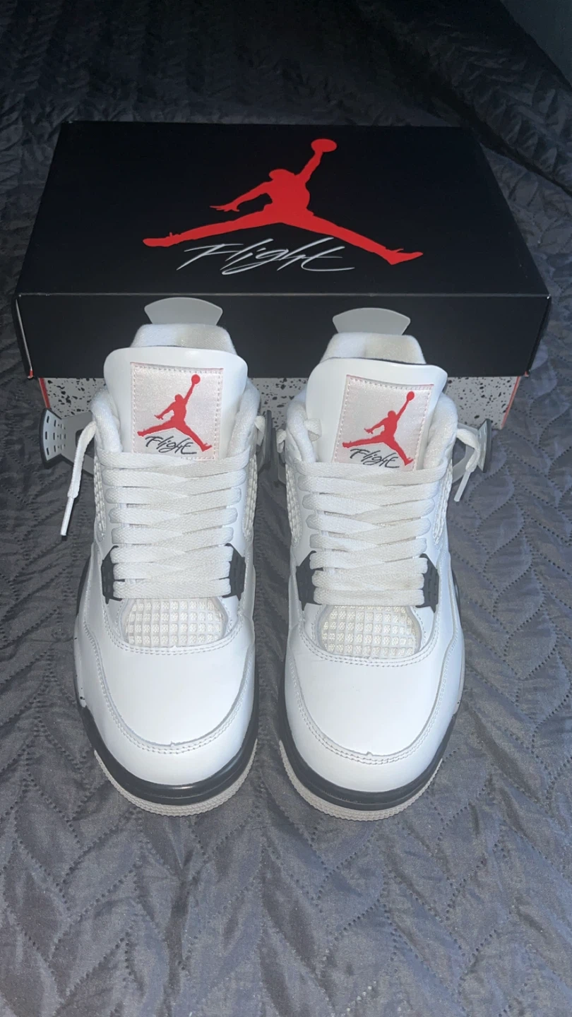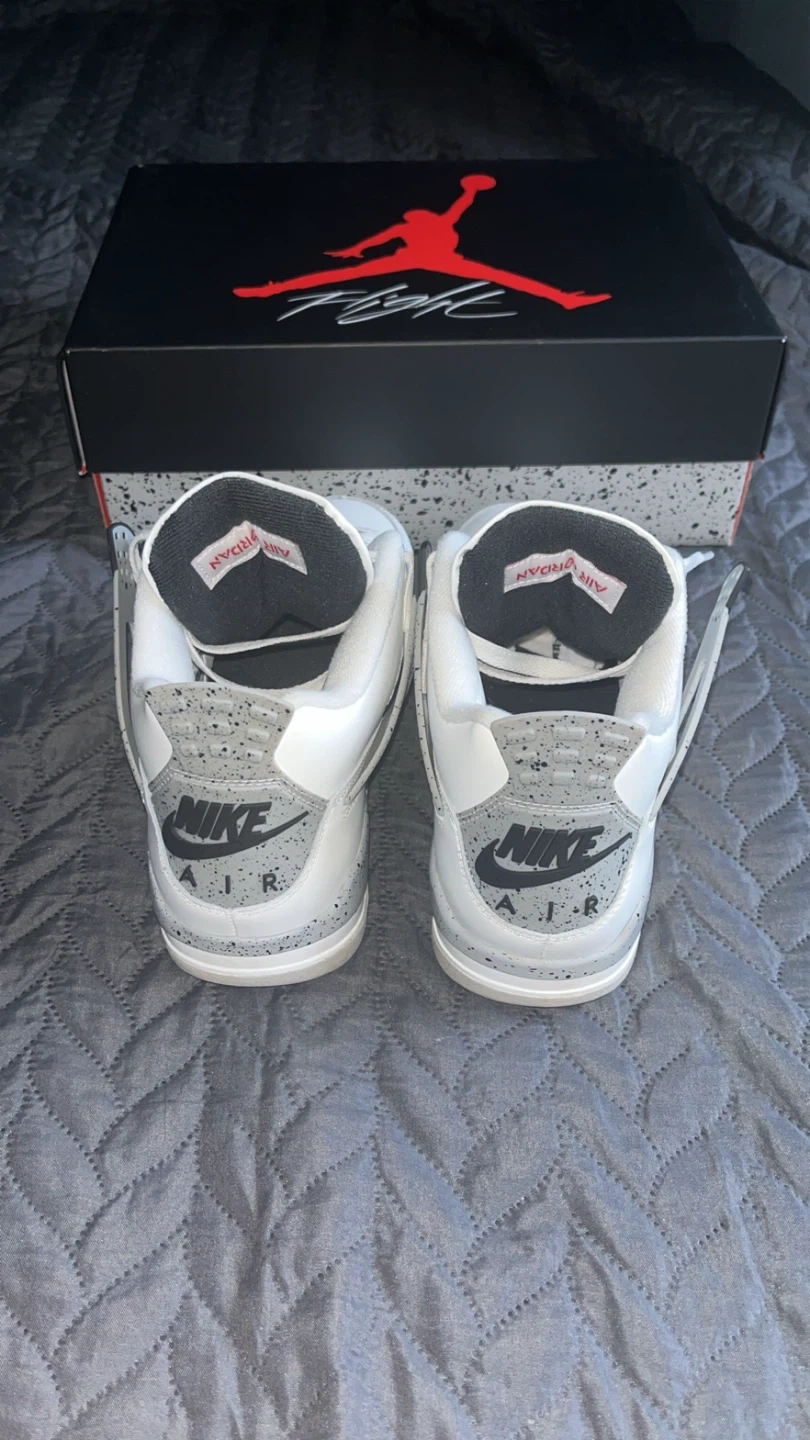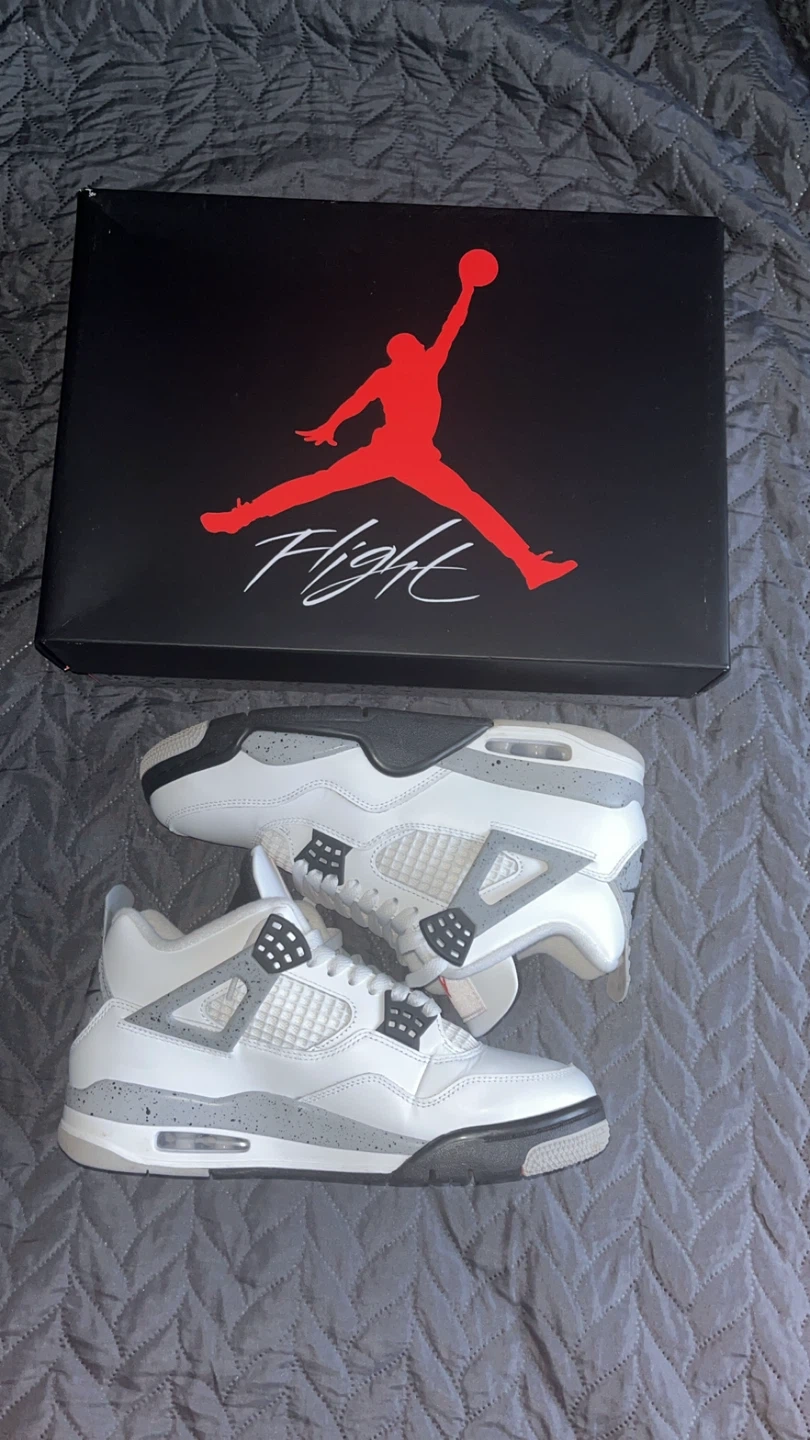 10Selling a pair of Jordan 4 Retro White cement sneakers in size 8 They come with the original box. Great condition. I can also ship the item to your home.