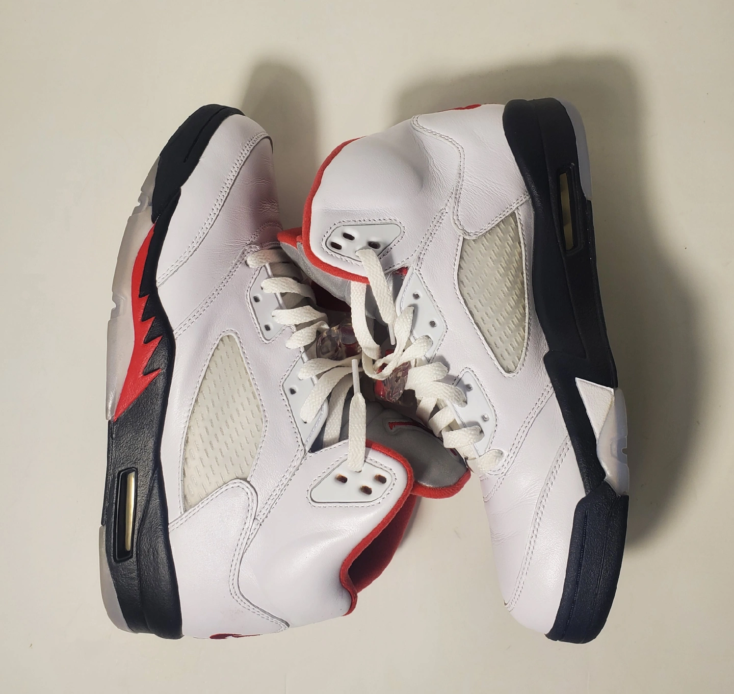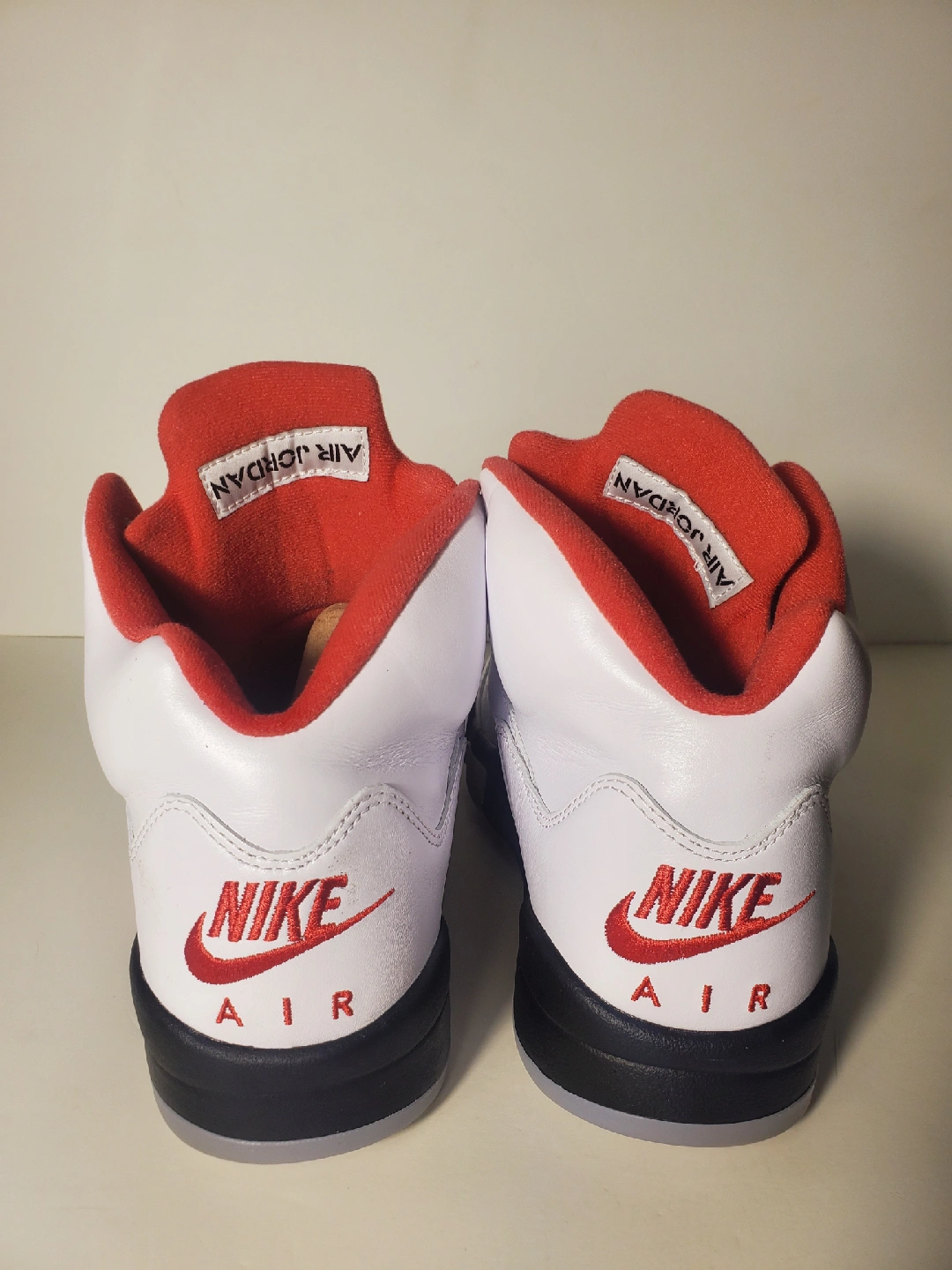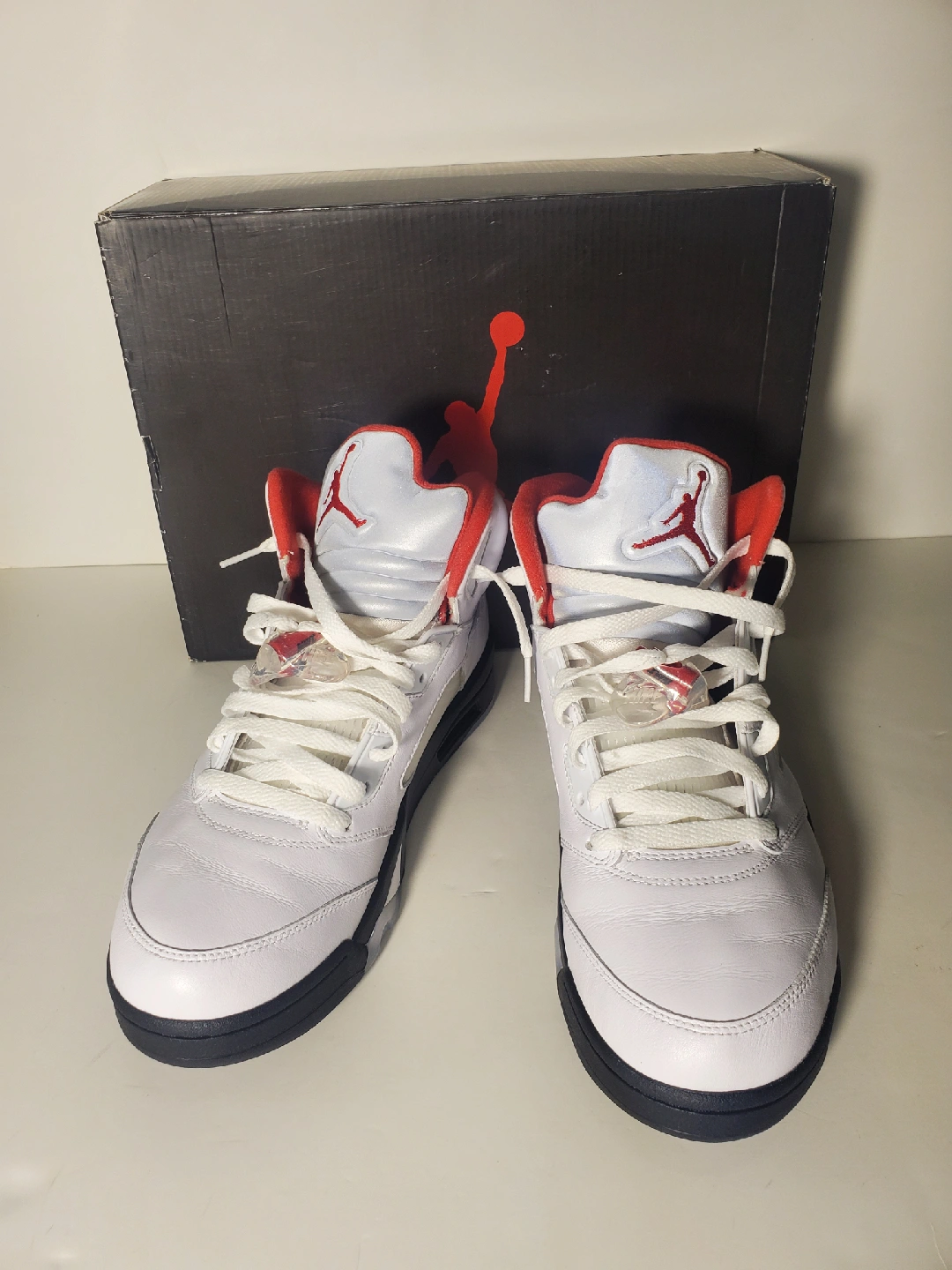 Pre-Owned Men’s Jordan 5 Retro Fire Red Silver Tongue With Original Box DA1911-102 Size 10 Brand: Jordan Color: Red, white, and Black Size: 10 Style Number: DA1911-102 Comes With Original Box Has creasing The bottom soles show wear, a good cleaning for the soles all around Please see pictures for imperfections Great Condition