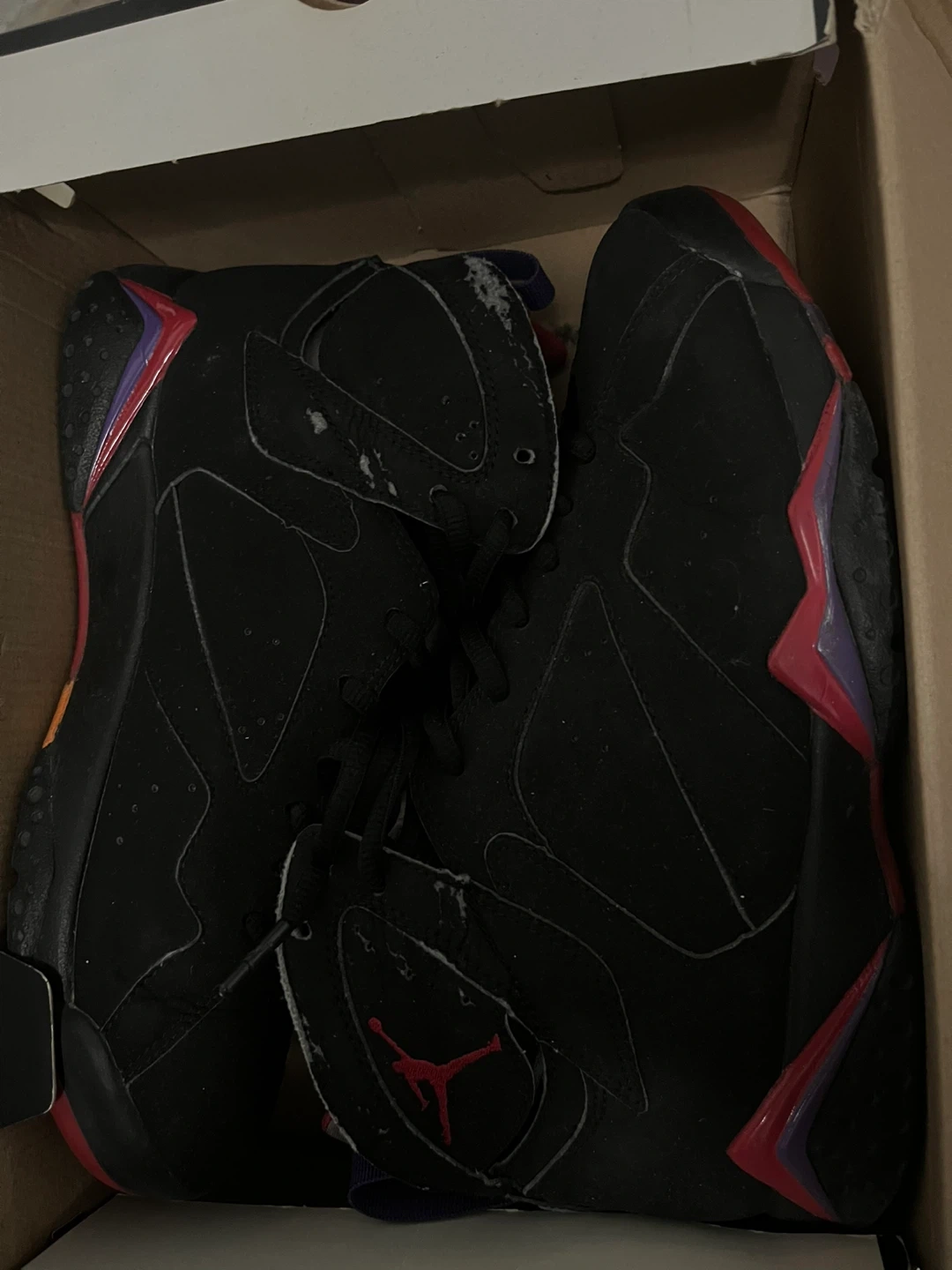 Selling a pair of Jordan 7 Retro in black. They show signs of wear and tear. Please see pictures for details