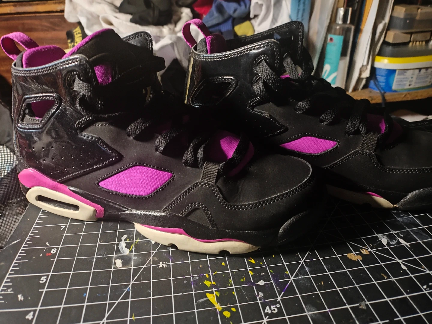 75Selling a pair of Jordan Flight Club 91 High sneakers in black and fuchsia. They are in great condition and ready for a new home!