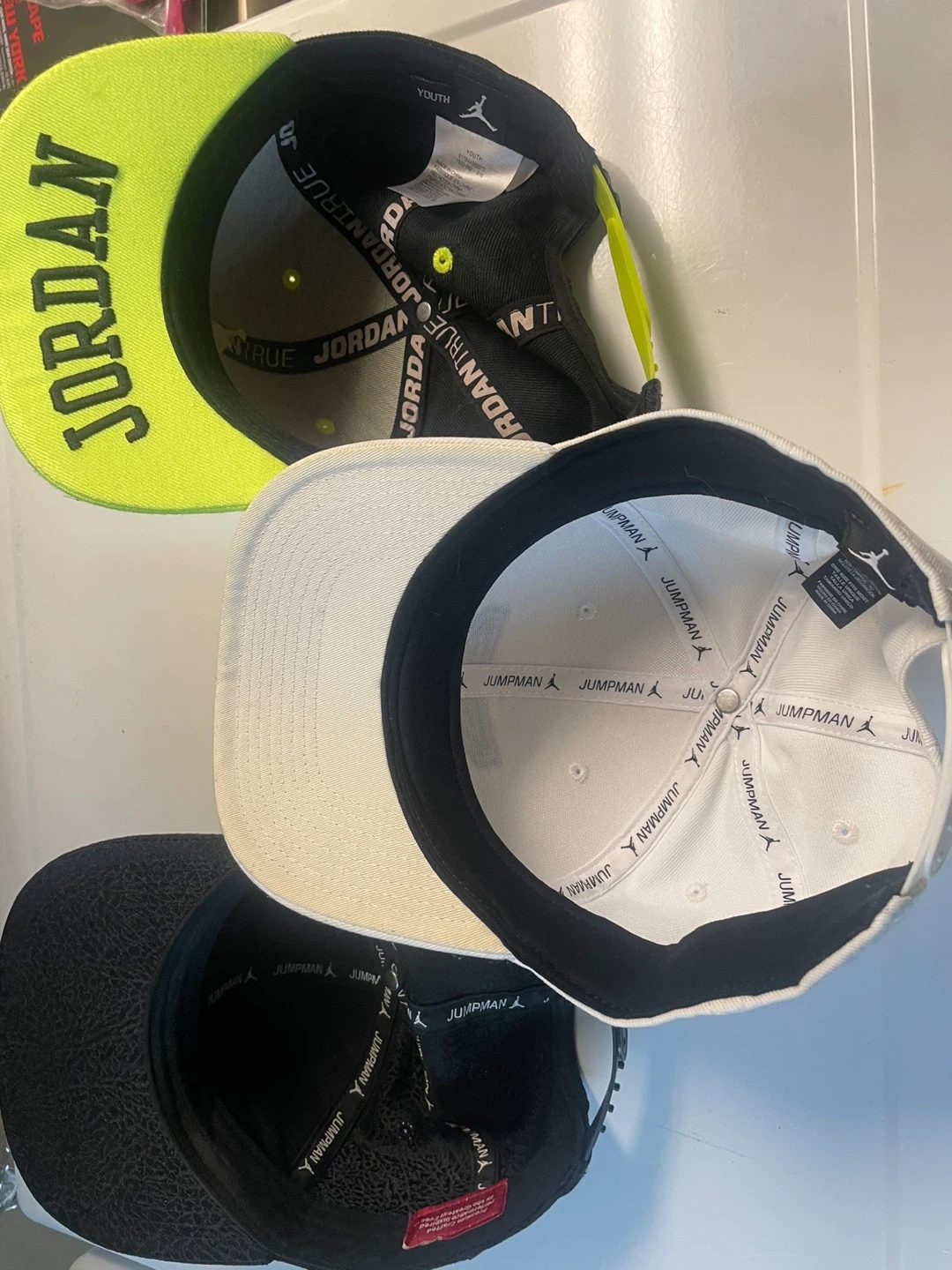 62Selling a variety of Jordan Jumpman hats! They are one size fits most. Material: - Front panel: 80% polyester, 20% cotton - Underbill: 100% cotton