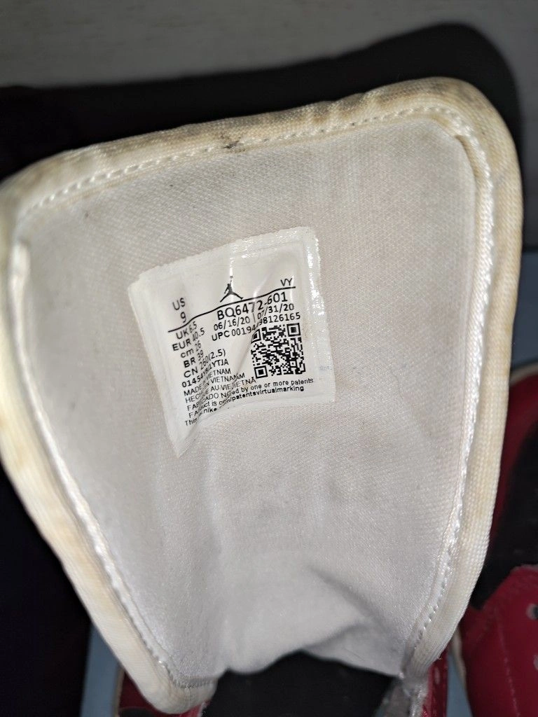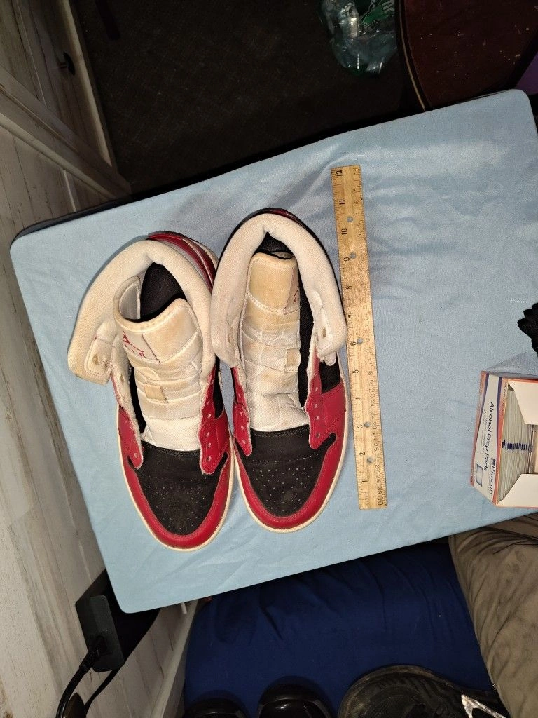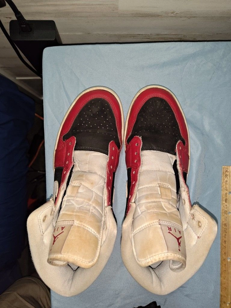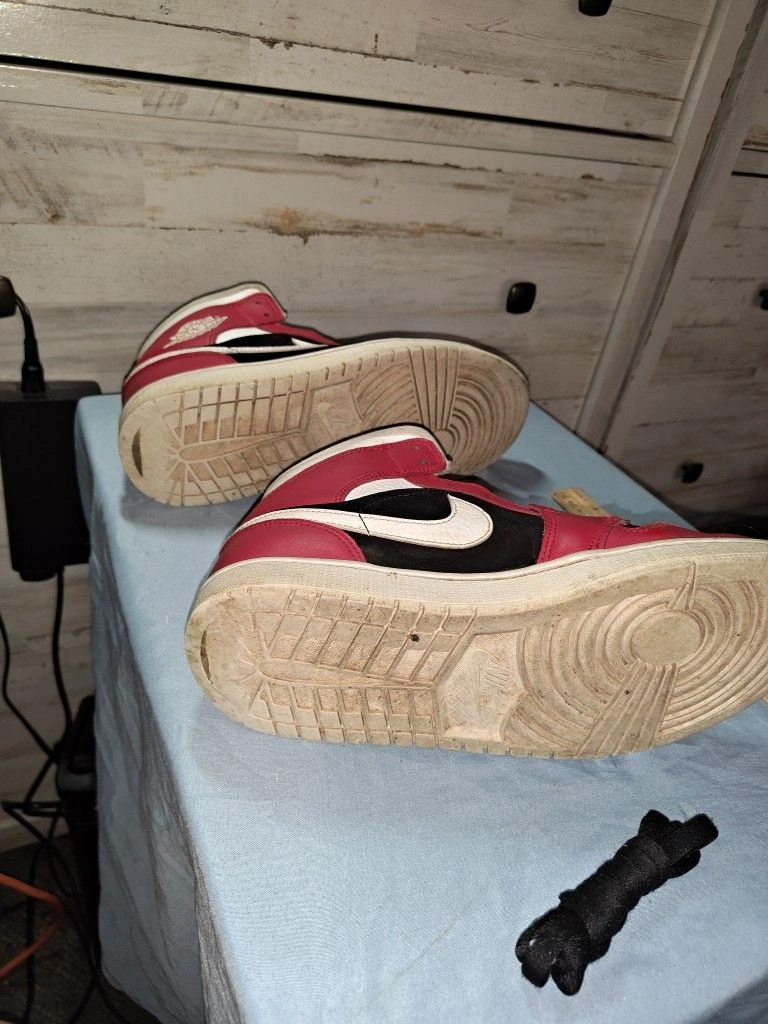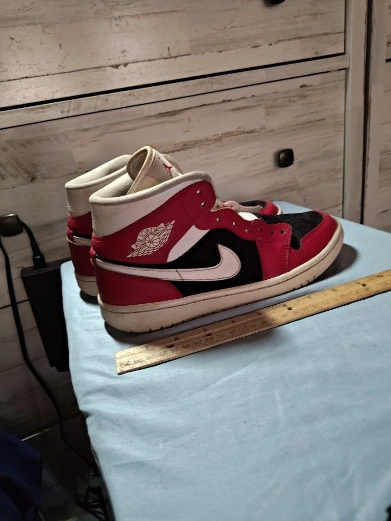 25Jordan one mids. Size 9 Worn and needs a good deep cleaning to get dirt out Gym Red/Black Color Slight heel drag Used online is usually about 80, asking for 40, given the used condition Could use some TLC God Bless and Hope you have a good day ๐๐ผ Size: 9 Color: Gym Red/Black Activity: Varies Shoe Width: D/M Brand: Nike