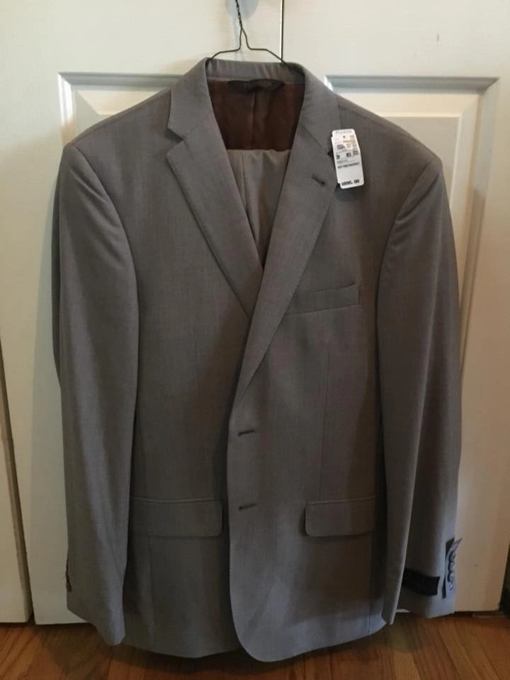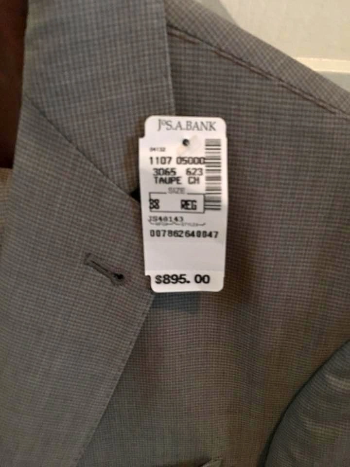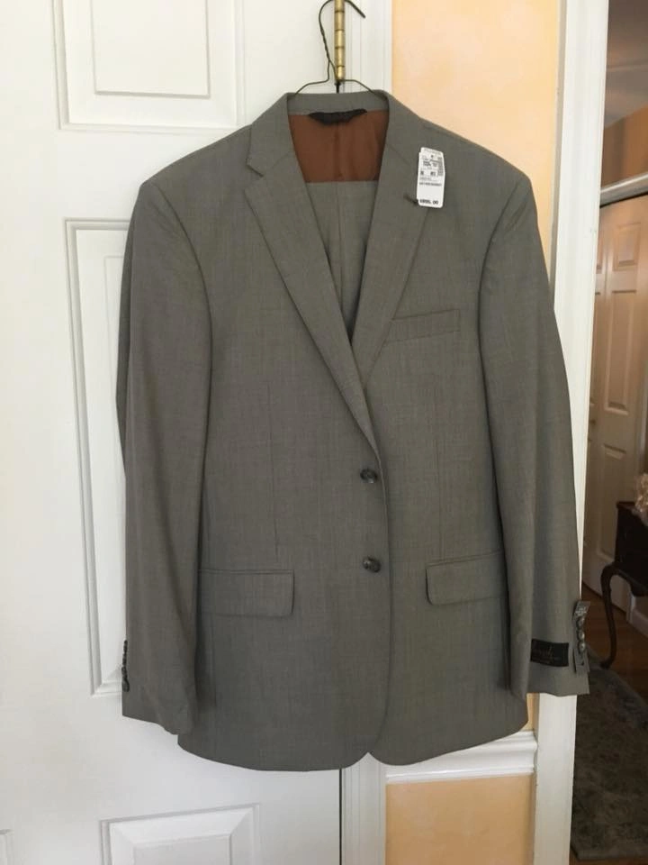 5Designer JoS A Bank NWT taupe/grey 2pc men’s suit. Jacket 38R. Pants waist 32, length 40” waist to hem 30” crotch to hem. There is 2 ½ inches fabric at hem to let down if longer is needed. 100% wool, very soft and light weight. Great deal at more then 50% off original price! Please see my other items for sale Thanks for looking