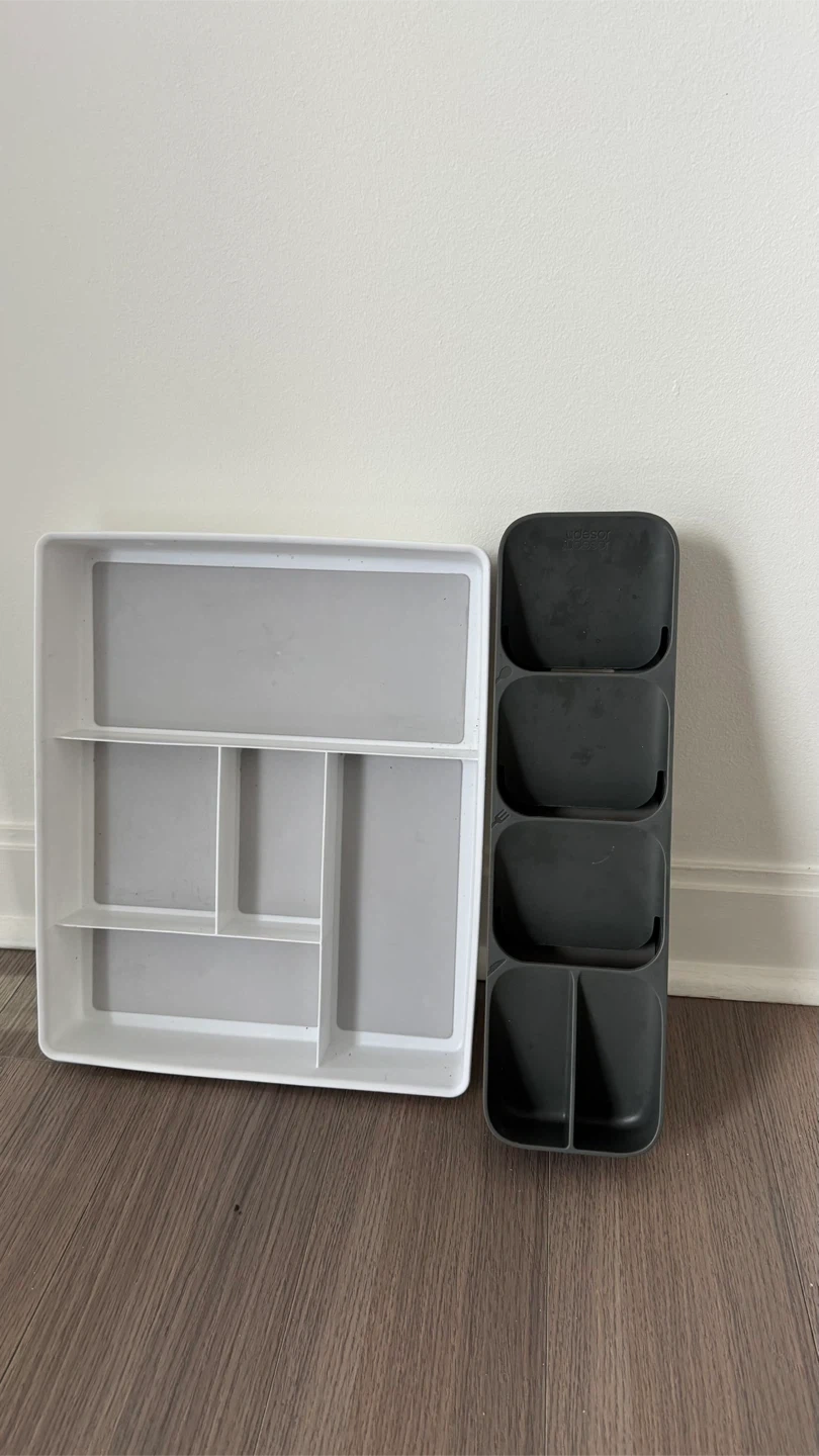 25Selling two drawer organizers from Joseph Joseph! One is a white and gray cutlery organizer and the other is a dark gray utensil organizer. They're in great condition and ready to help you get your drawers in order