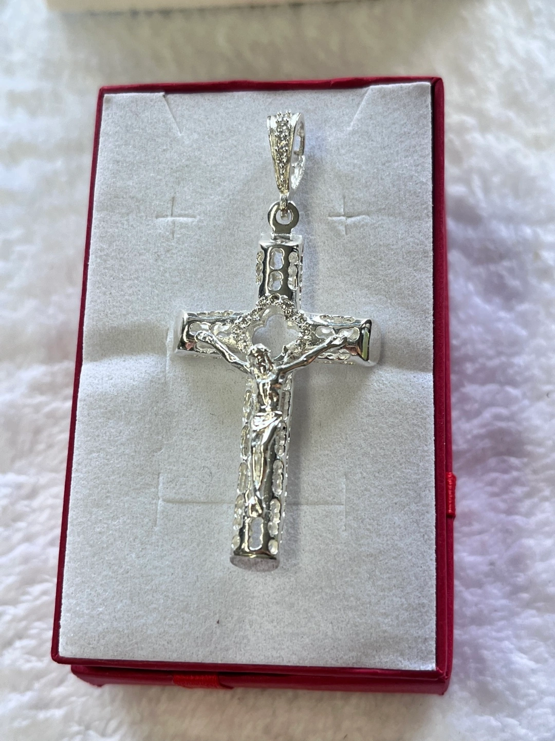 Silver Cross Pendant with Rhinestones