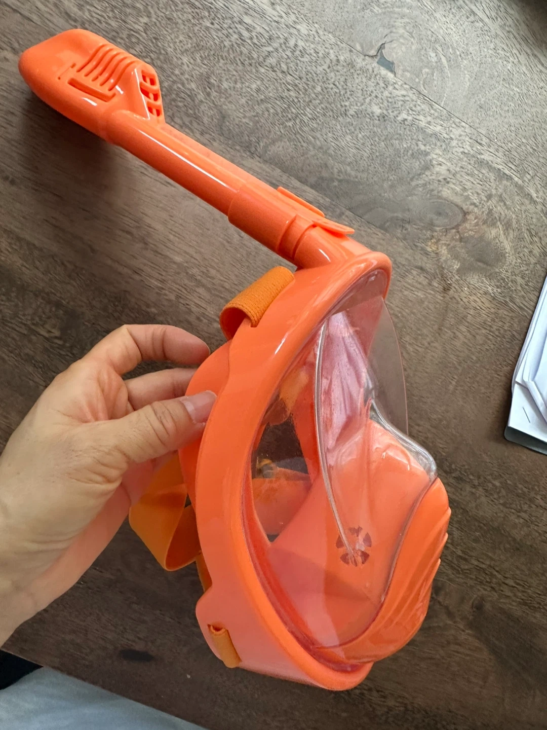 Selling an orange full face snorkel mask! It comes with the snorkel attachment. Perfect for your next snorkeling adventure. It works well and clean.