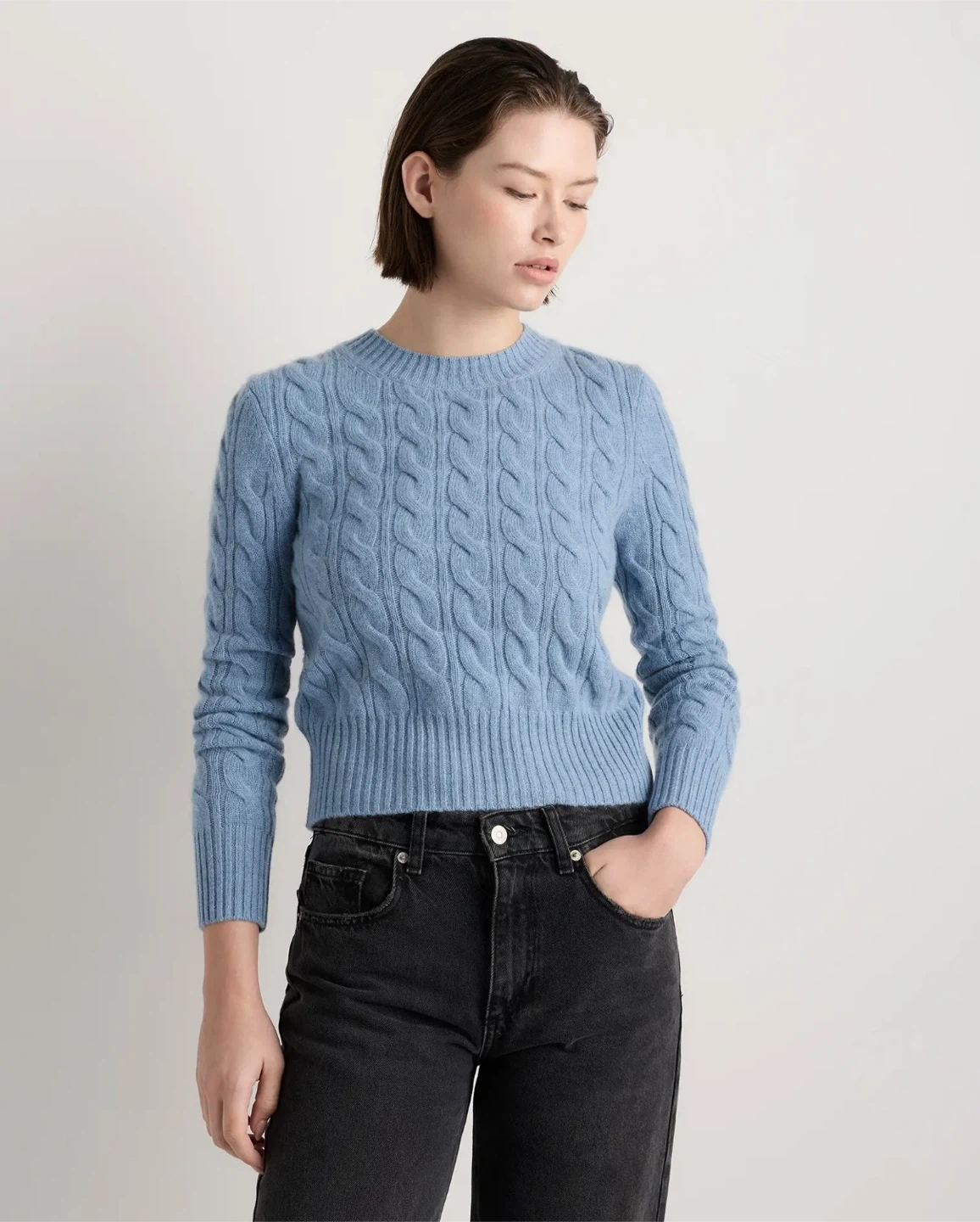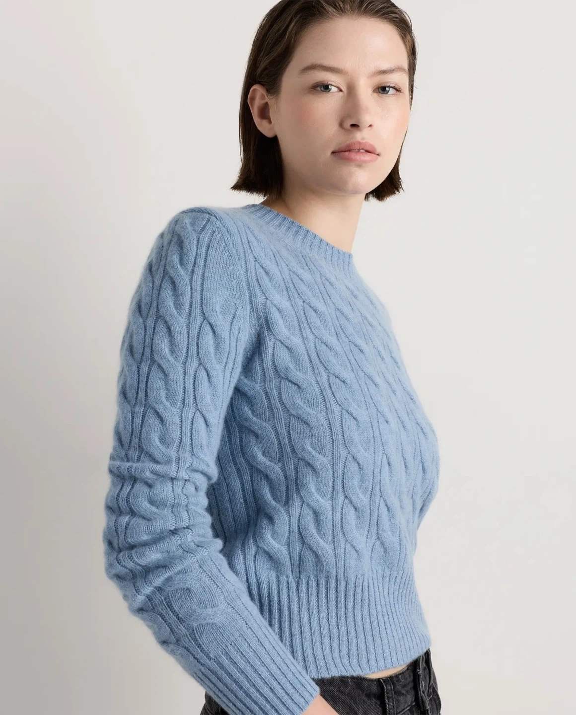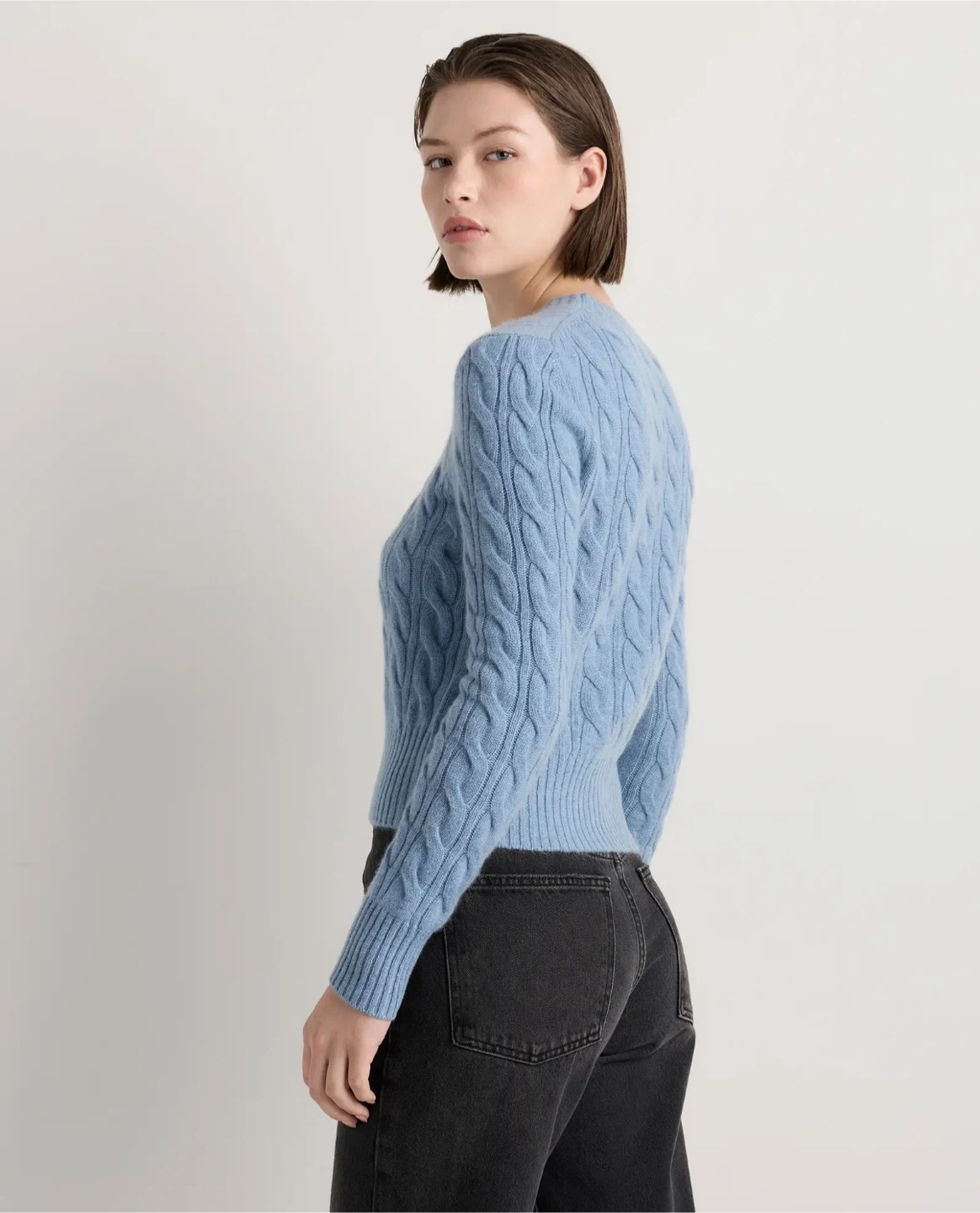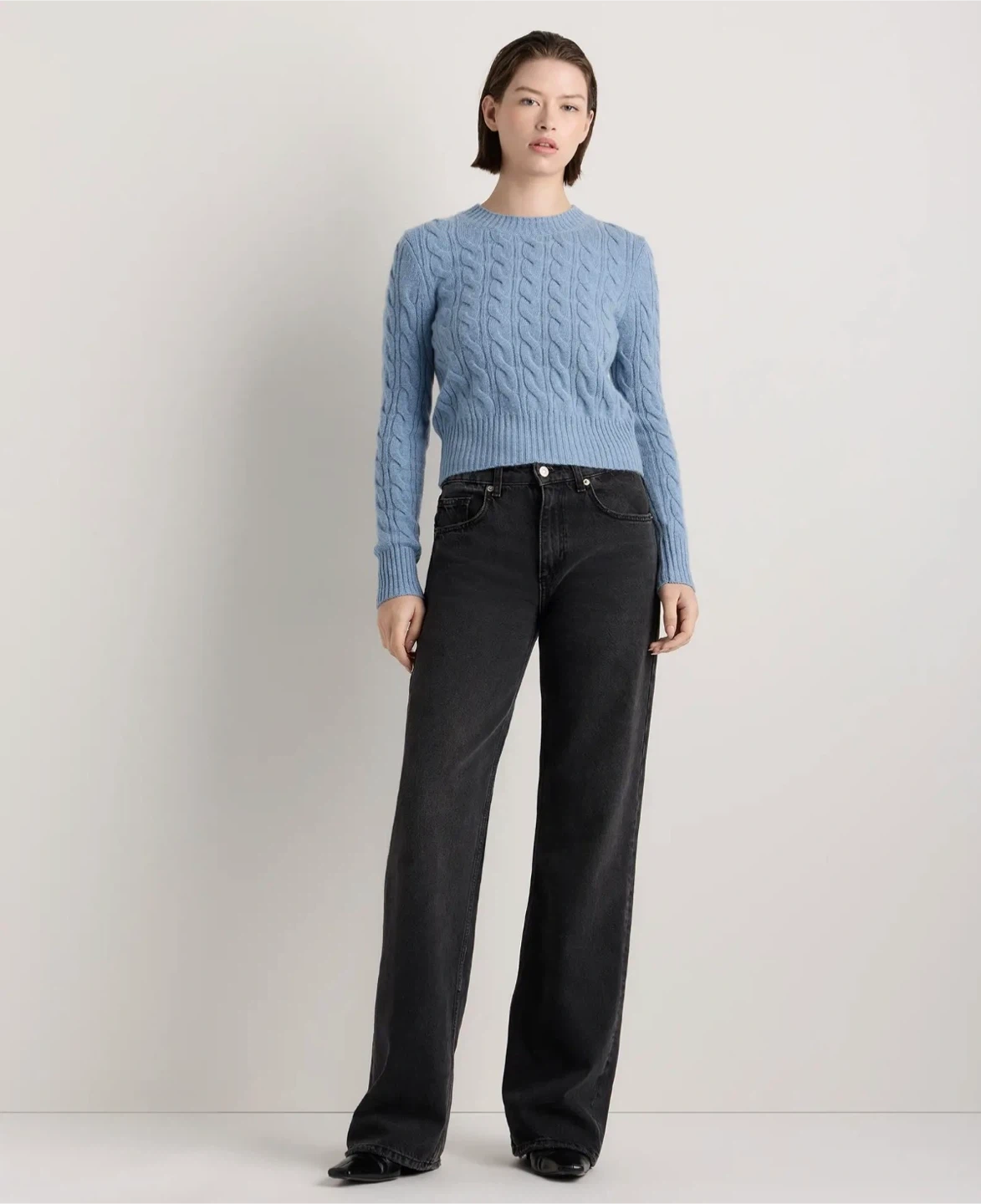 NWT Quince Cashmere Cable Knit Sweater, Small - Light Blue