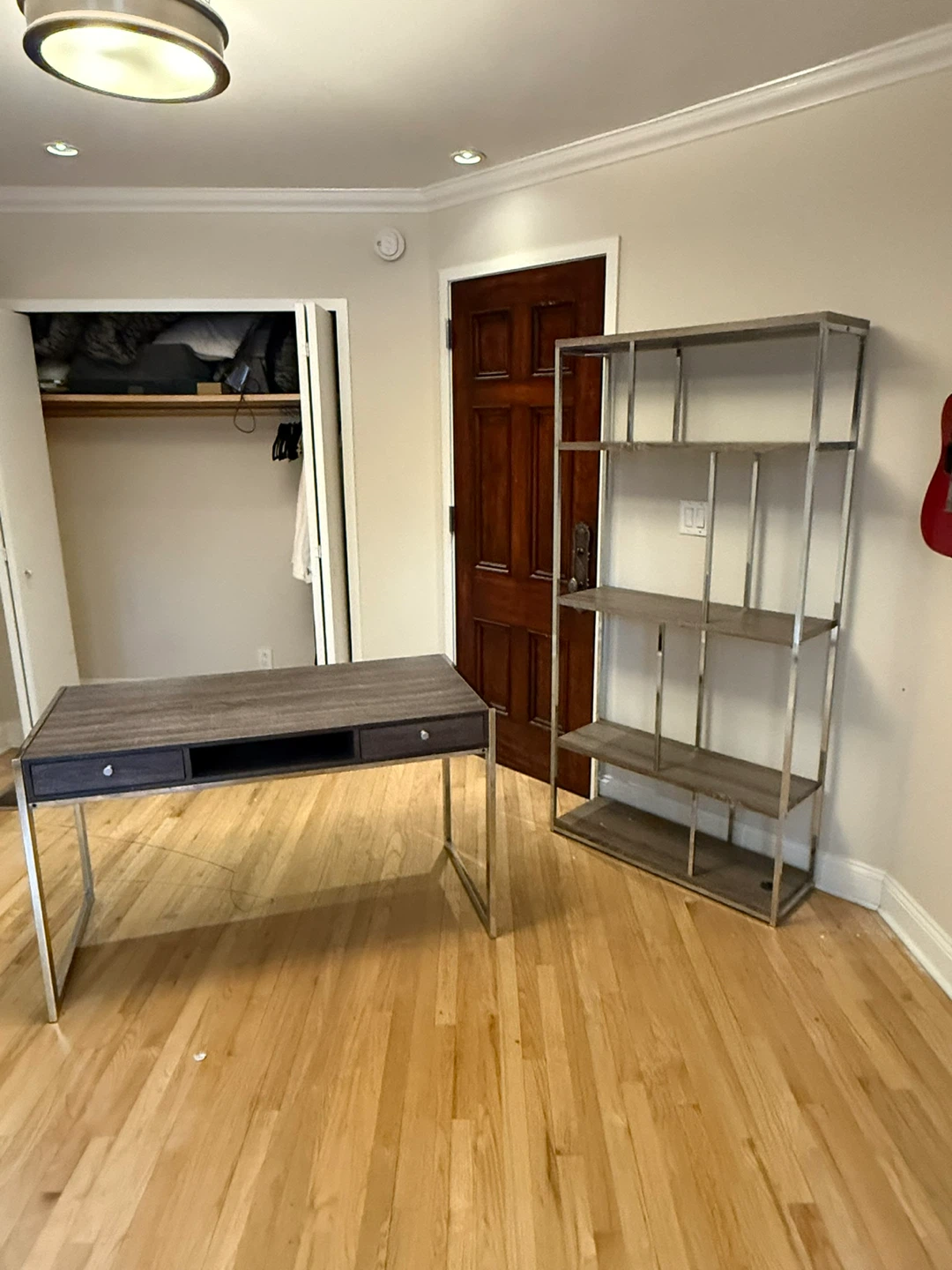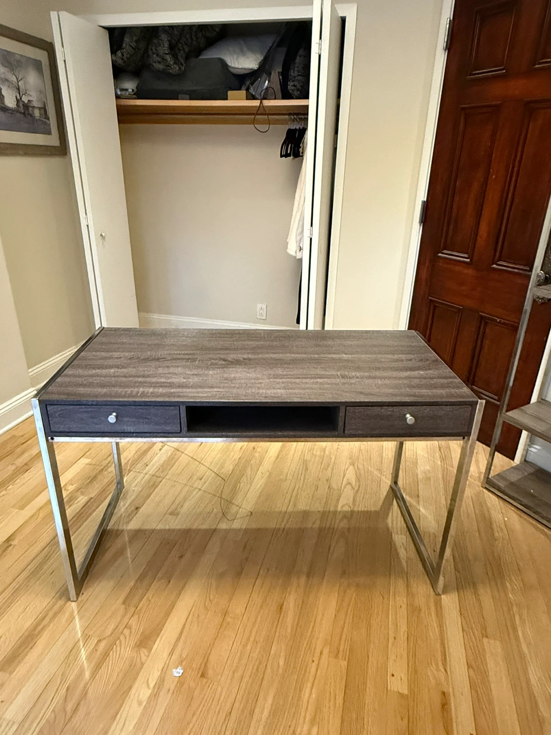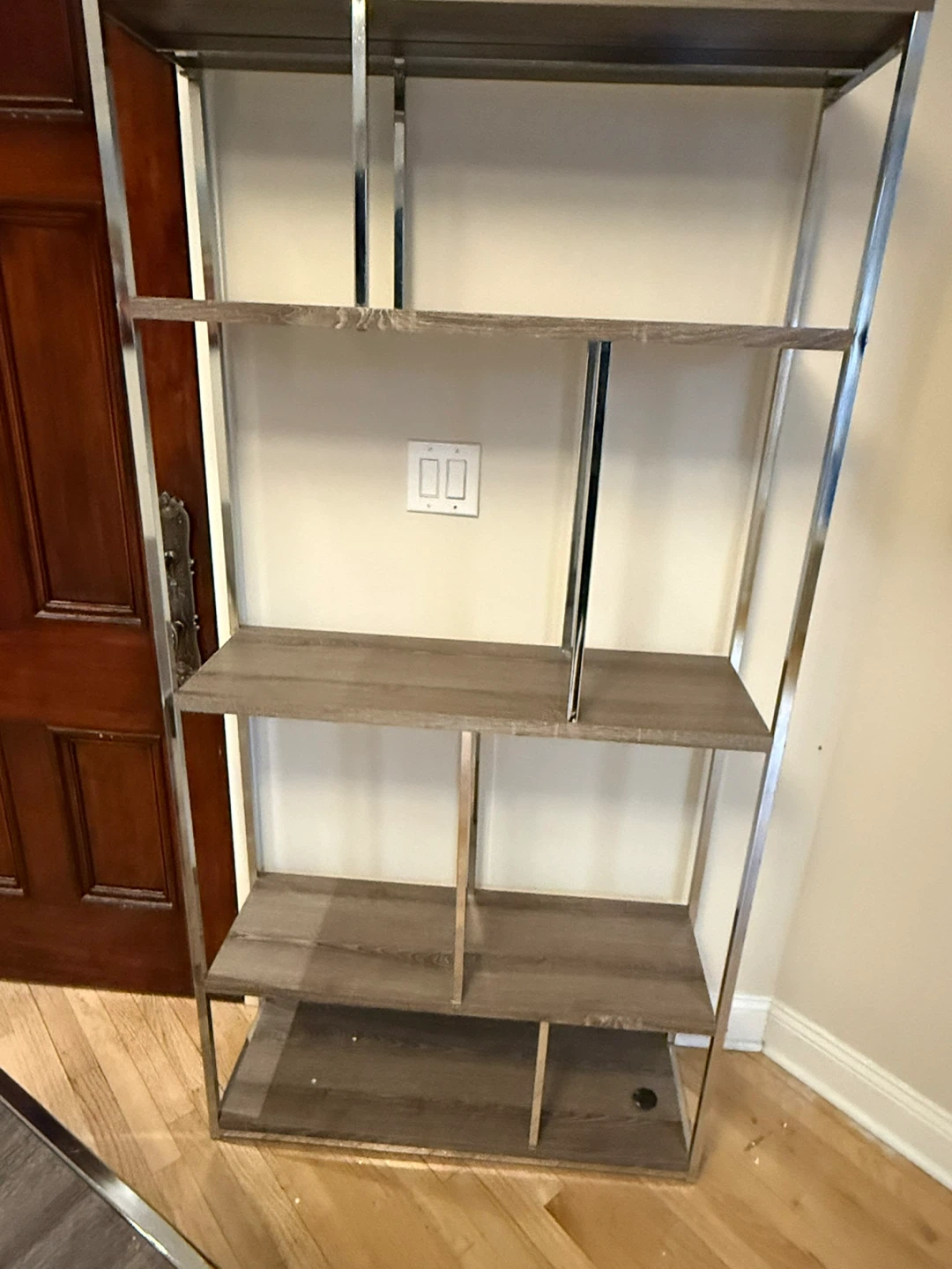 Wood Grain Desk w/ Silver Frame PLUS Bookshelf