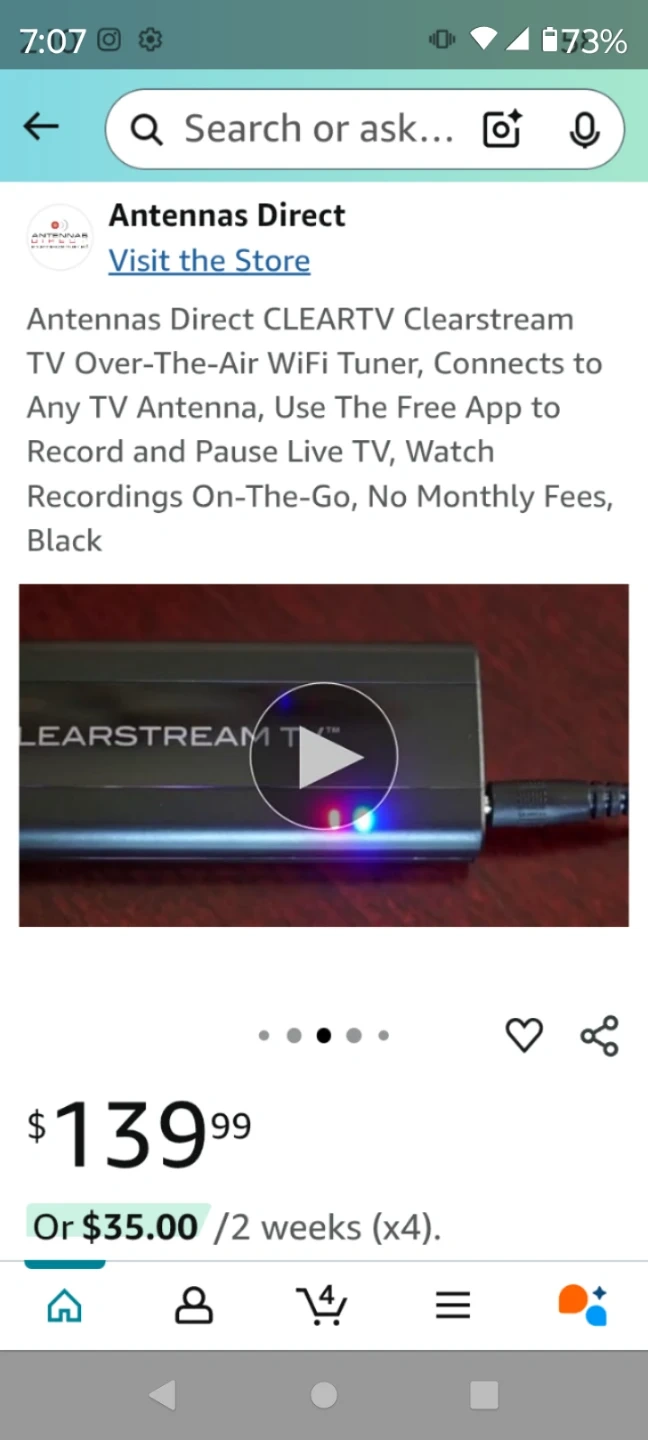 Antennas Direct CLEARTV Clearstream TV Over-The-Air WiFi Tuner, Connects to Any TV Antenna, Use The Free App to Record and Pause Live TV, Watch Recordings On-The-Go, No Monthly Fees, Black