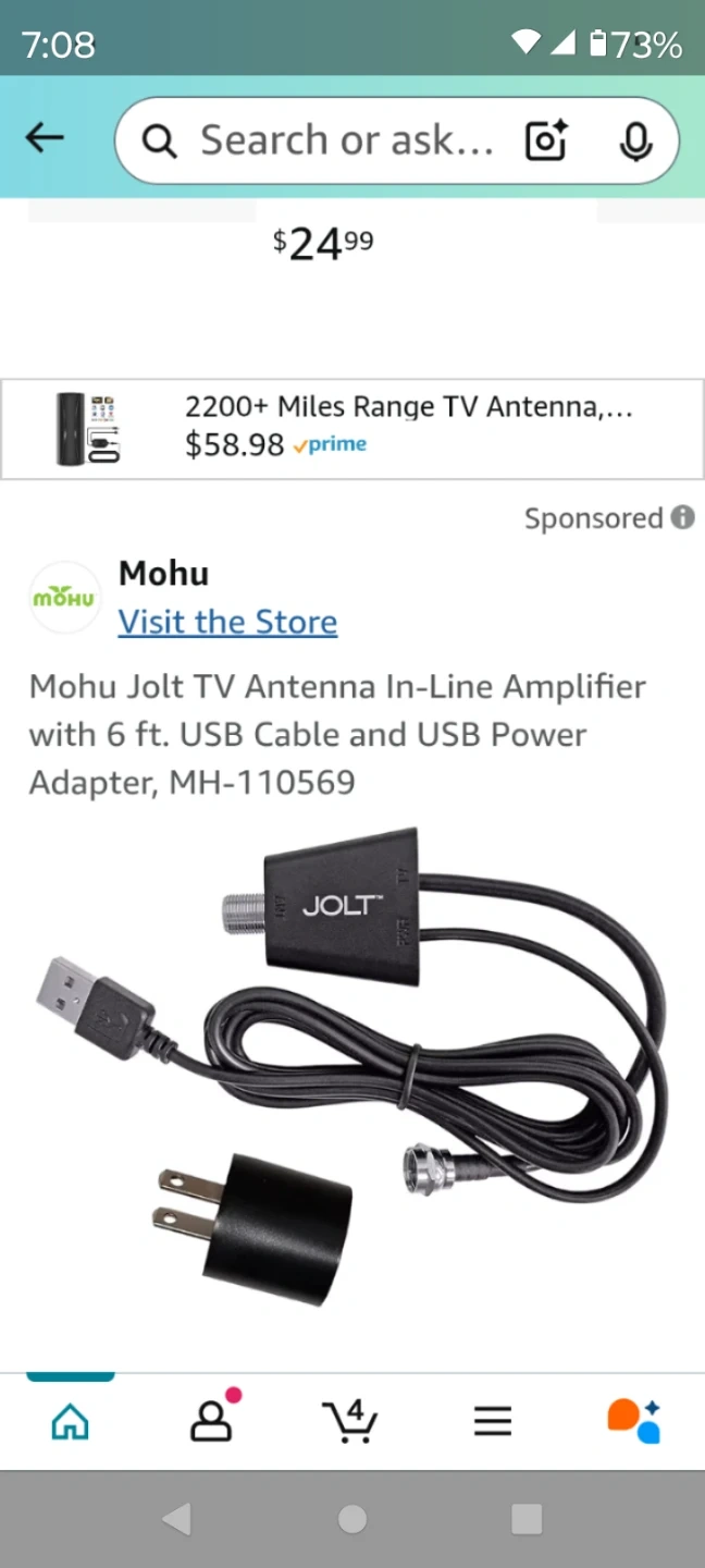 Mohu Jolt TV Antenna In-Line Amplifier with 6 ft. USB Cable and USB Power Adapter, MH-110569