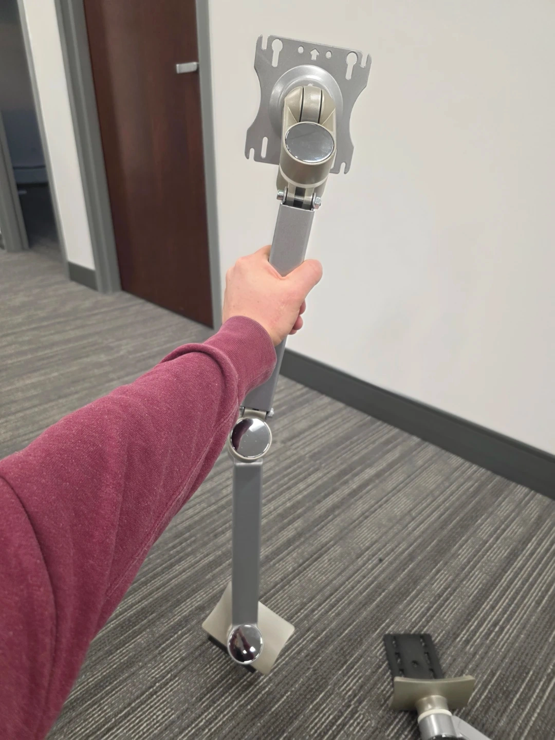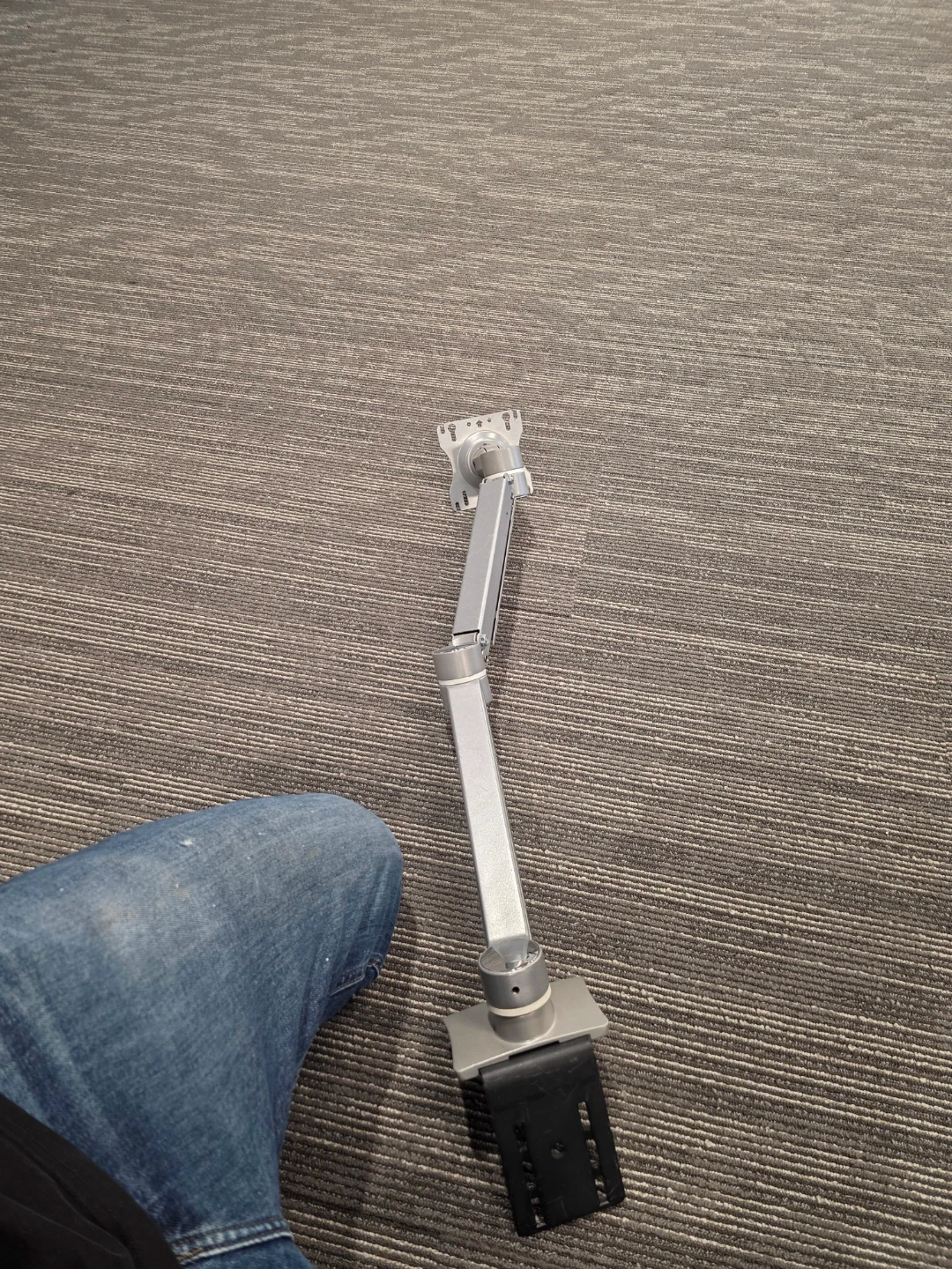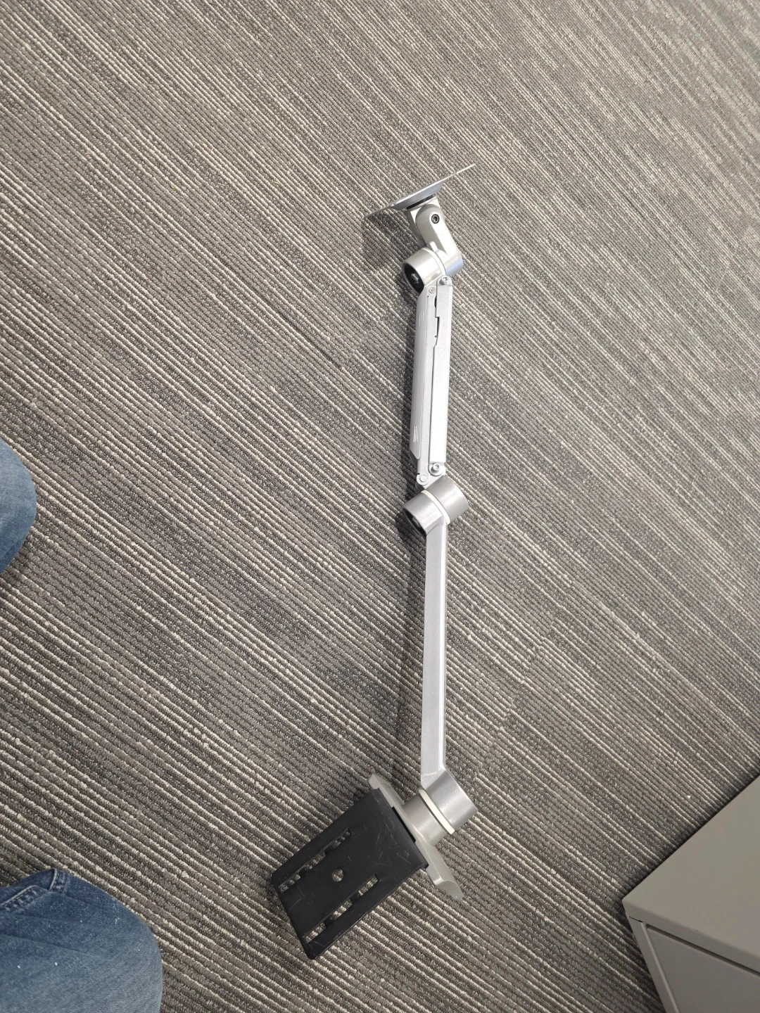 Selling a silver adjustable monitor arm. It's in great condition and ready to help you optimize your workspace. It can be adjusted to different heights and angles for comfortable viewing