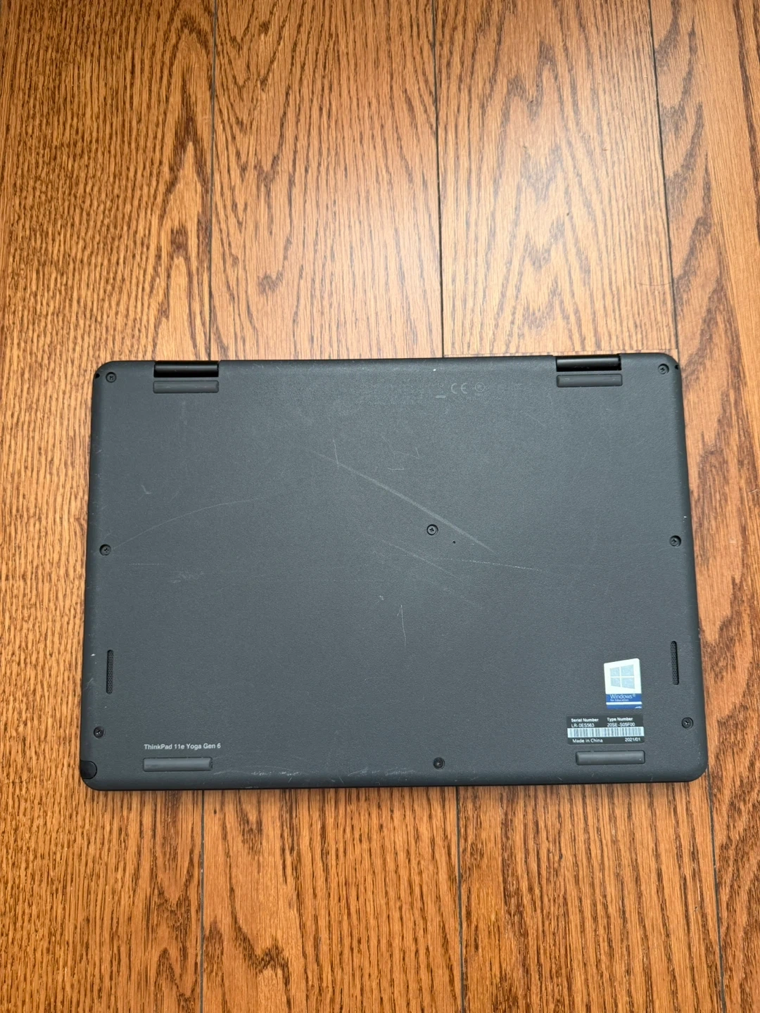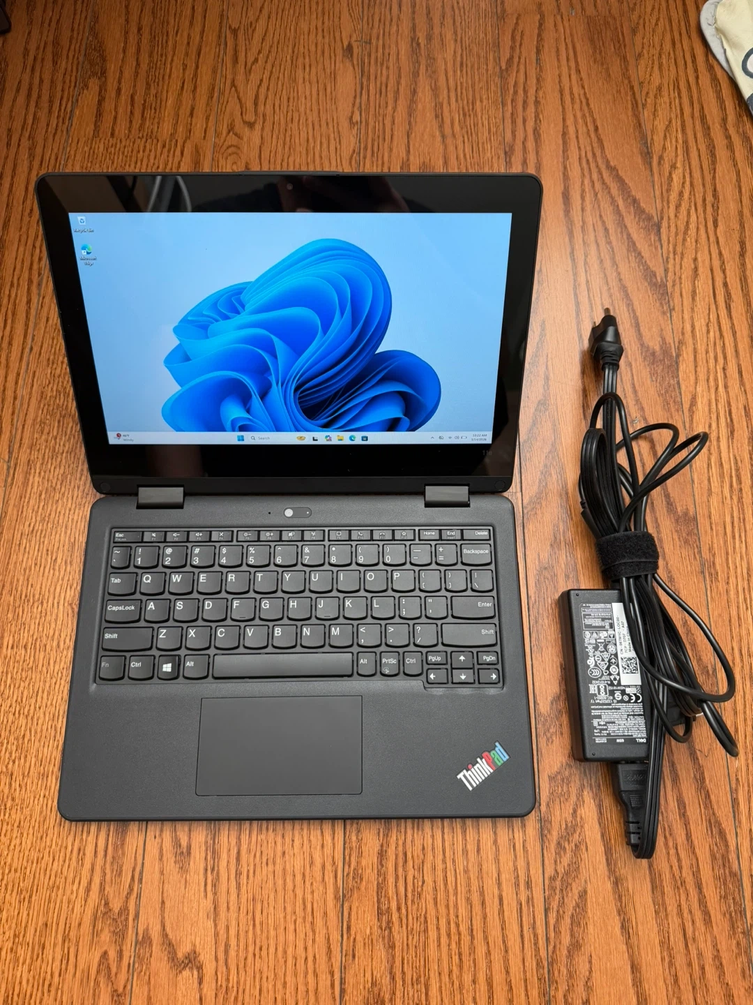 Lenovo 11e Laptop (6th Gen) with 8GB RAM, 128GB SSD, touchscreen display, and Windows 11