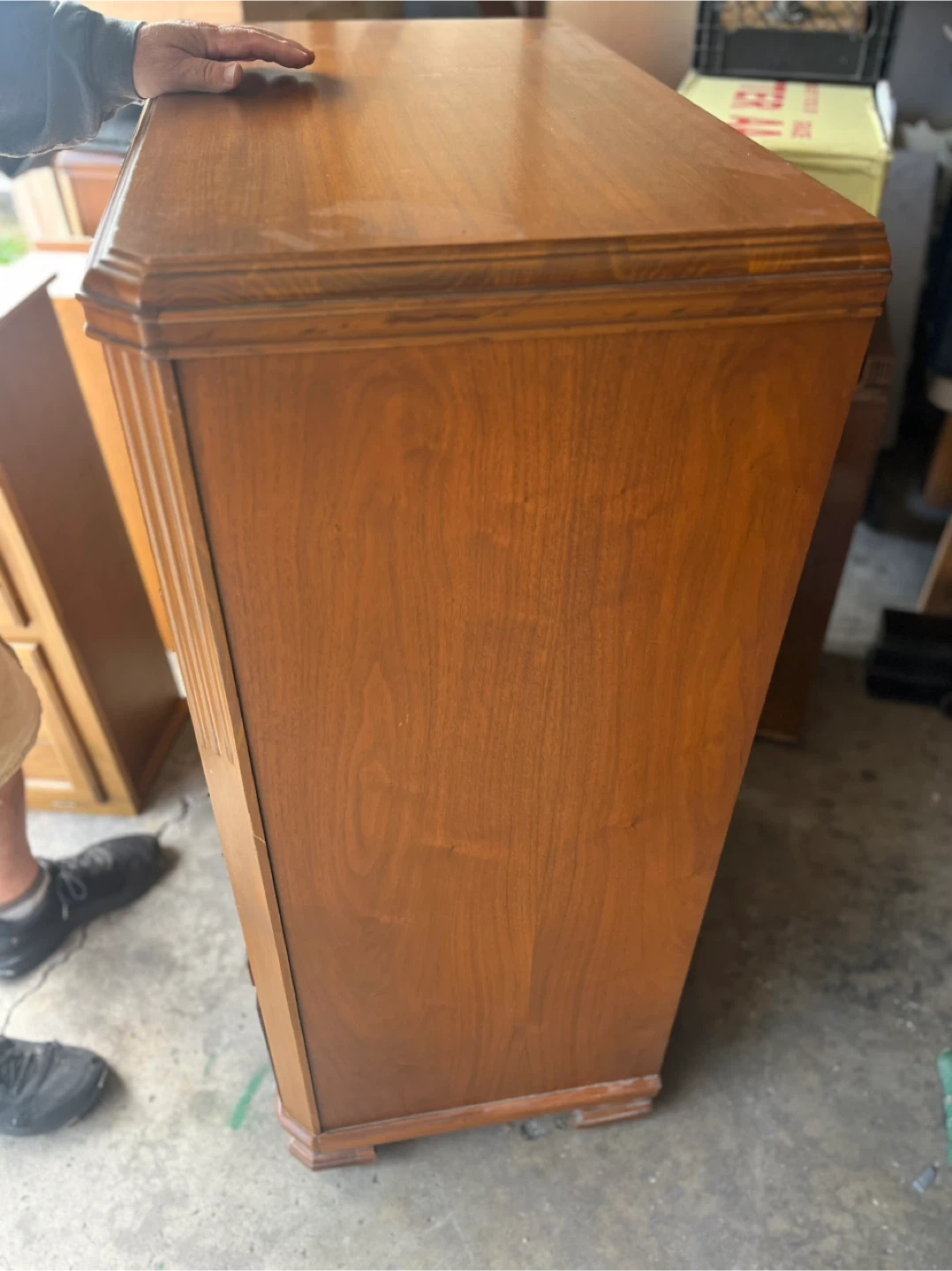 Selling a vintage mid century modern bedroom set that come with 2 dressers and one full-size bed frame. It has a unique and beautiful design with multiple drawers and a very nicely designed head and footboard. This pieces have been gently used, well well cared, and would be great for adding a classic touch to any room!