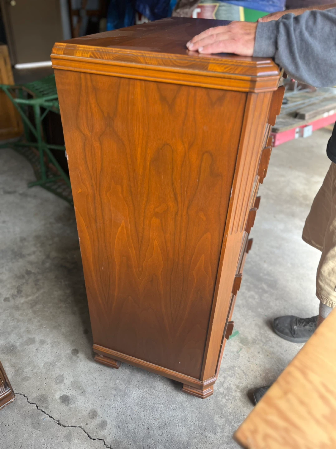 Selling a vintage mid century modern bedroom set that come with 2 dressers and one full-size bed frame. It has a unique and beautiful design with multiple drawers and a very nicely designed head and footboard. This pieces have been gently used, well well cared, and would be great for adding a classic touch to any room!