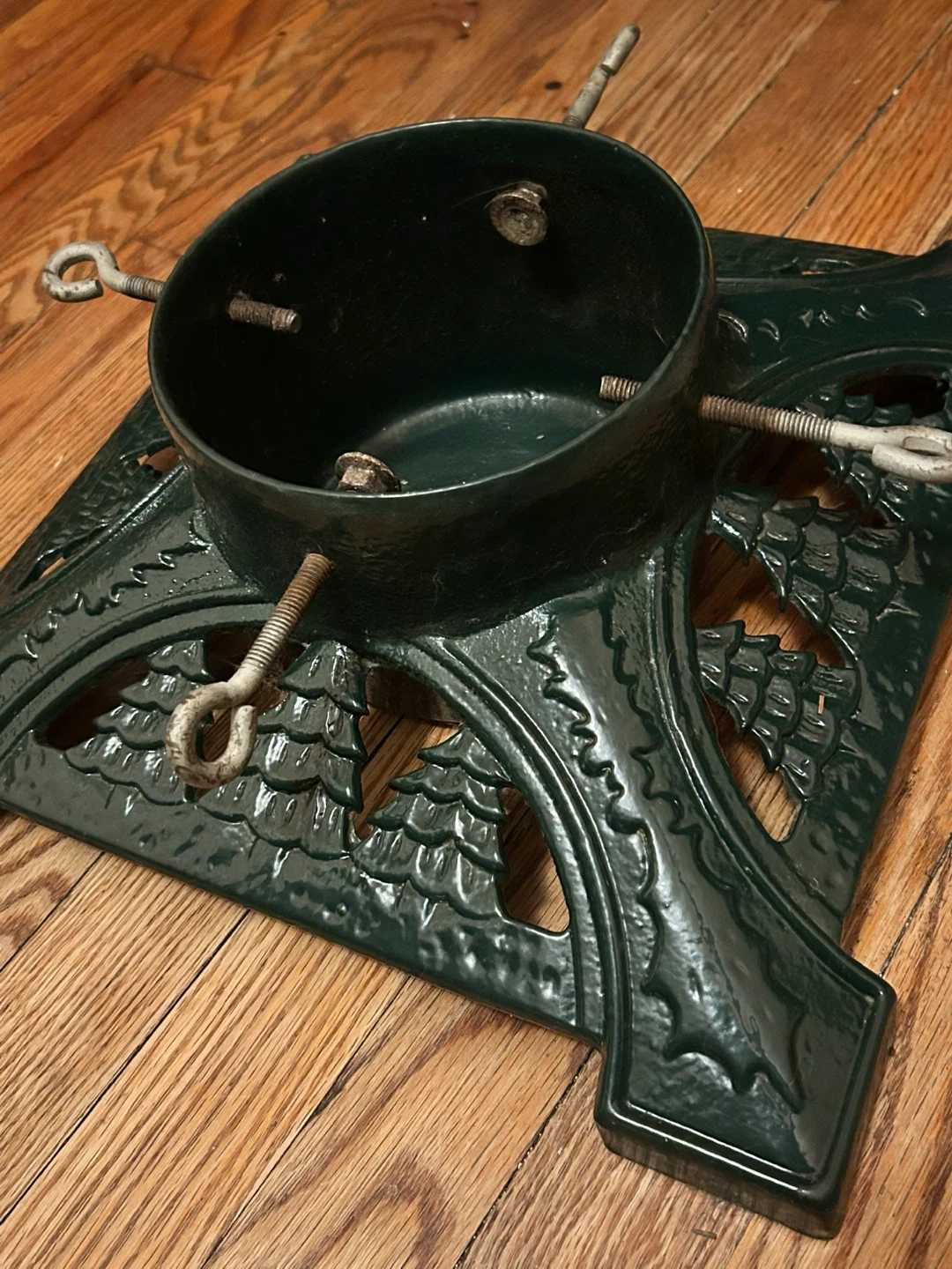 Dark Green Metal Christmas Tree Stand with Ornate Design
