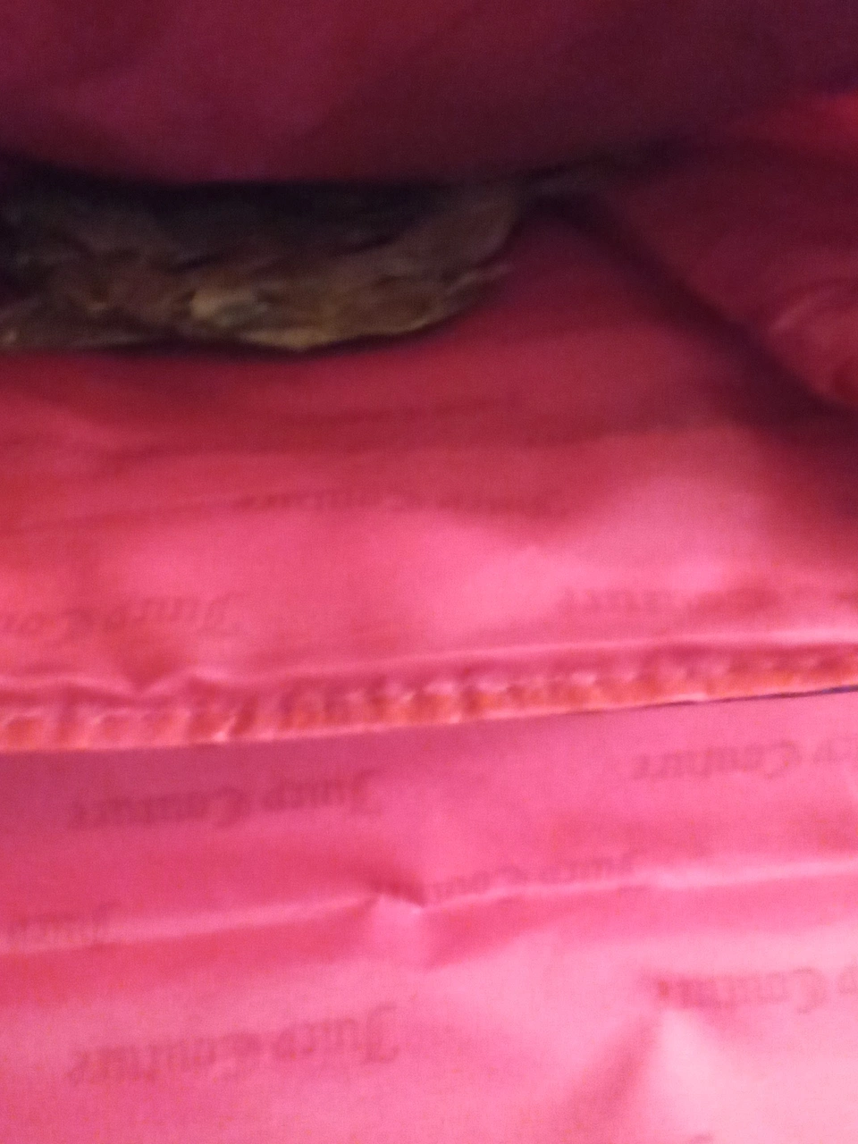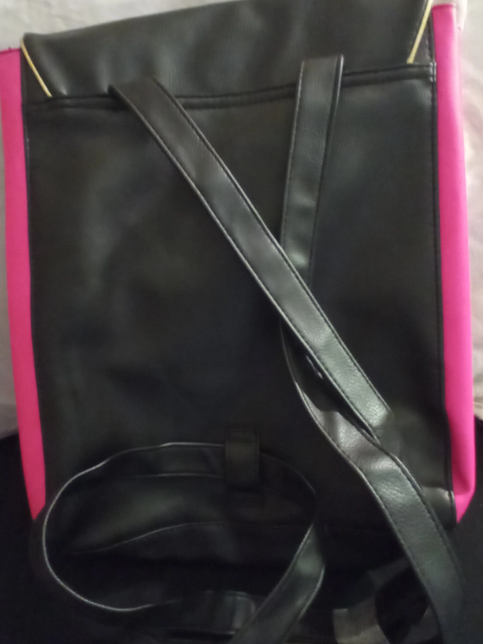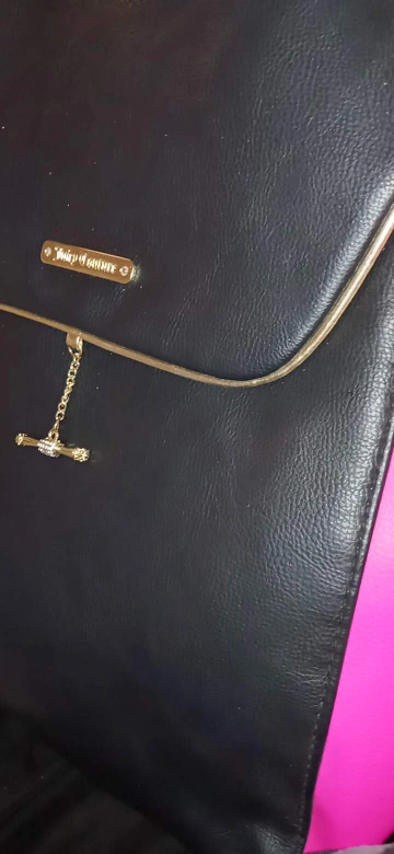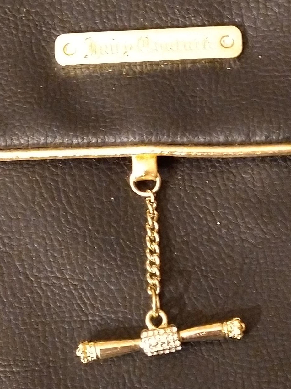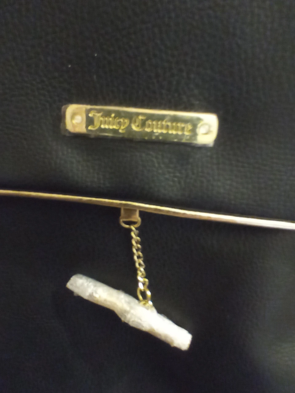Selling a Juicy Couture backpack! It's black with pink accents, and has a gold logo and chain detail. Great for carrying your essentials in style!