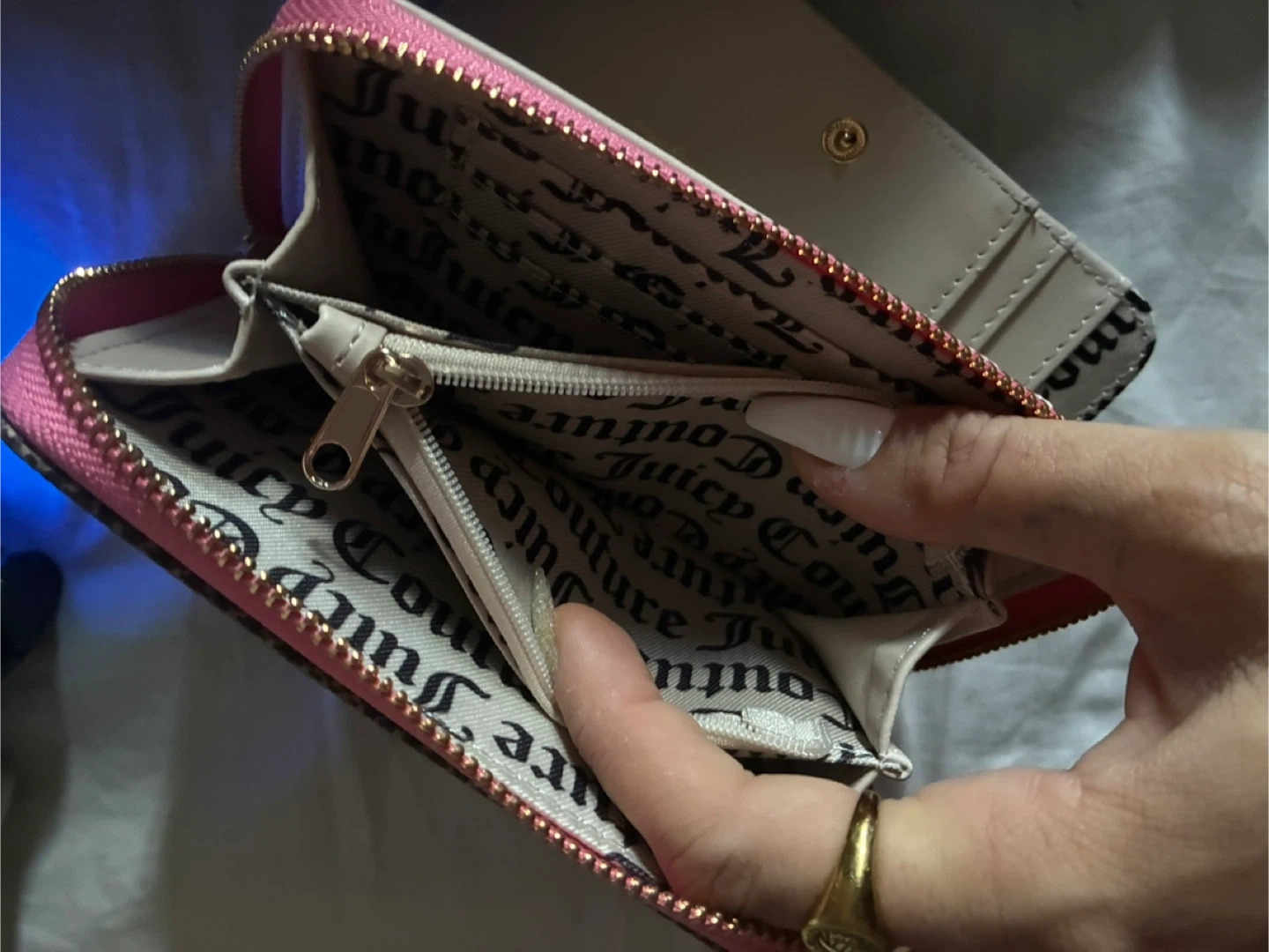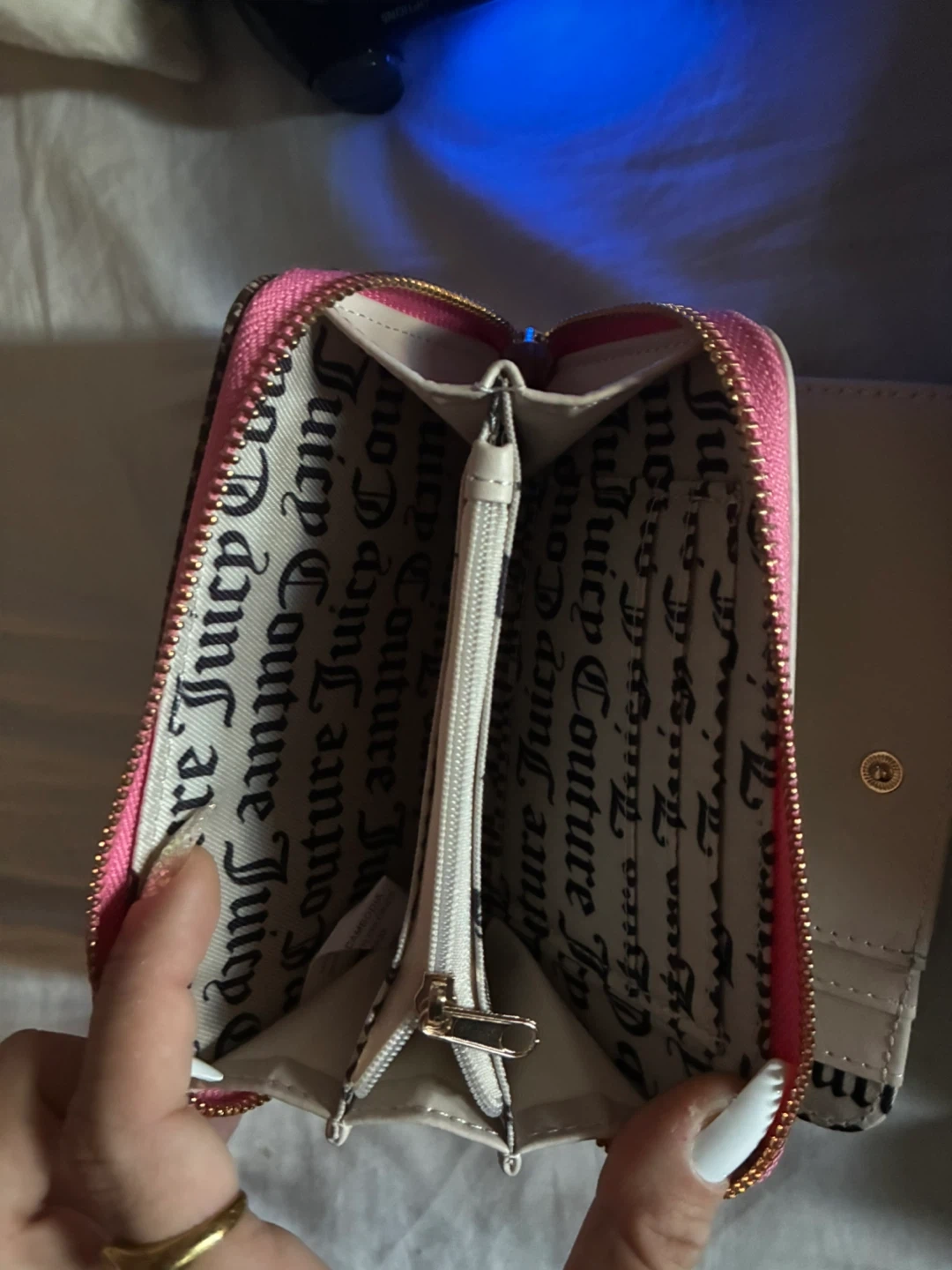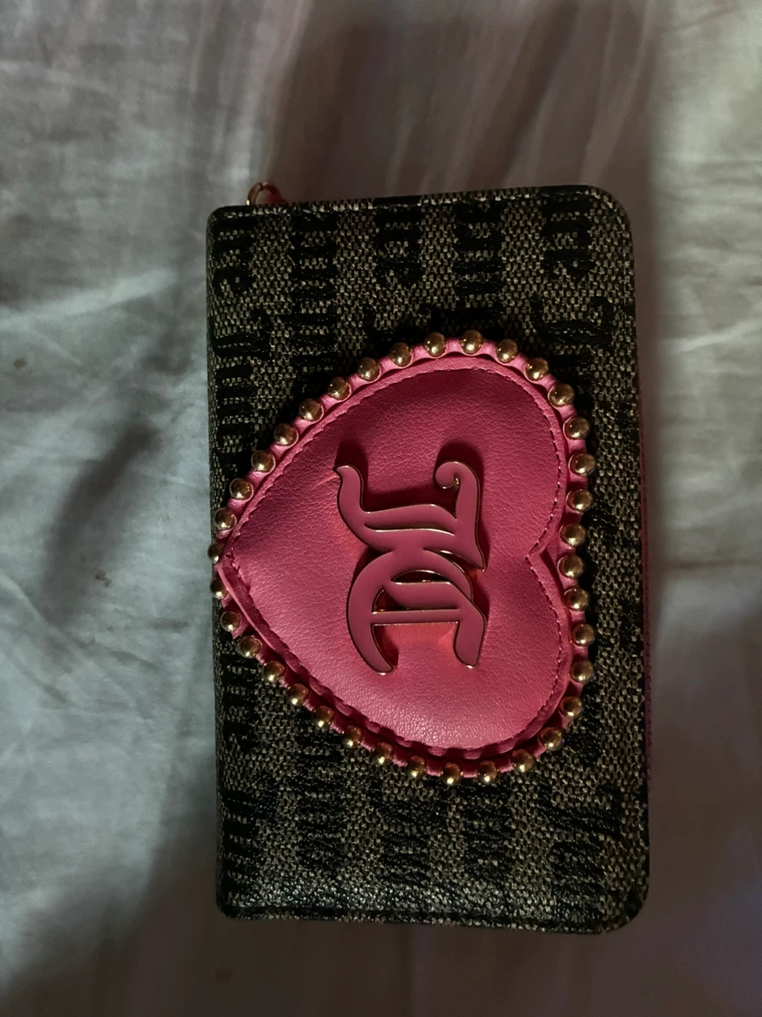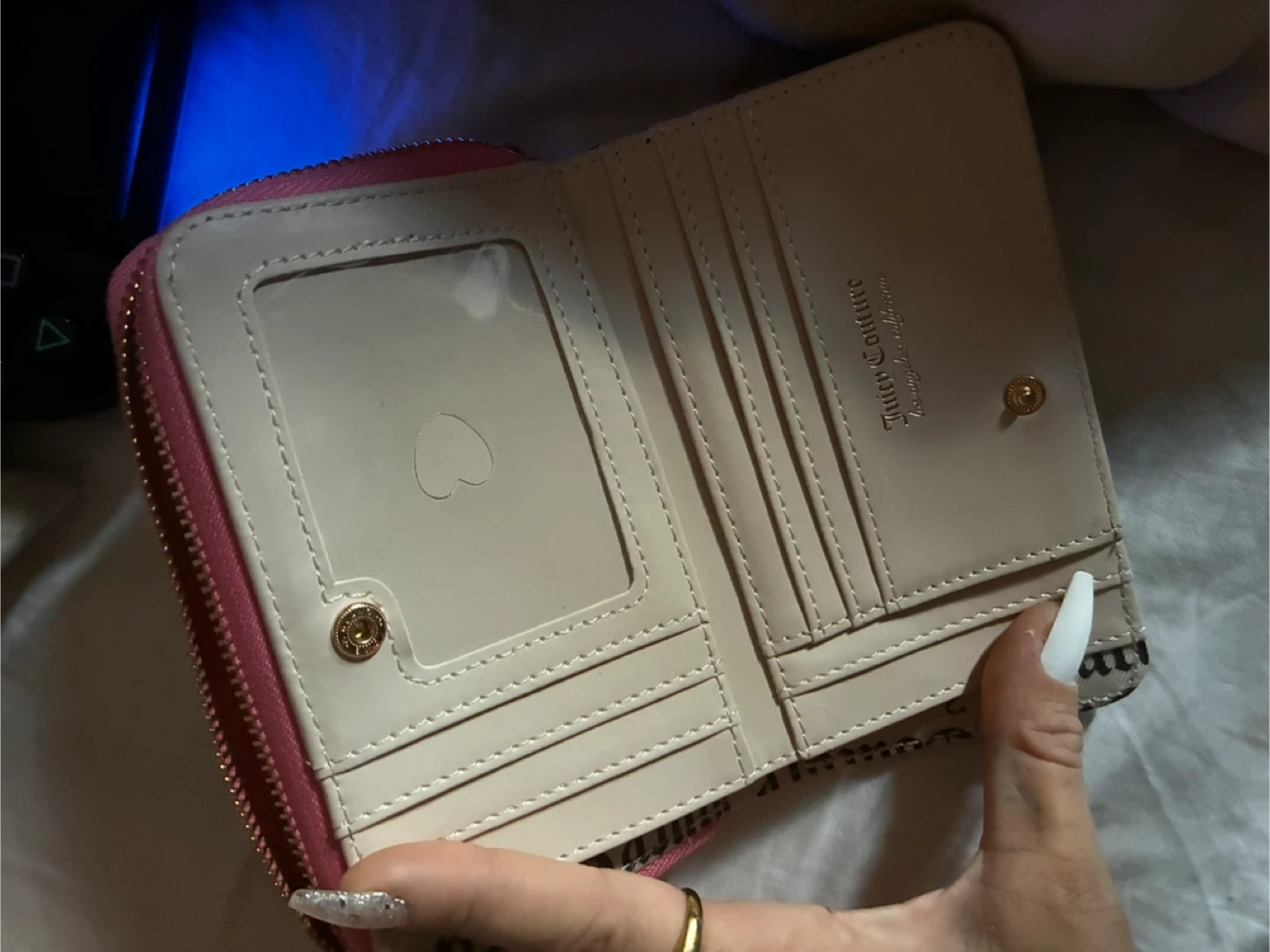 10Cute Juicy Couture wallet with a pink heart design! It has a zip closure and plenty of space for cards and cash
