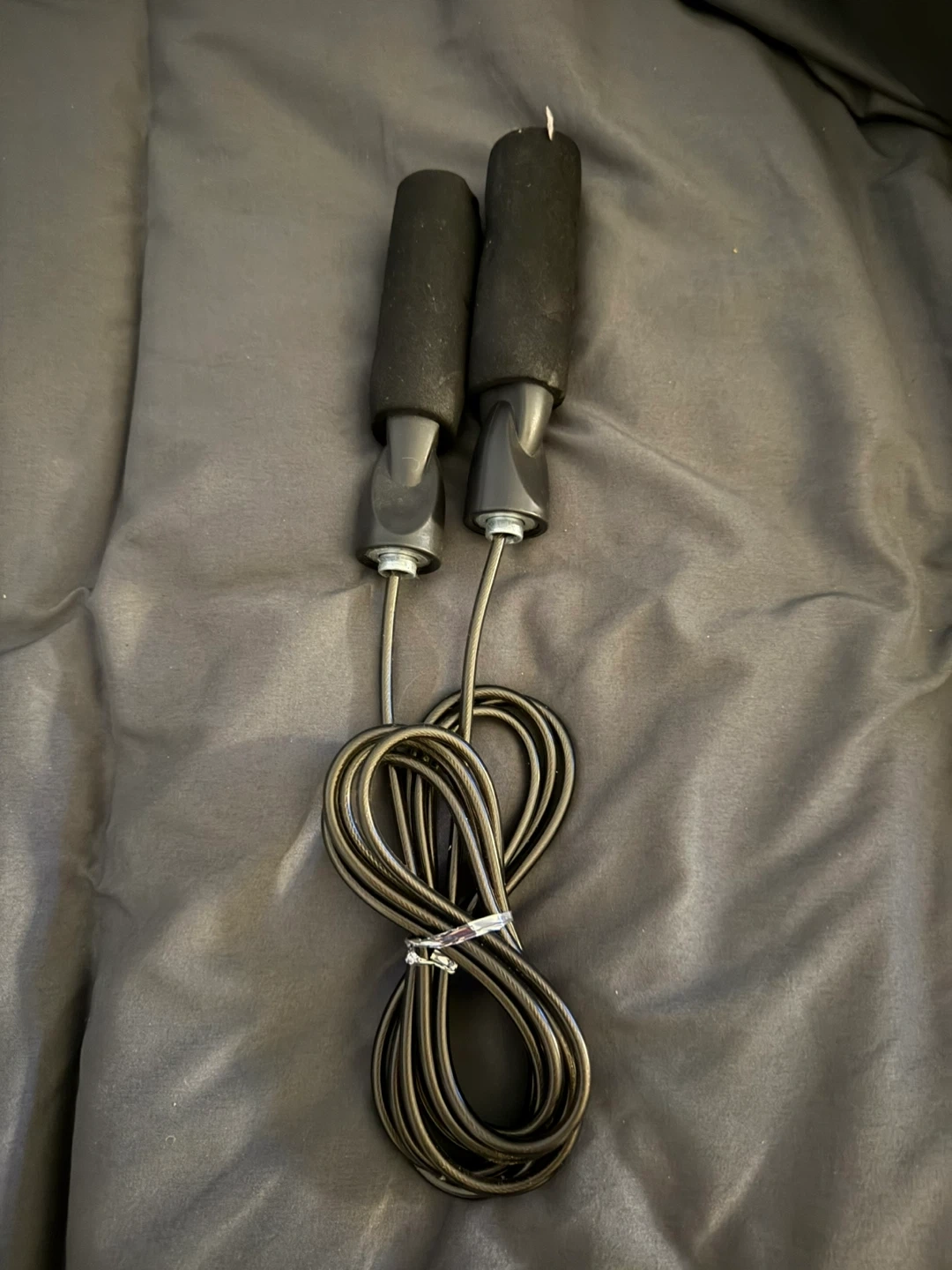 Selling a black jump rope. It has black foam handles for a comfortable grip. Perfect for a quick workout! Never used - pickup 94th and Columbus