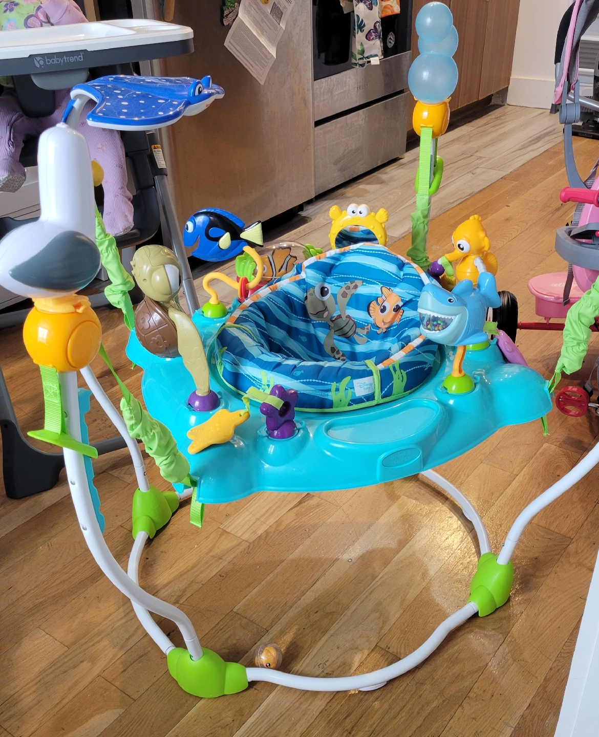 34This is a Baby Trend Disney Finding Nemo jumper with lots of fun sea creature toys attached! Your little one will love bouncing and playing in this colorful jumper. It's in great condition and ready for a new home!