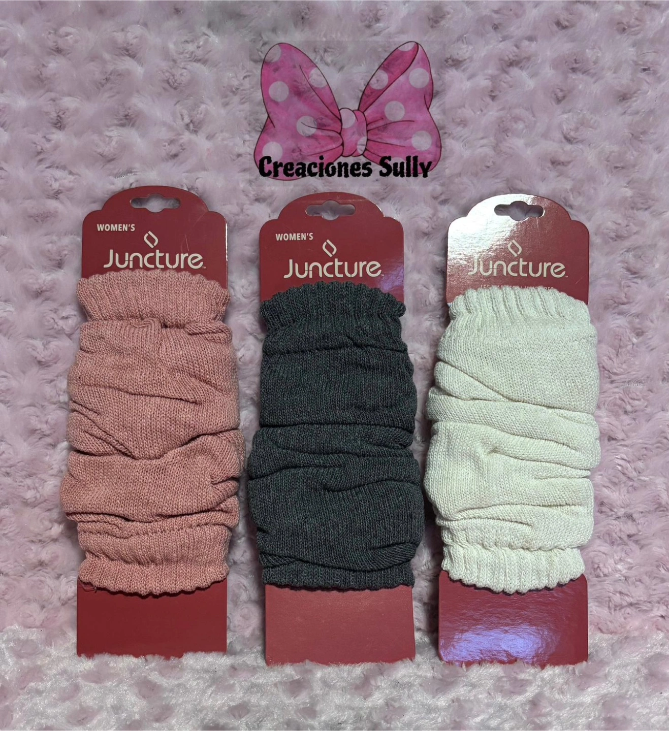 Here are some women's leg warmers from Juncture! You get a set of three in the colors pink, gray, and white