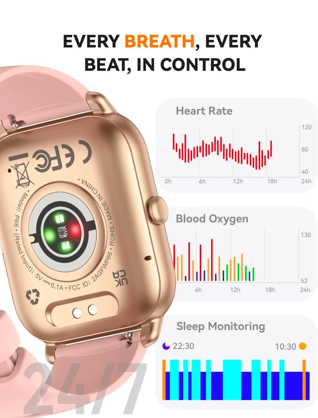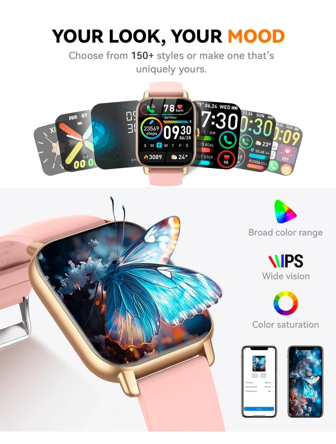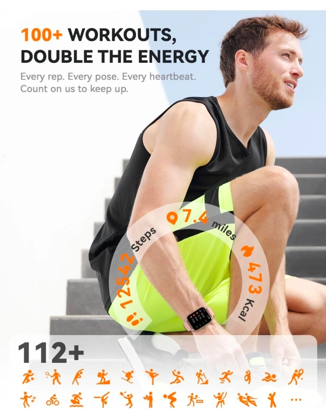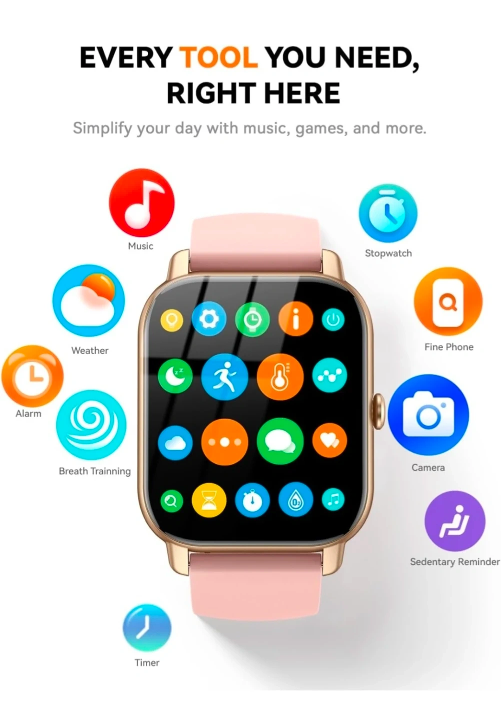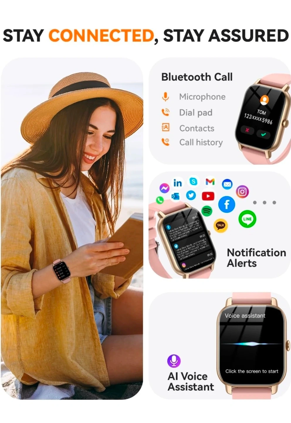 This smartwatch offers 100+ workout modes, heart rate monitoring, and blood oxygen tracking. It supports Bluetooth calls and notification alerts. Sleep monitoring and AI voice assistant capabilities are included.