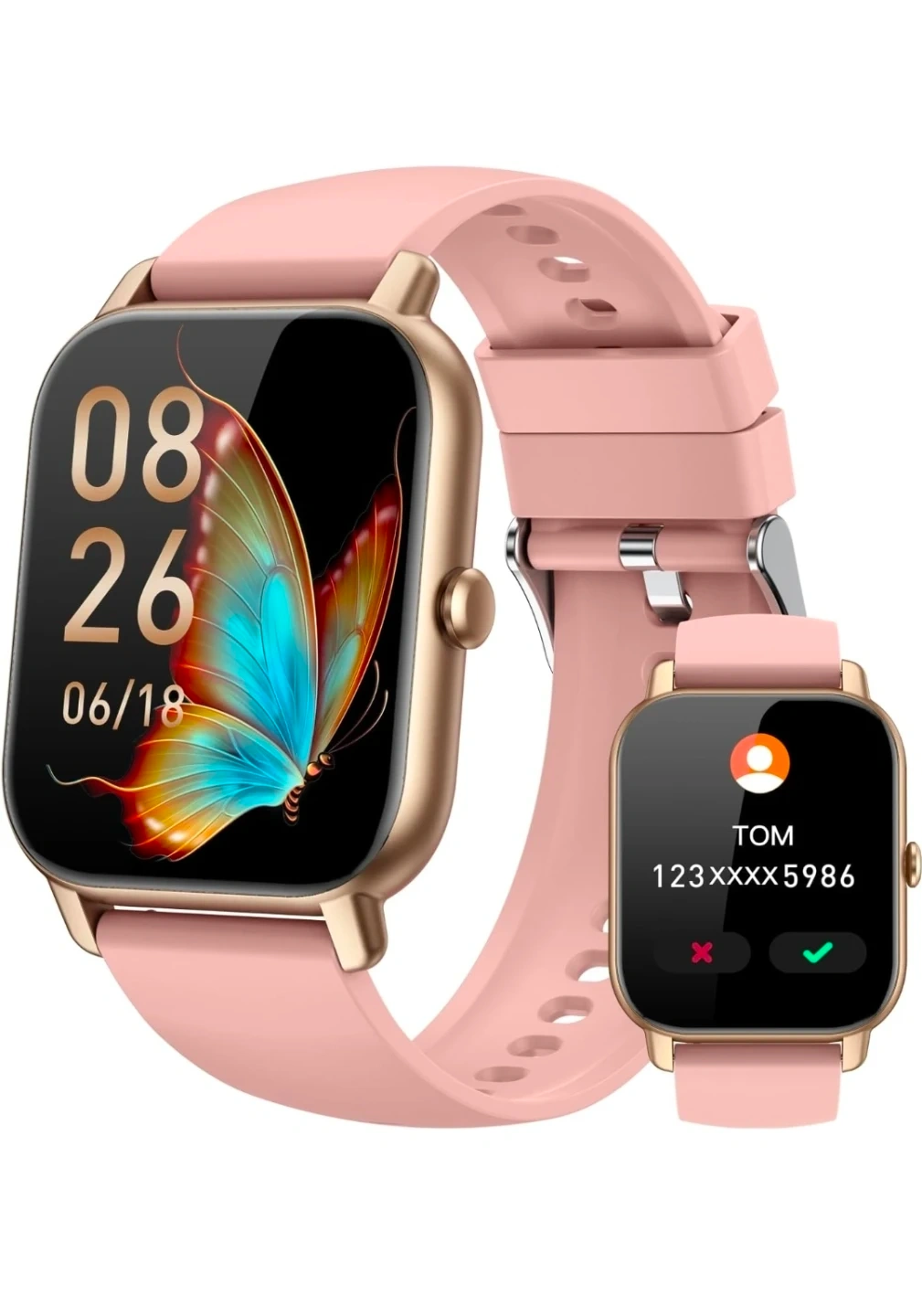 Pink Smartwatch with Gold Bezel