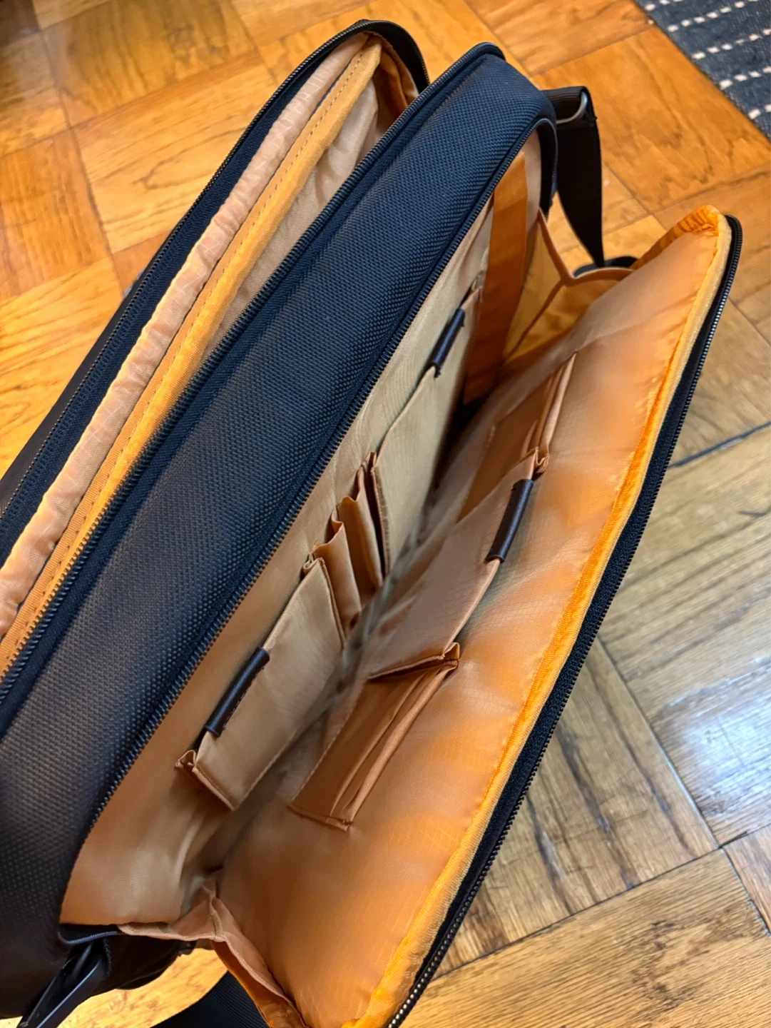 Black with brown leather accents