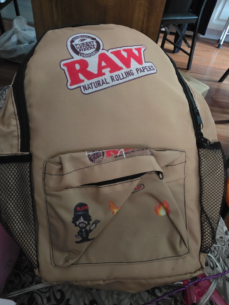 Giving away a gently used RAW Rolling Papers backpack. It's in good condition and has plenty of space inside. Perfect for carrying your essentials! Not for school use, just for fun. This seller does not encourage the use of marijuana.
