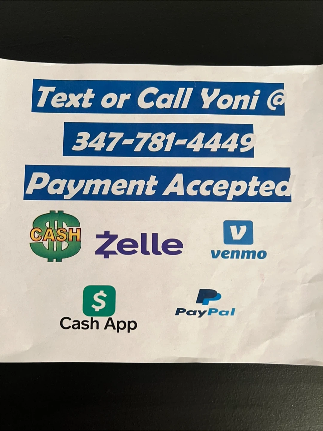 Payments accepted include Cash, Venmo, Zelle, PayPal, or CashApp.