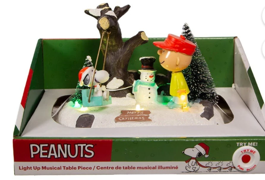 Selling a Peanuts Light Up Musical Table Piece! This festive decoration features Charlie Brown, Snoopy, and a snowman in a winter scene. It's a charming addition to any holiday display.