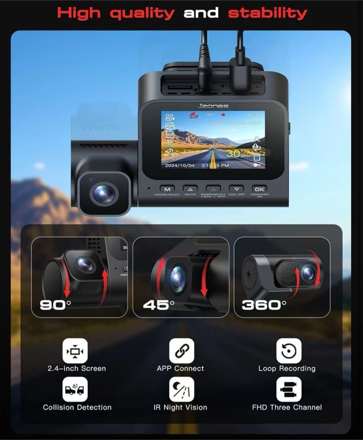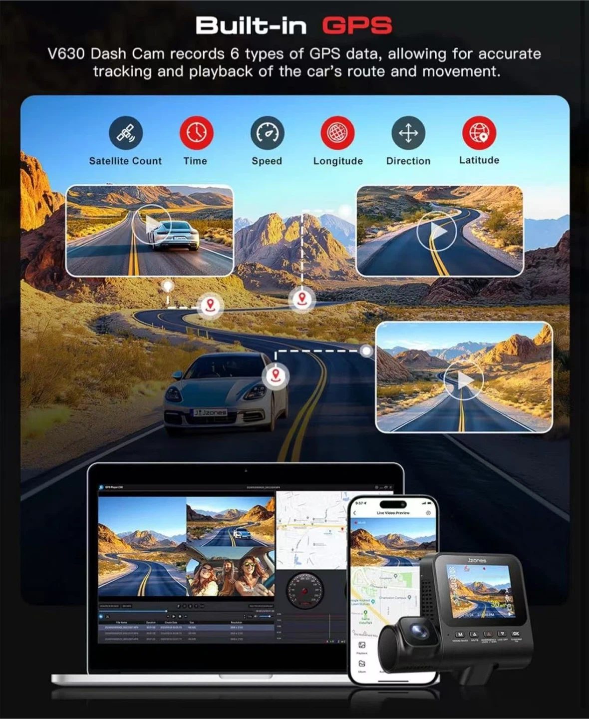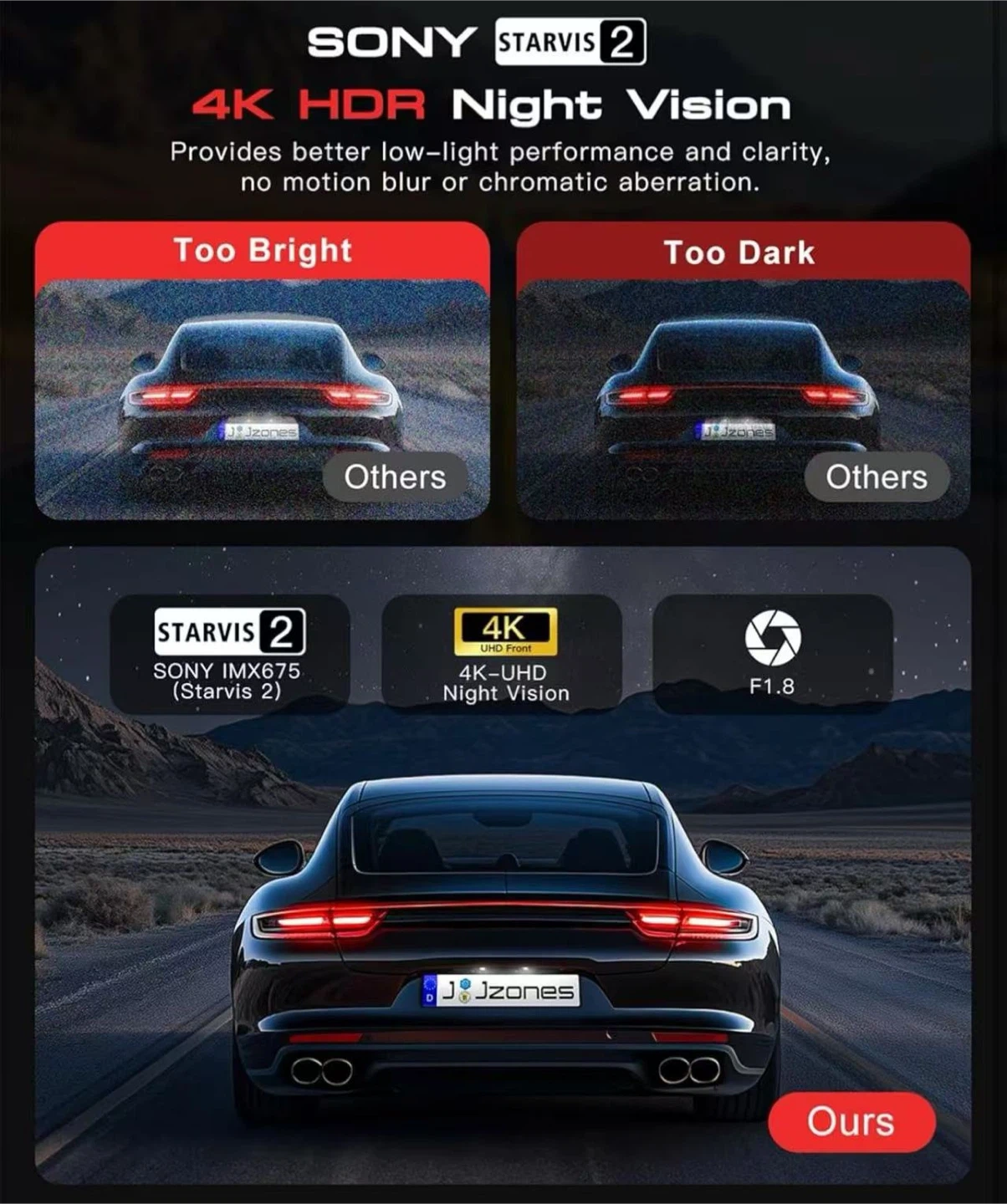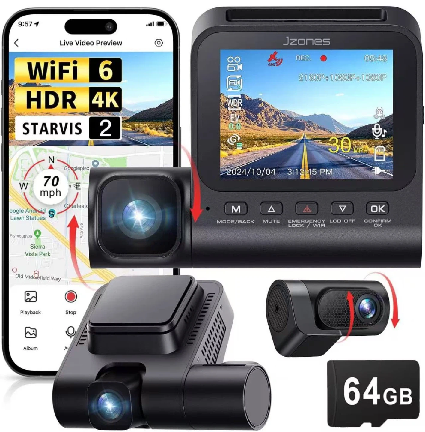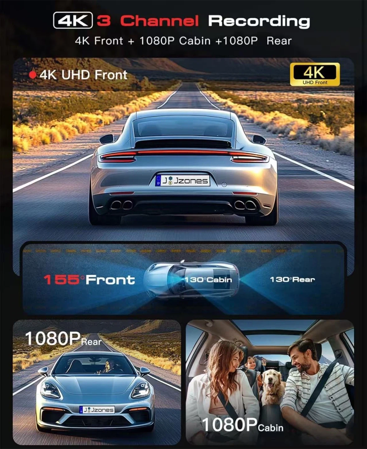 1723 Channel 4K Dash Cam, Dash Camera for Cars with STARVIS 2 HDR Night Vision, 4K+1080P+1080P Front Inside and Rear Triple Car Camera, GPS, 24H Parking Mode, Free 64GB Card