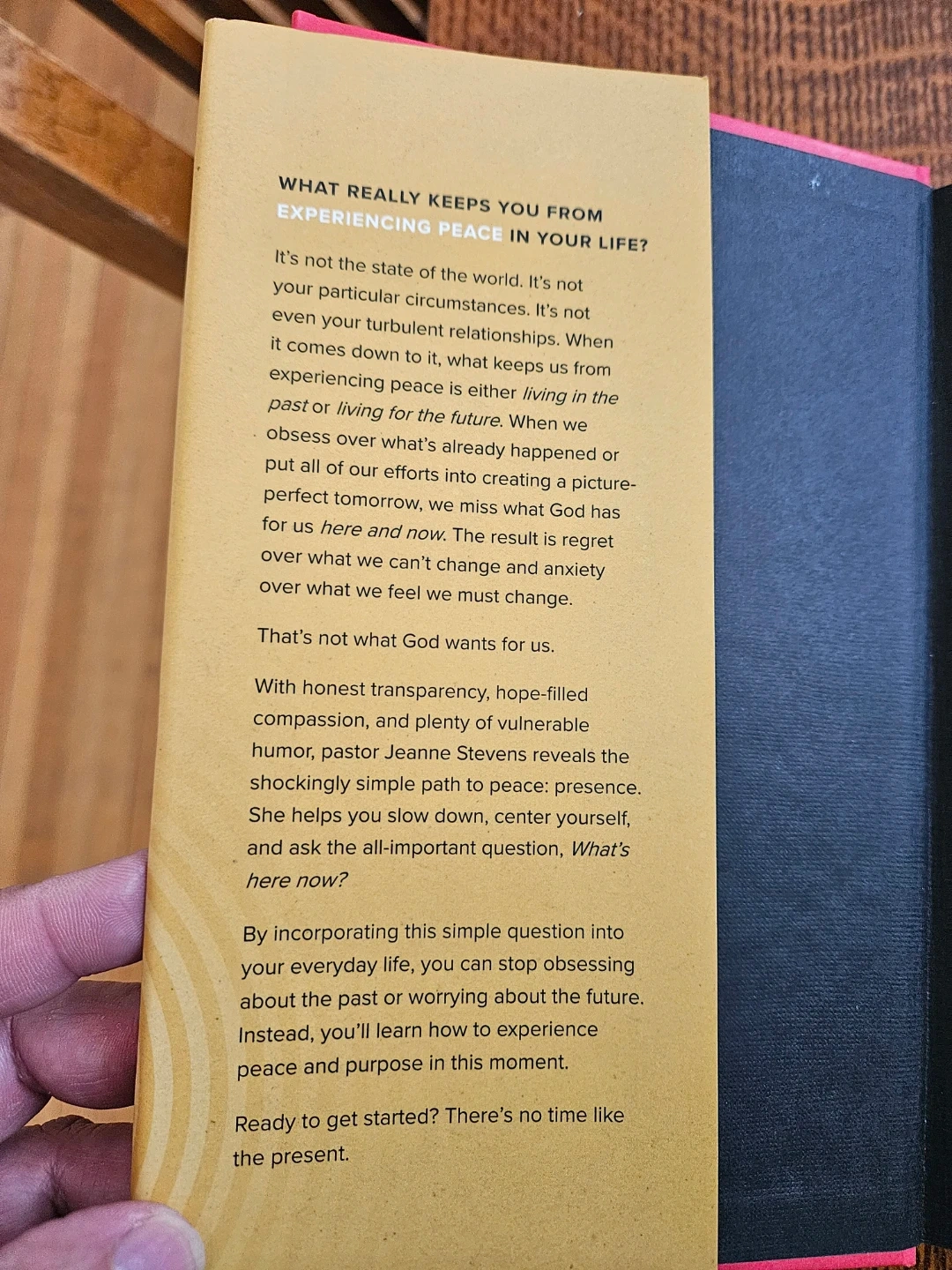This book by Jeanne Stevens explores how to stop rehashing the past and rehearsing the future to start receiving the present. It offers guidance on experiencing peace in your life by focusing on the 'here and now.'