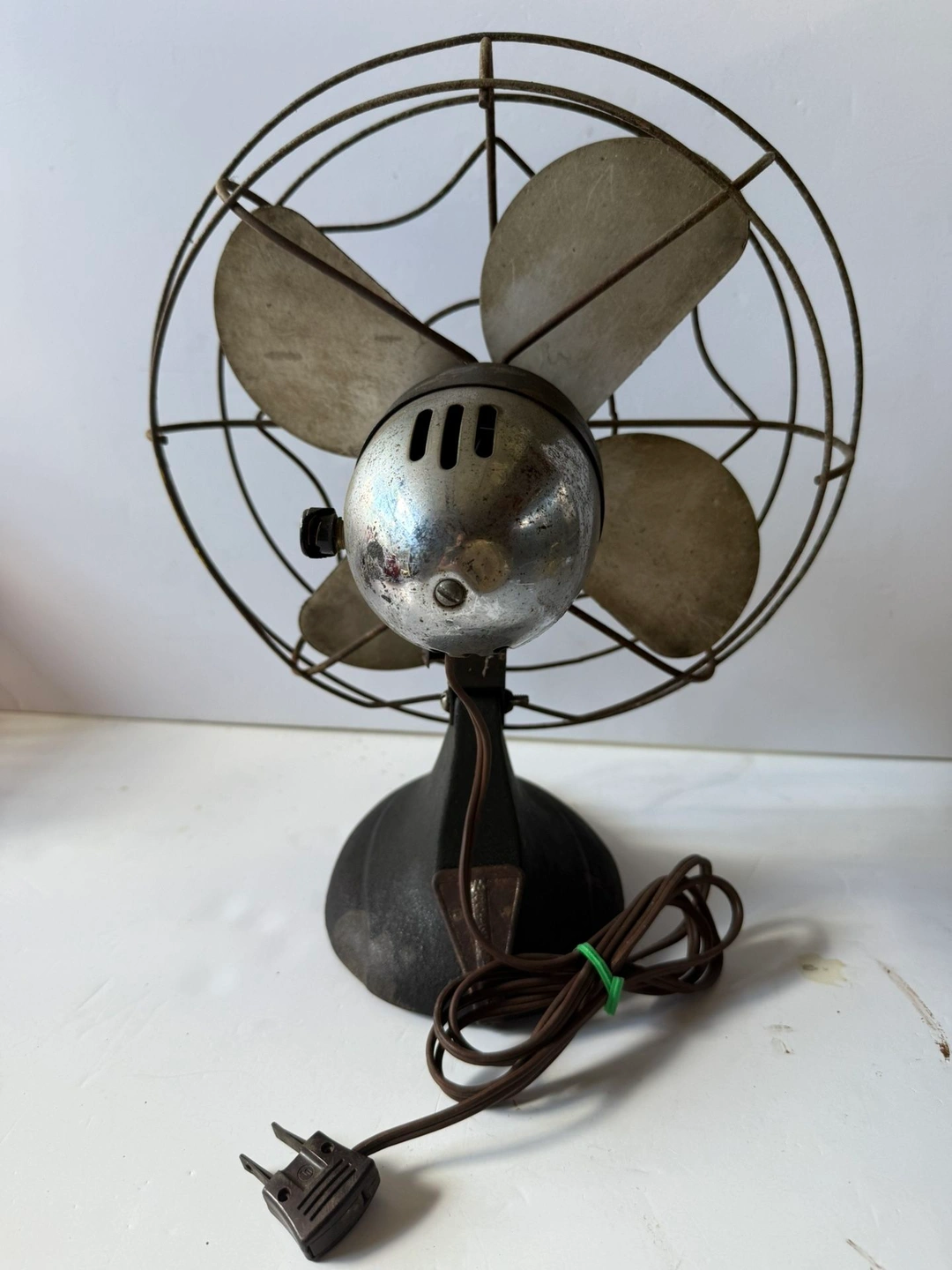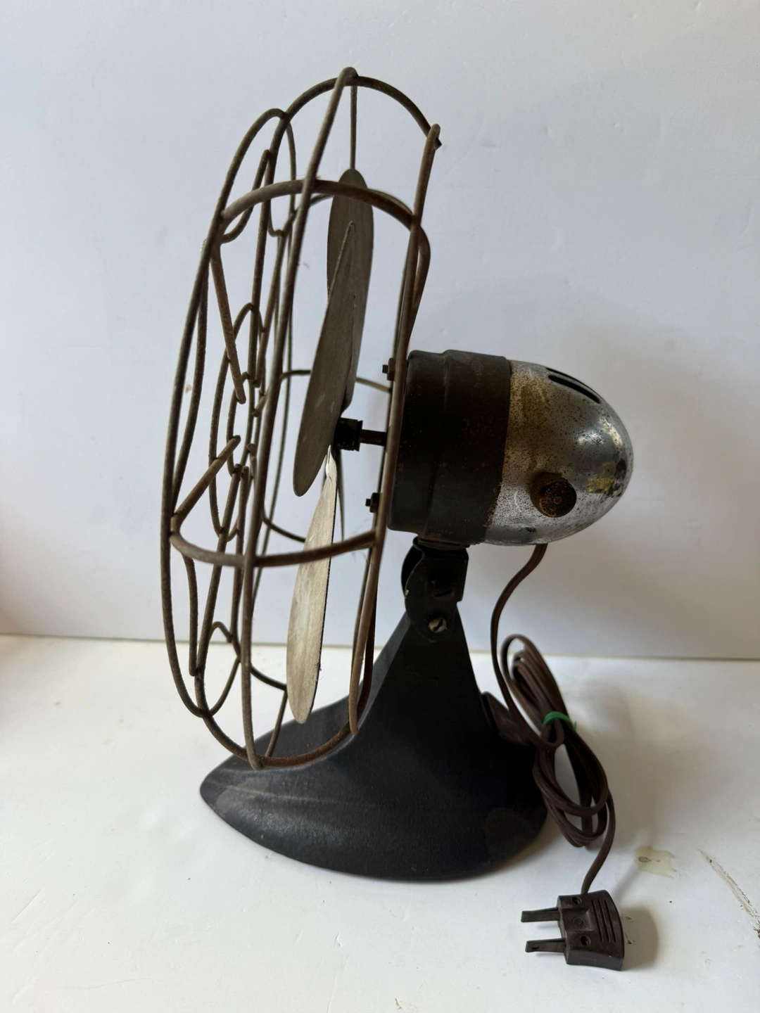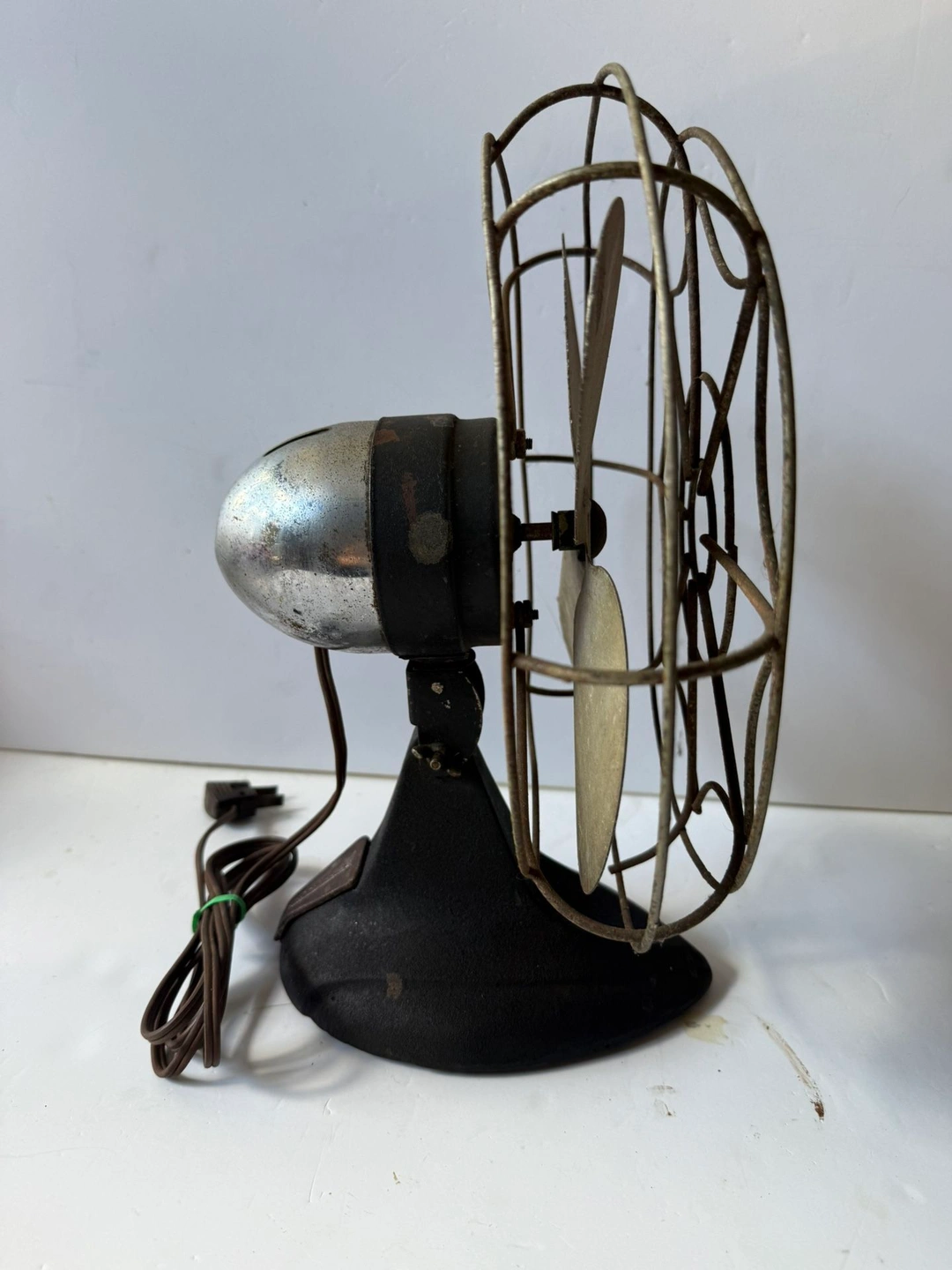 Working fan, see video. Great piece to refurbish. Has spider web blade guard. This is a vintage Mastercraft Model 1005 table/desk fan with a metal blade, made in the United States. It's a black fan with a metallic finish, adding a touch of nostalgia. Its unique vintage style and functional design make it a great addition to any collection or as a small appliance for adding retro charm.