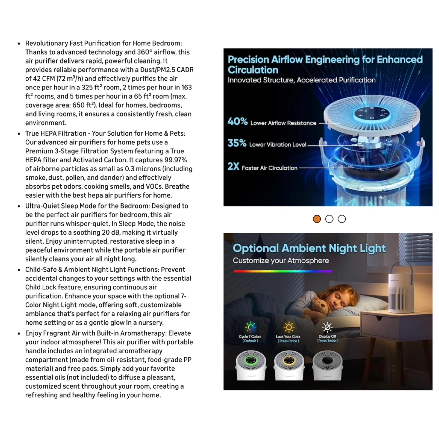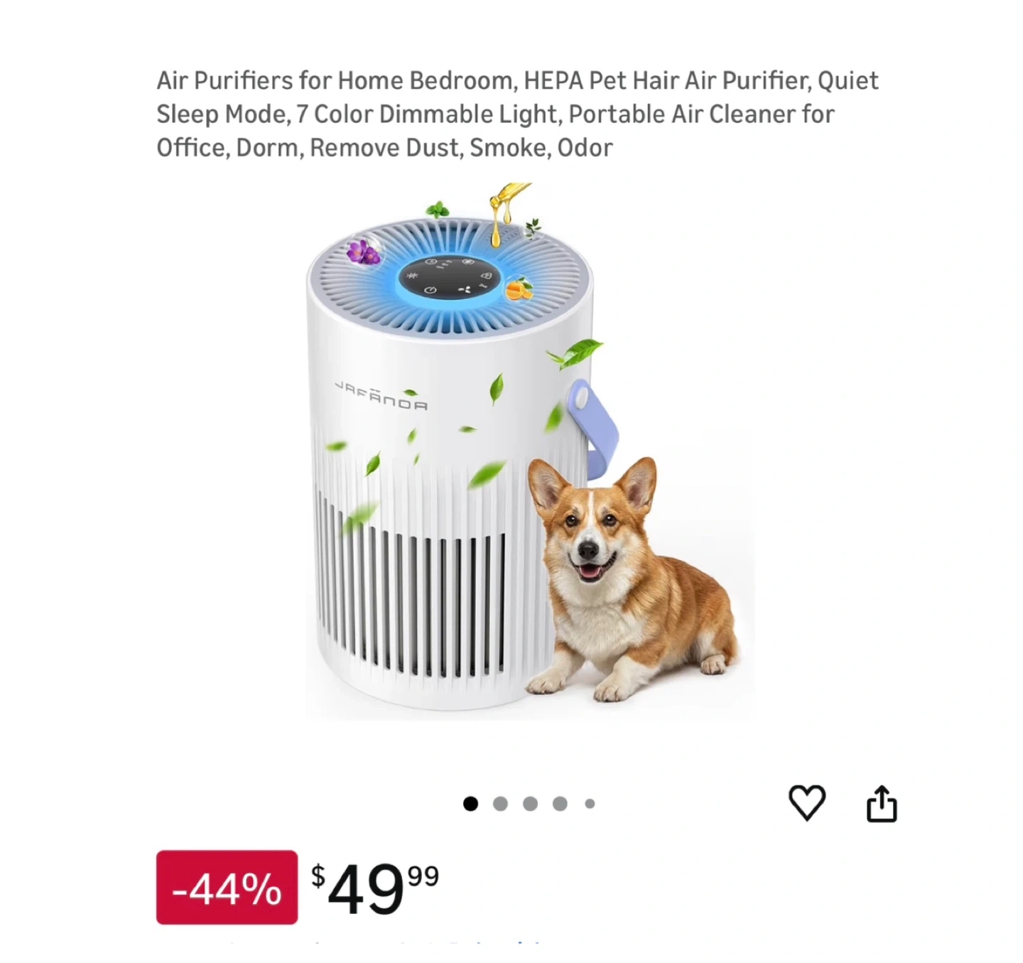 Brand new Air Purifiers for Home Bedroom, HEPA Pet Hair Air Purifier, Quiet Sleep Mode, 7 Color Dimmable Light, Portable Air Cleaner for Office, Dorm, Remove Dust, Smoke, Odor