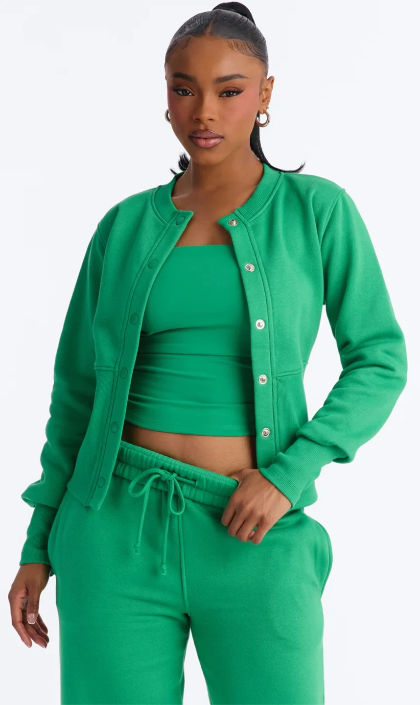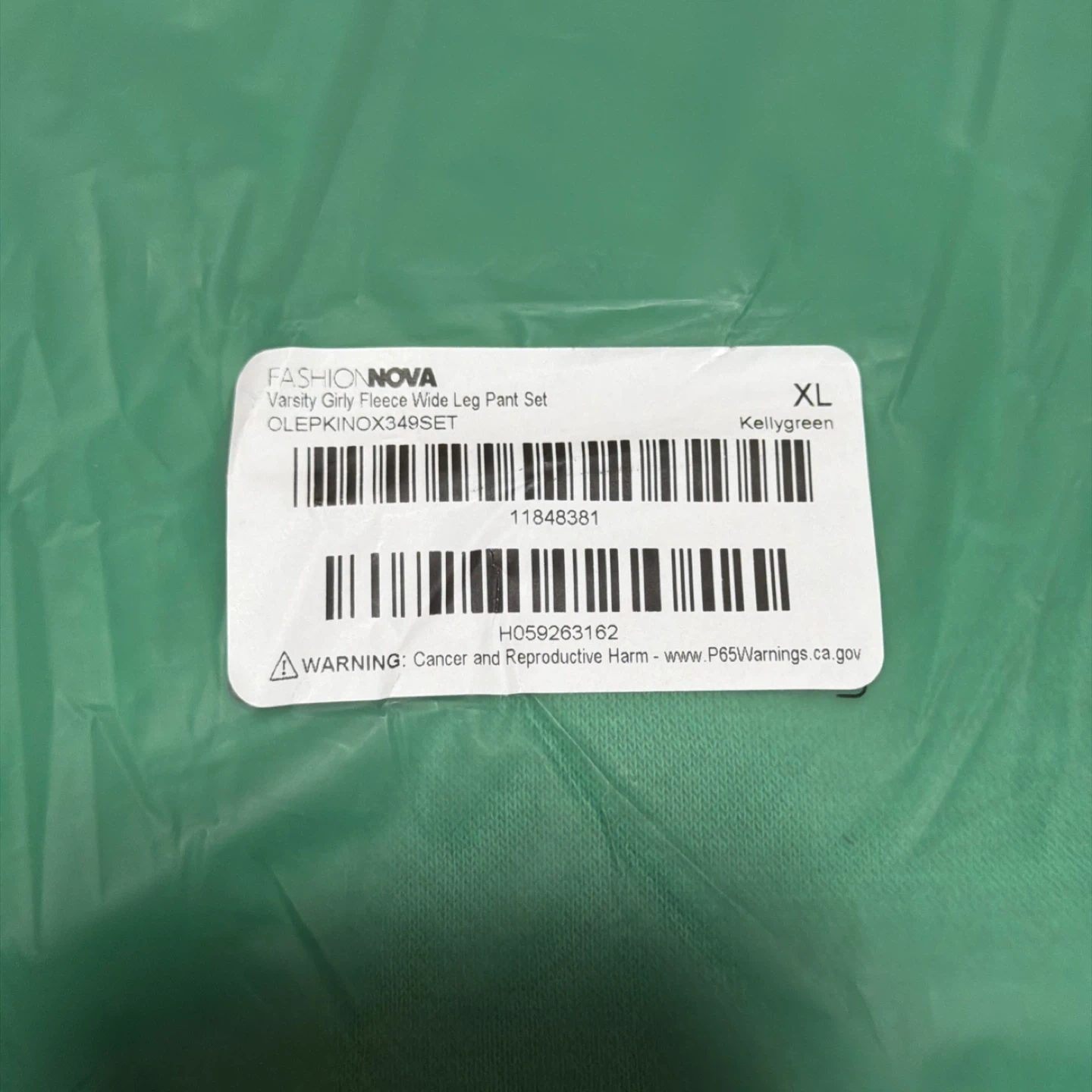 Fashion Nova Varsity Girly Fleece Wide Leg Pant Set in Kelly Green. Size XL. It's a comfortable fleece material. This set is perfect for a casual, relaxed look!