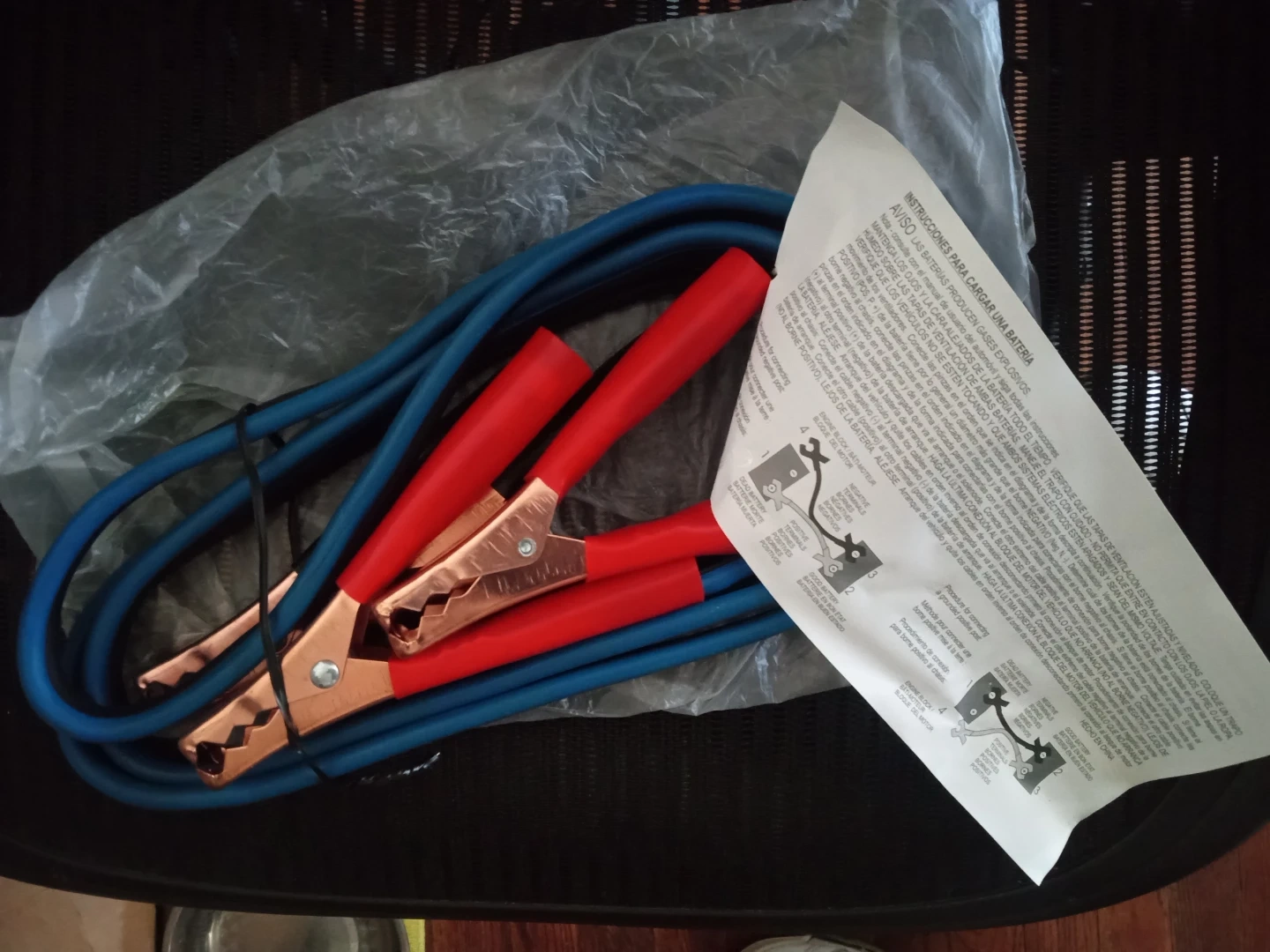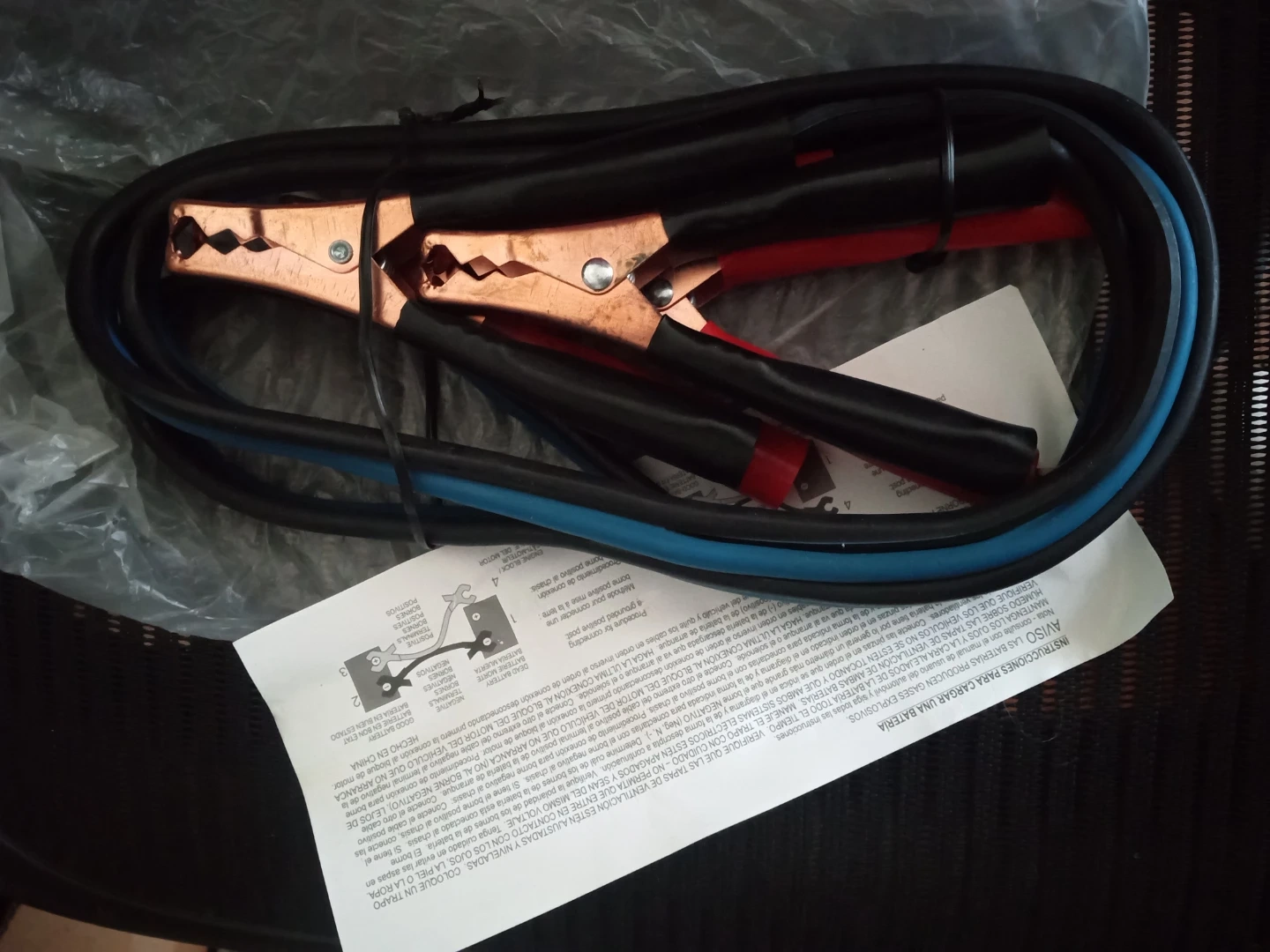 Heavy duty jumper cables for boosting car batteries. Copper-plated clamps ensure a strong connection. Includes instructions. Keep these in your car for emergencies!