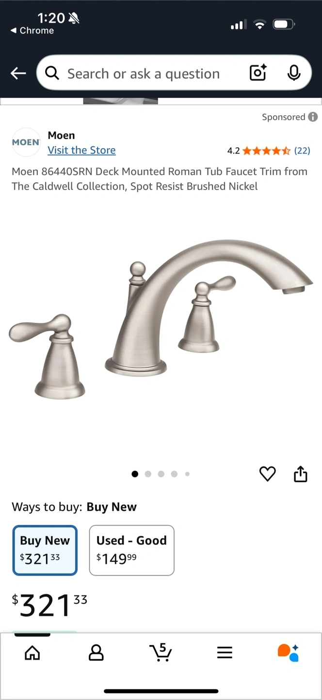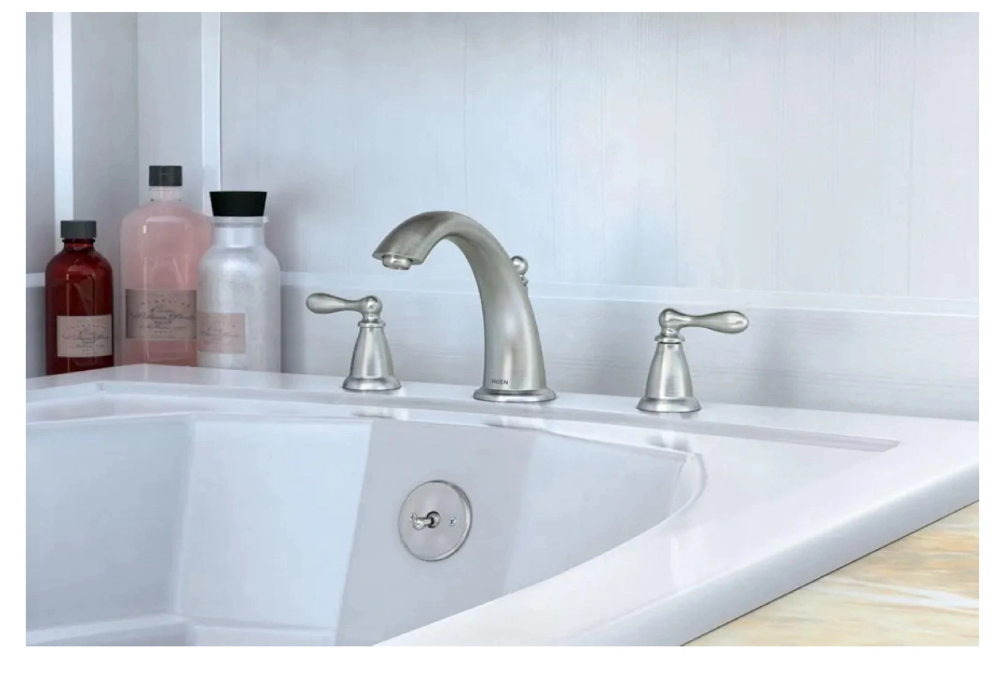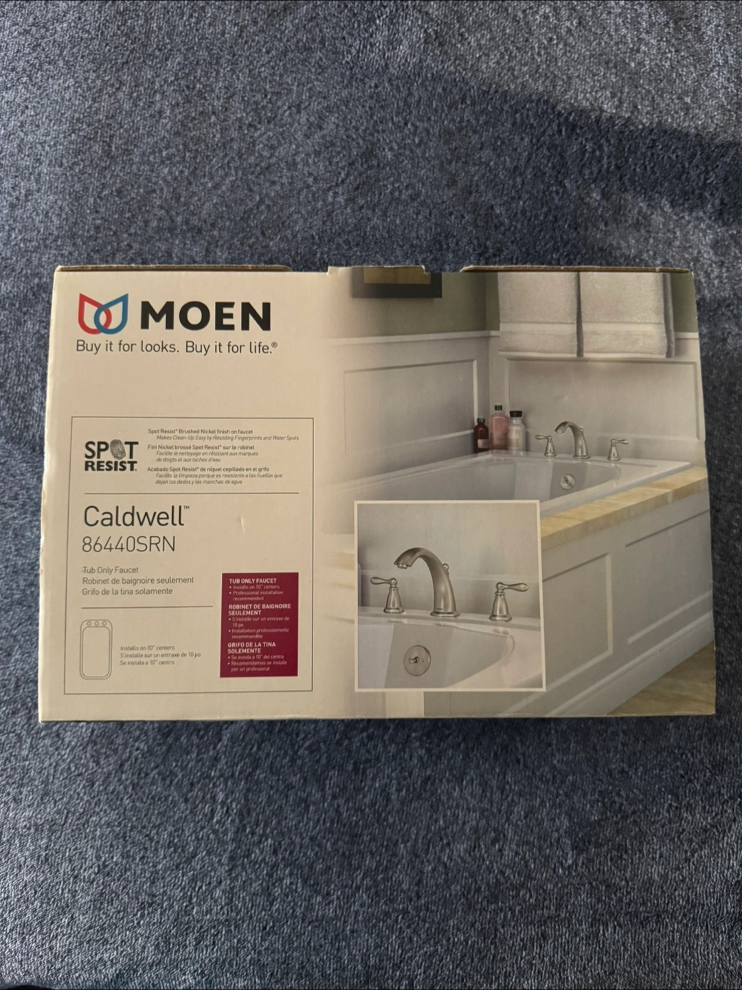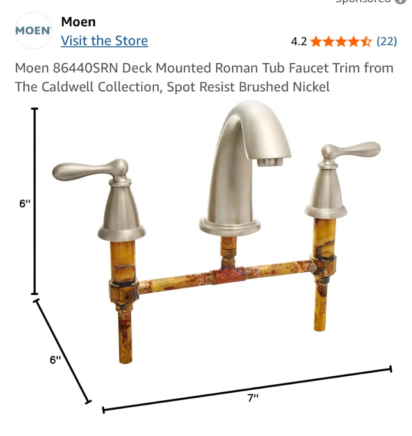 A deck mounted roman tub faucet trim. Brushed nickel finish. The faucet is from The Caldwell Collection. Perfect for soaking in a relaxing bath after a long day. Brand new! Opened but never used!