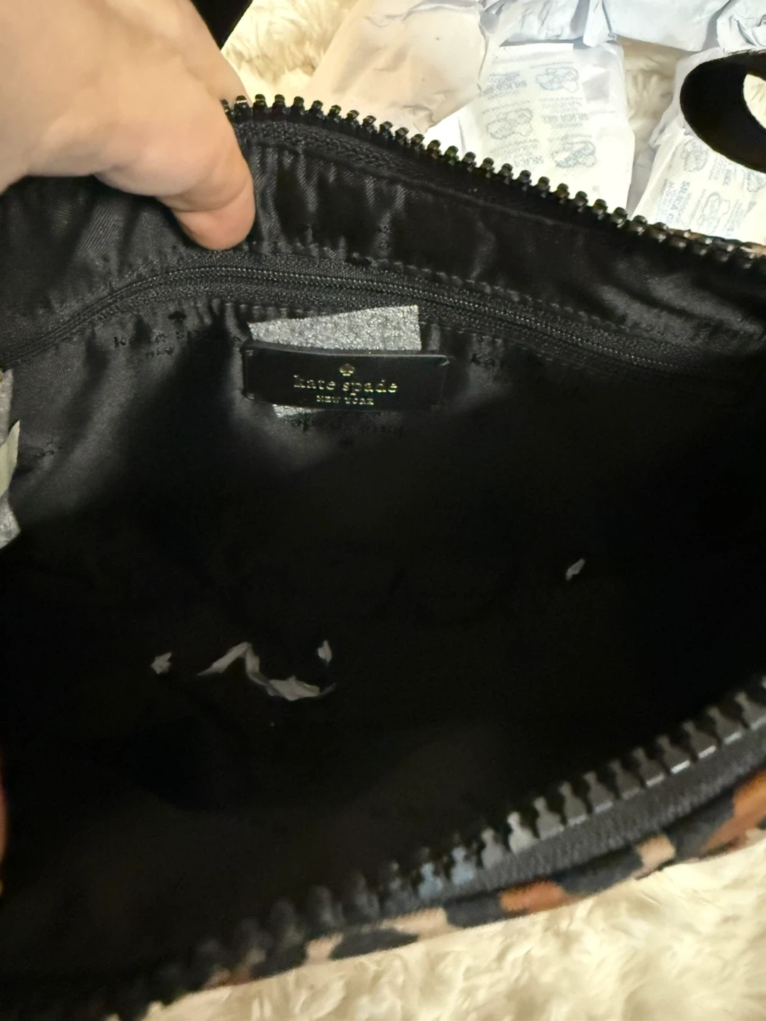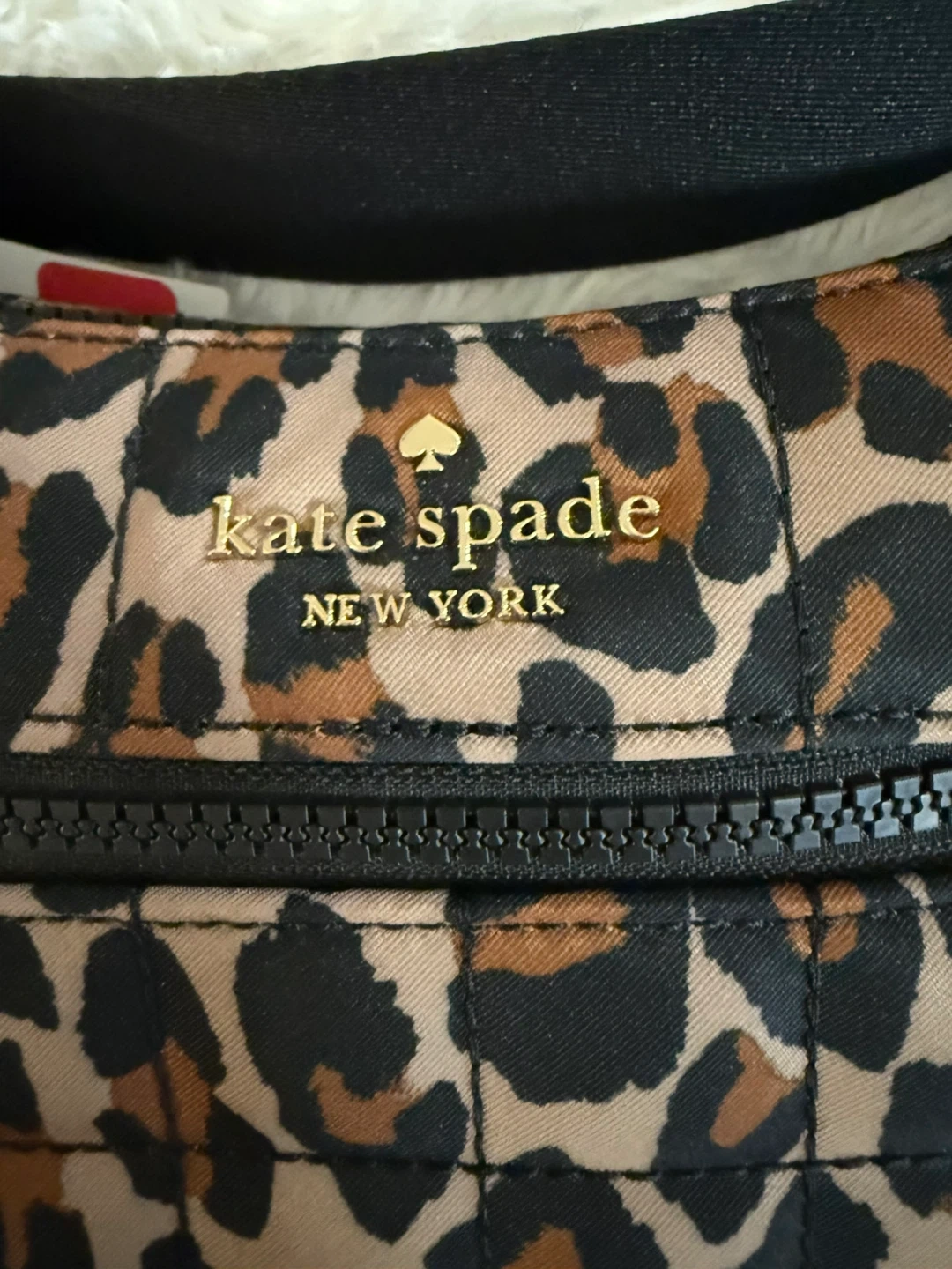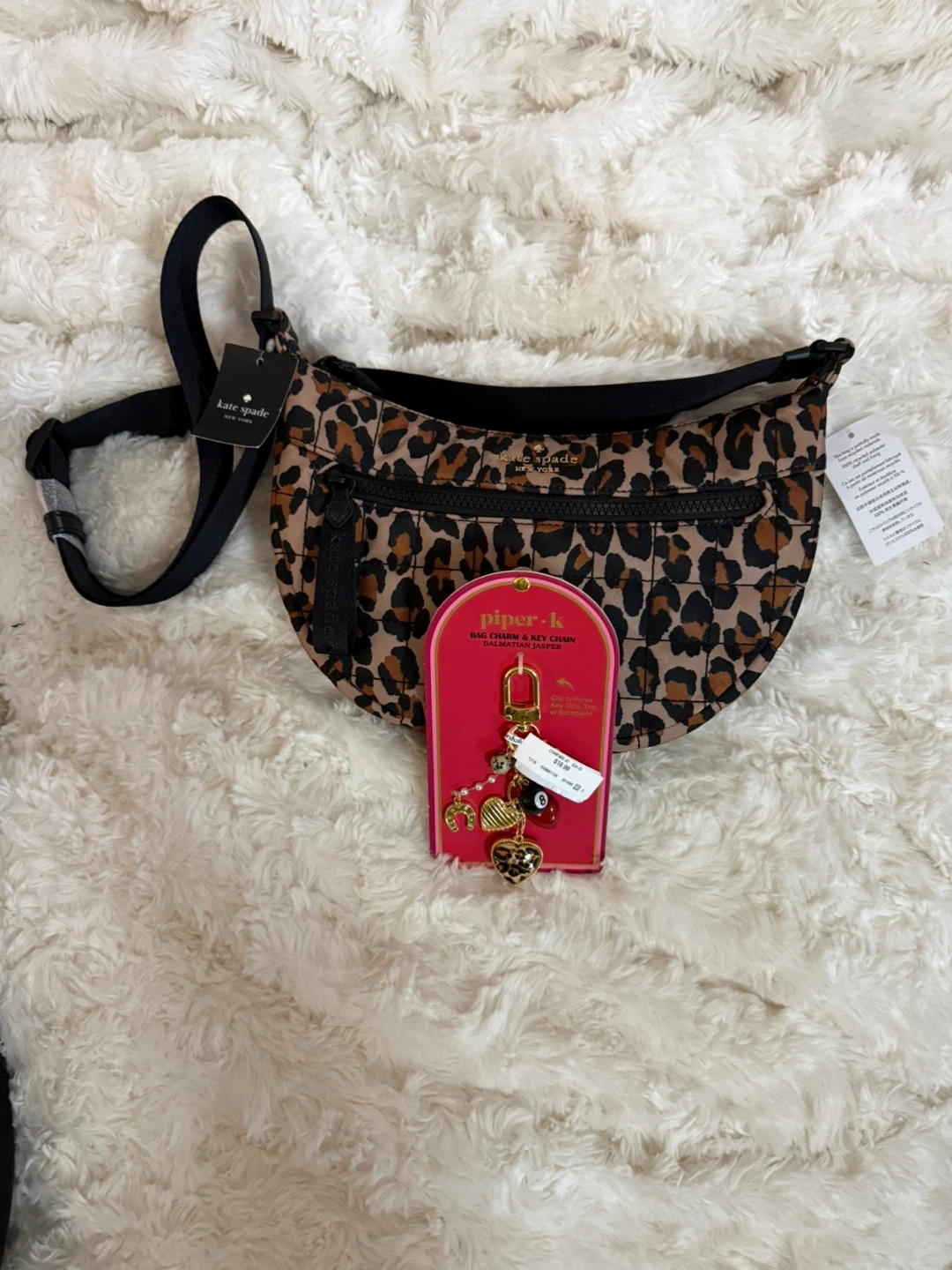 This quilted Kate Spade New York bag features a fun leopard print. It's designed to be worn as a fanny pack or a crossbody bag. This accessory's stylish design makes it a great addition to any outfit!