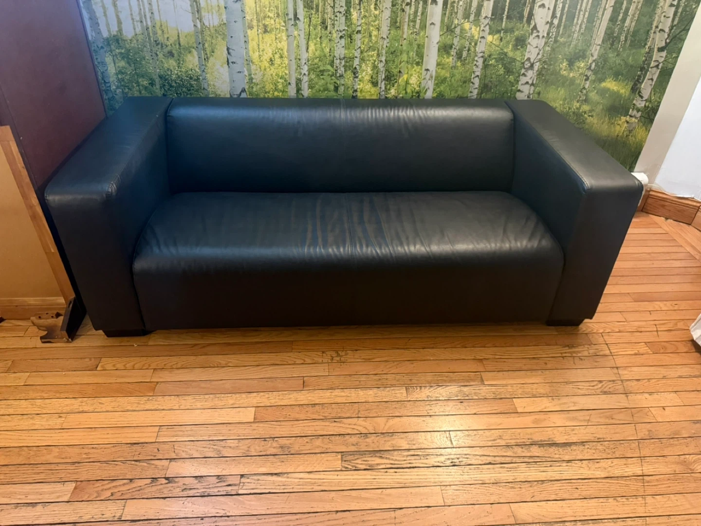 IKEA Black Faux Leather Sofa – Exceptional Condition